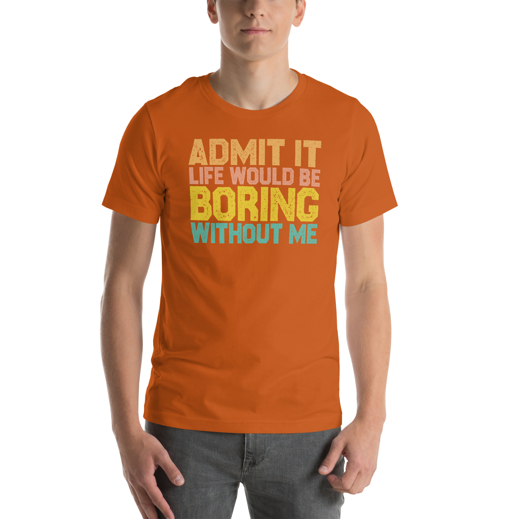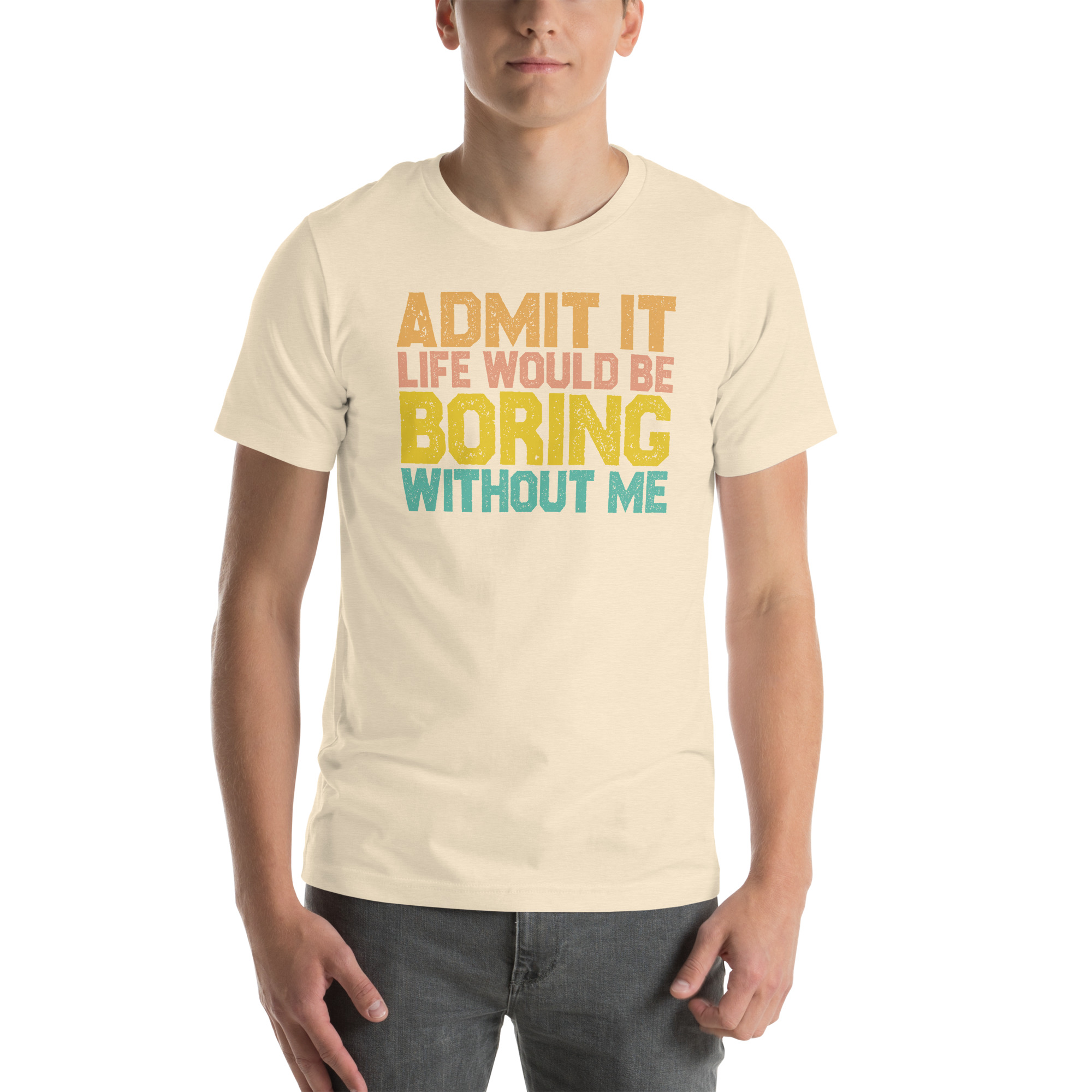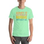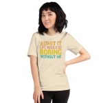 Admit it Life would be Boring without me, Funny quotes Unisex t-shirt. This t-shirt is everything you’ve dreamed of and more. It feels soft and lightweight, with the right amount of stretch. It’s comfortable and flattering for all.