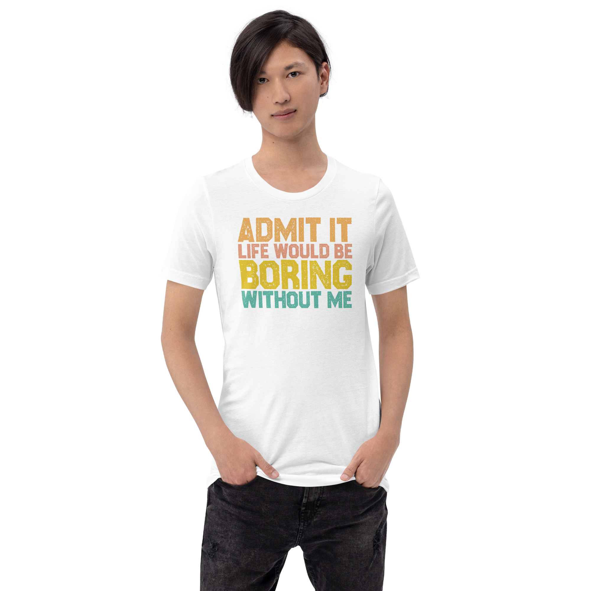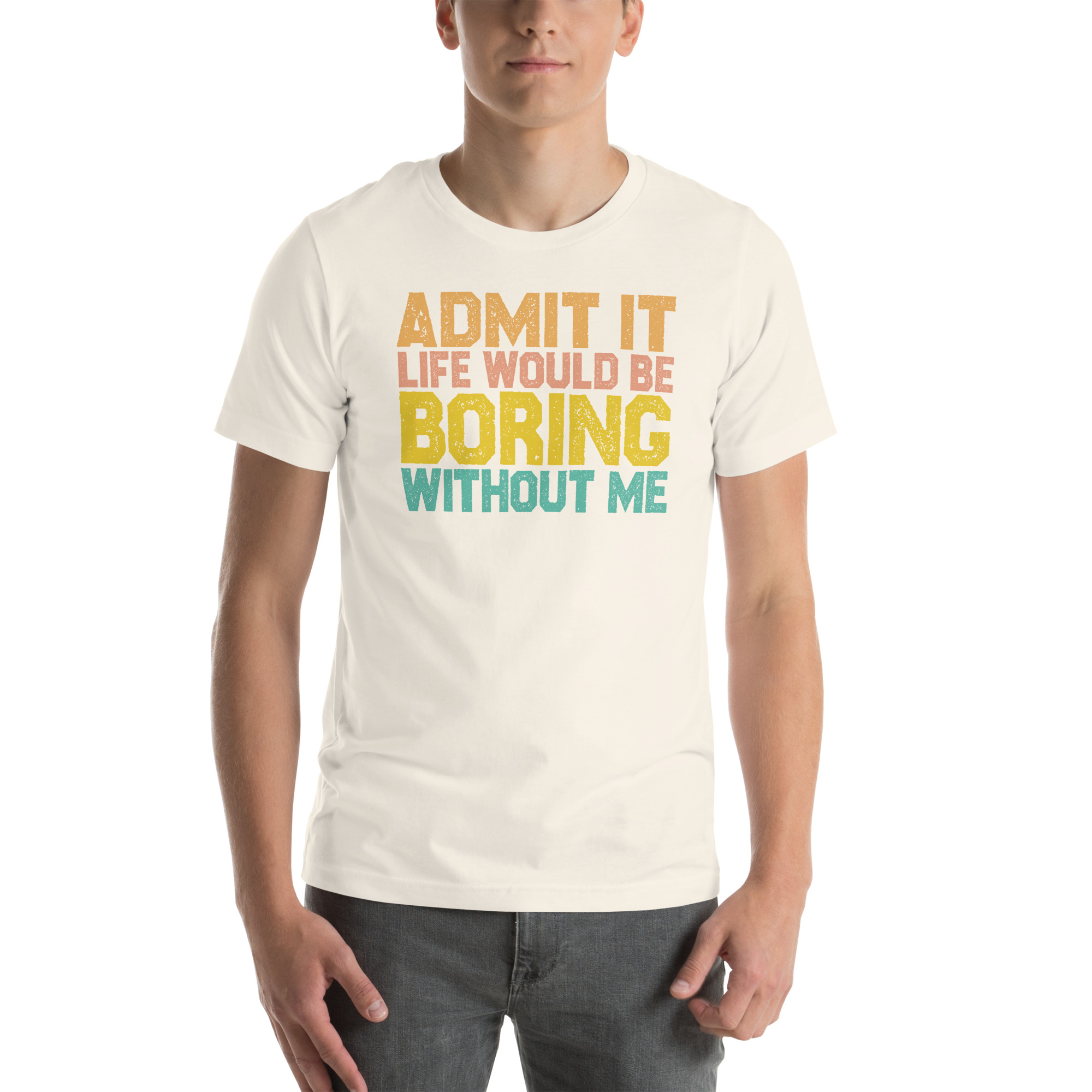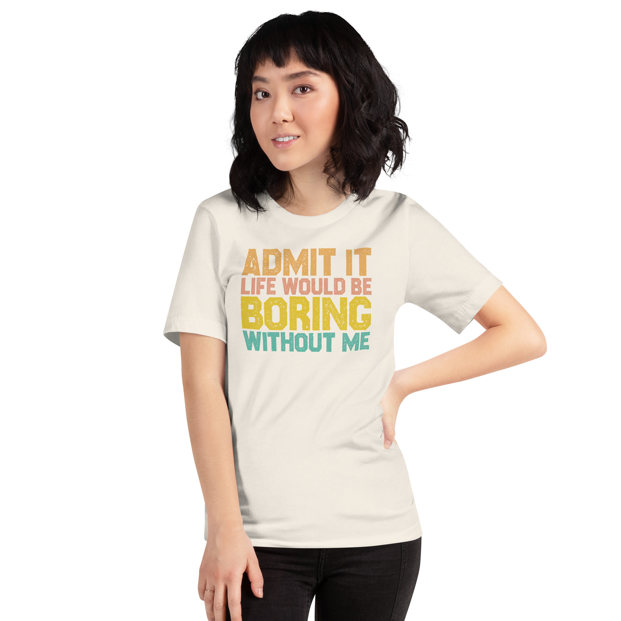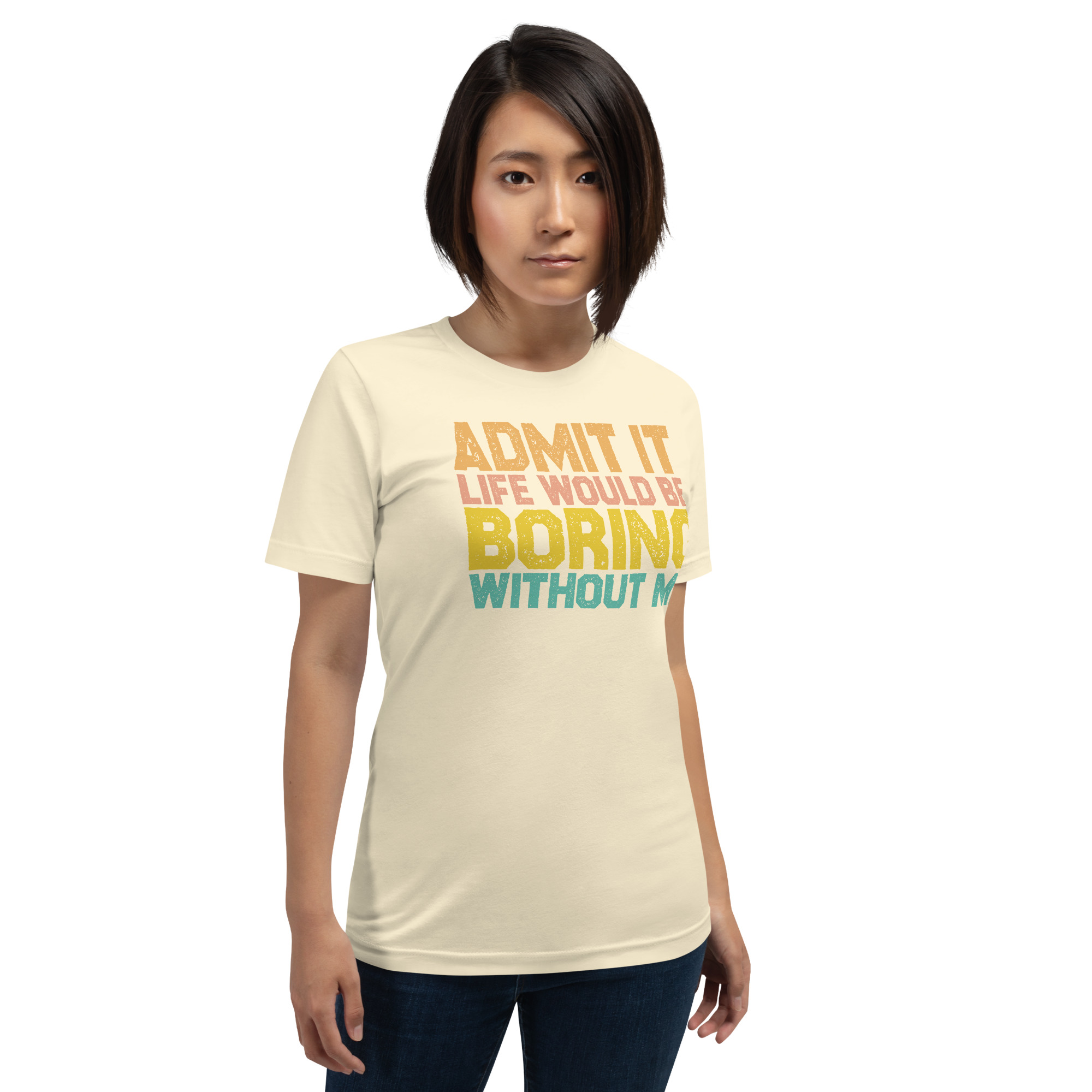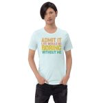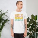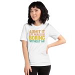 Admit it Life would be Boring without me, Funny quote Unisex T-Shirt. This t-shirt is everything you’ve dreamed of and more. It feels soft and lightweight, with the right amount of stretch. It’s comfortable and flattering for all.