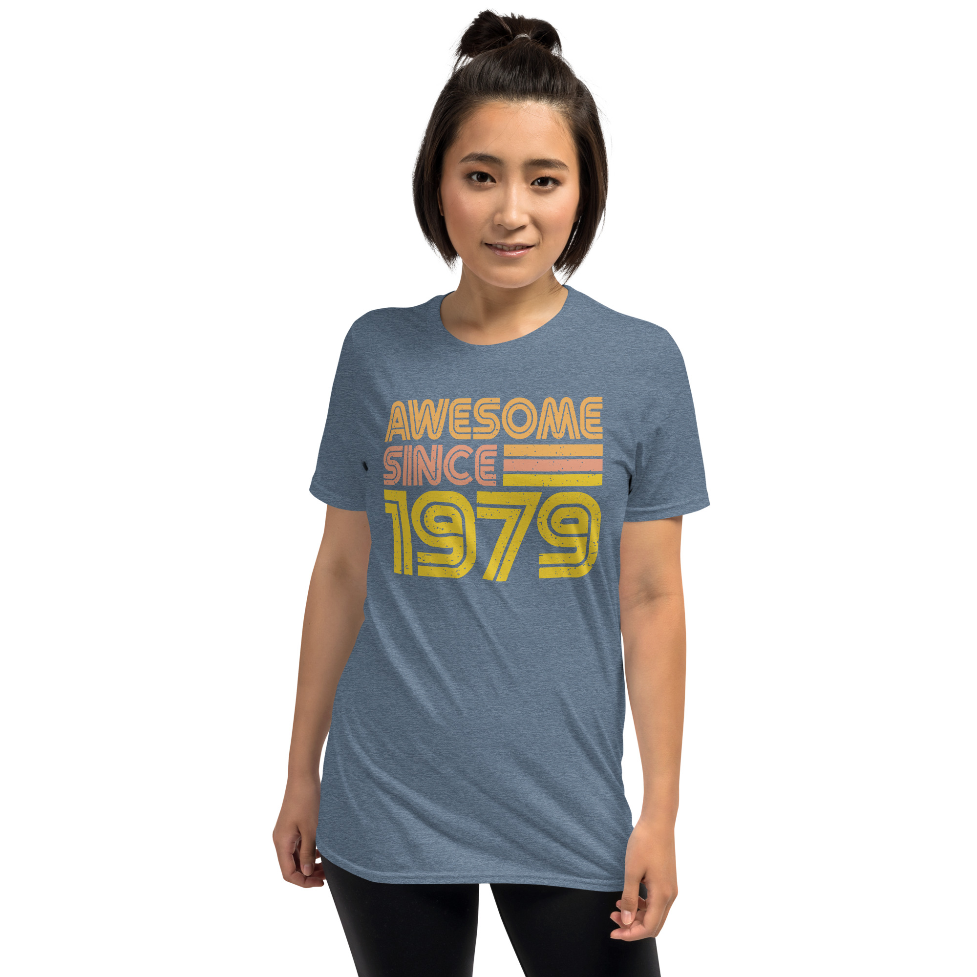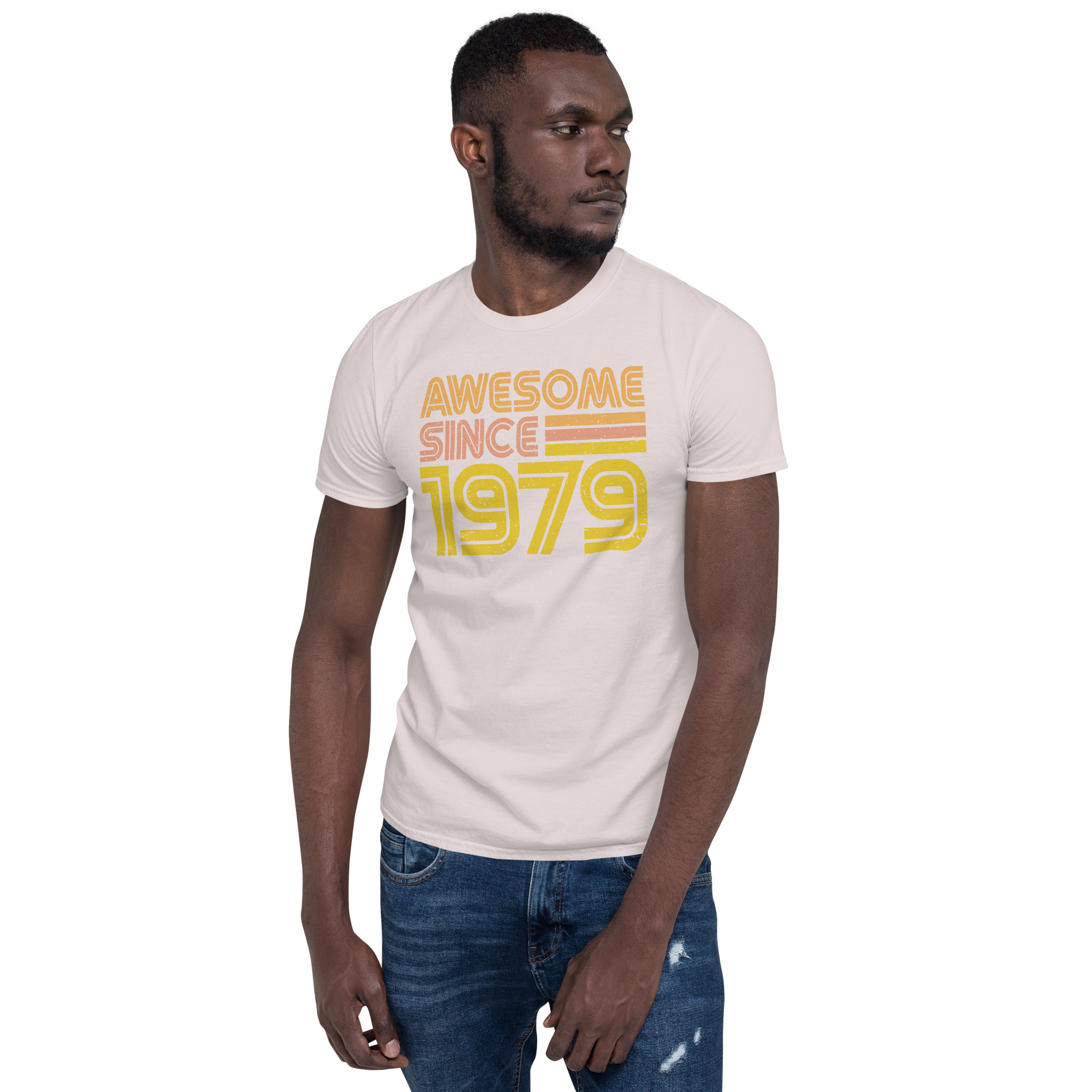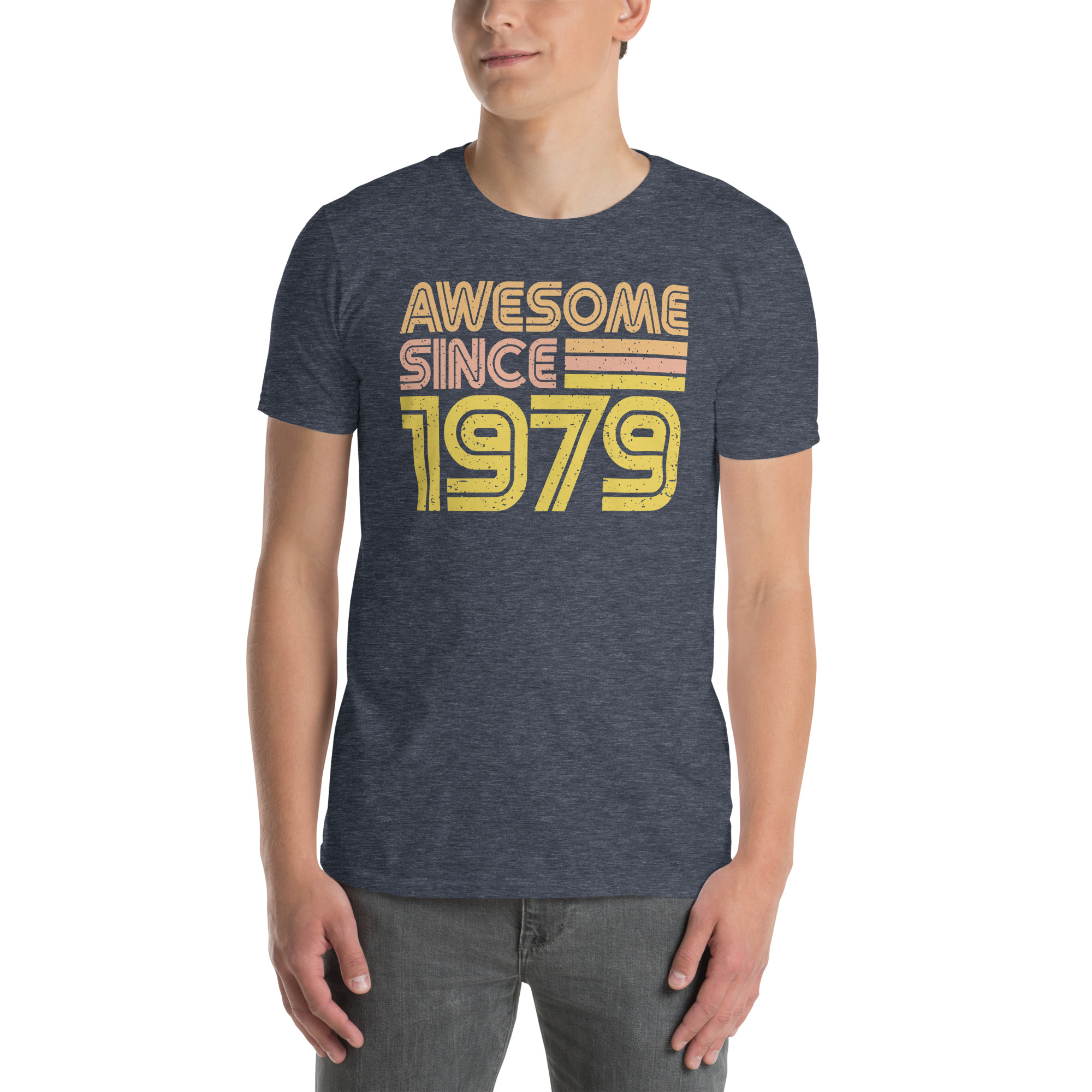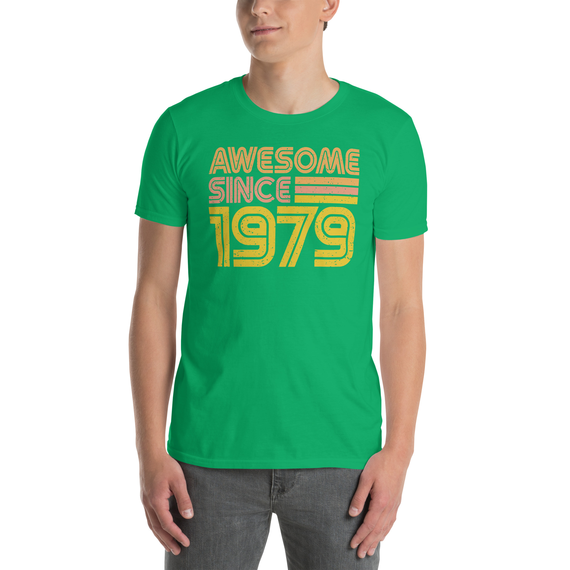 Awesome since 1979, Birth year, Short-Sleeve Unisex T-Shirt. You’ve now found the staple t-shirt of your wardrobe. It’s made of 100% ring-spun cotton and is soft and comfy. The double stitching on the neckline and sleeves add more durability to what is sure to be a favorite!
