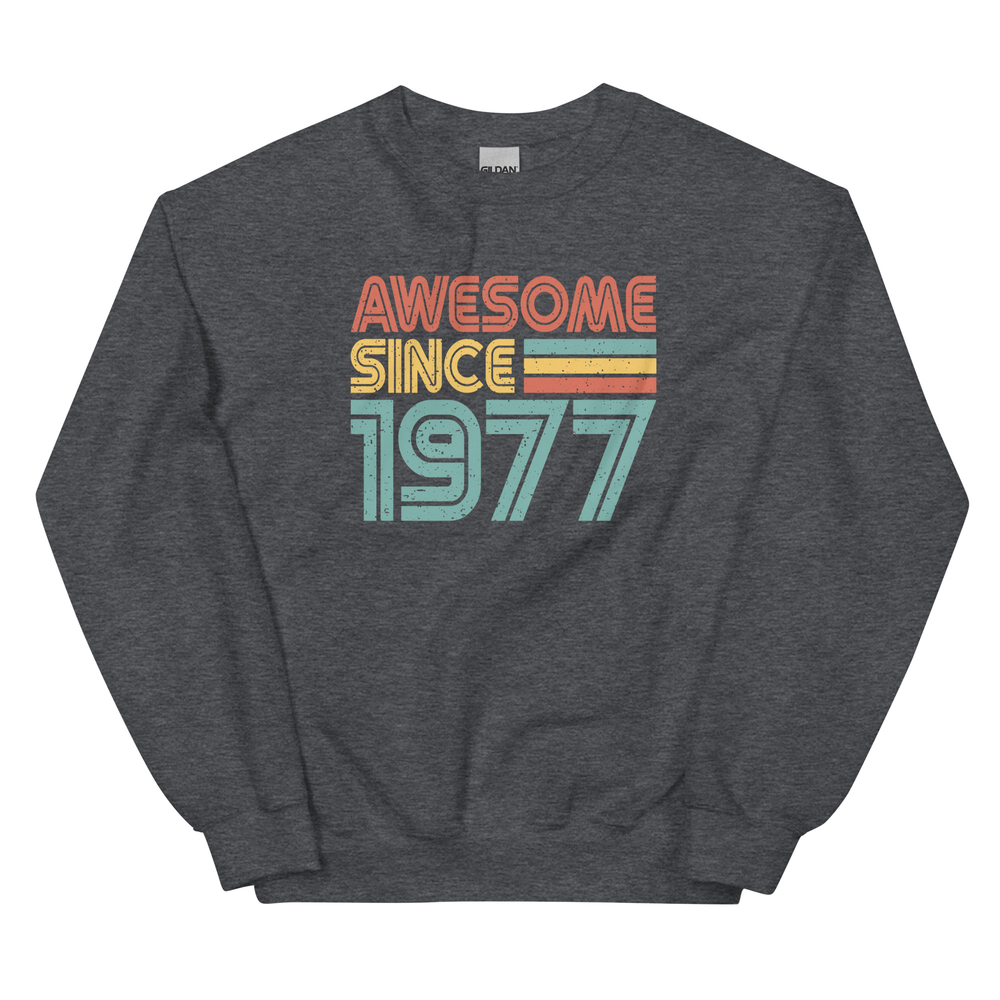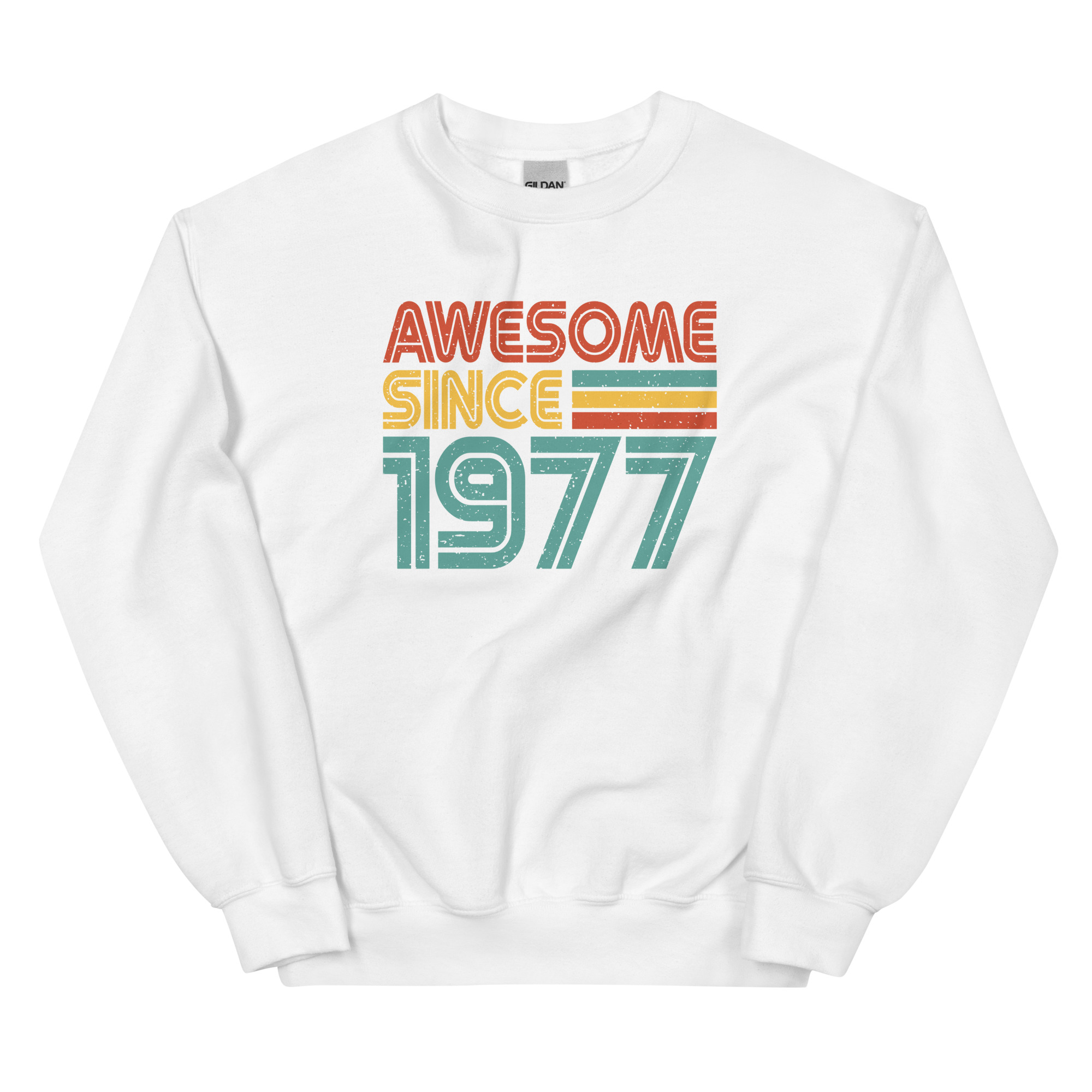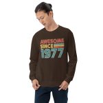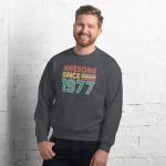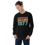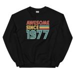 Awesome since 1977, Birth year Unisex Sweatshirt. A sturdy and warm sweatshirt bound to keep you warm in the colder months. A pre-shrunk, classic fit sweater that’s made with air-jet spun yarn for a soft feel.