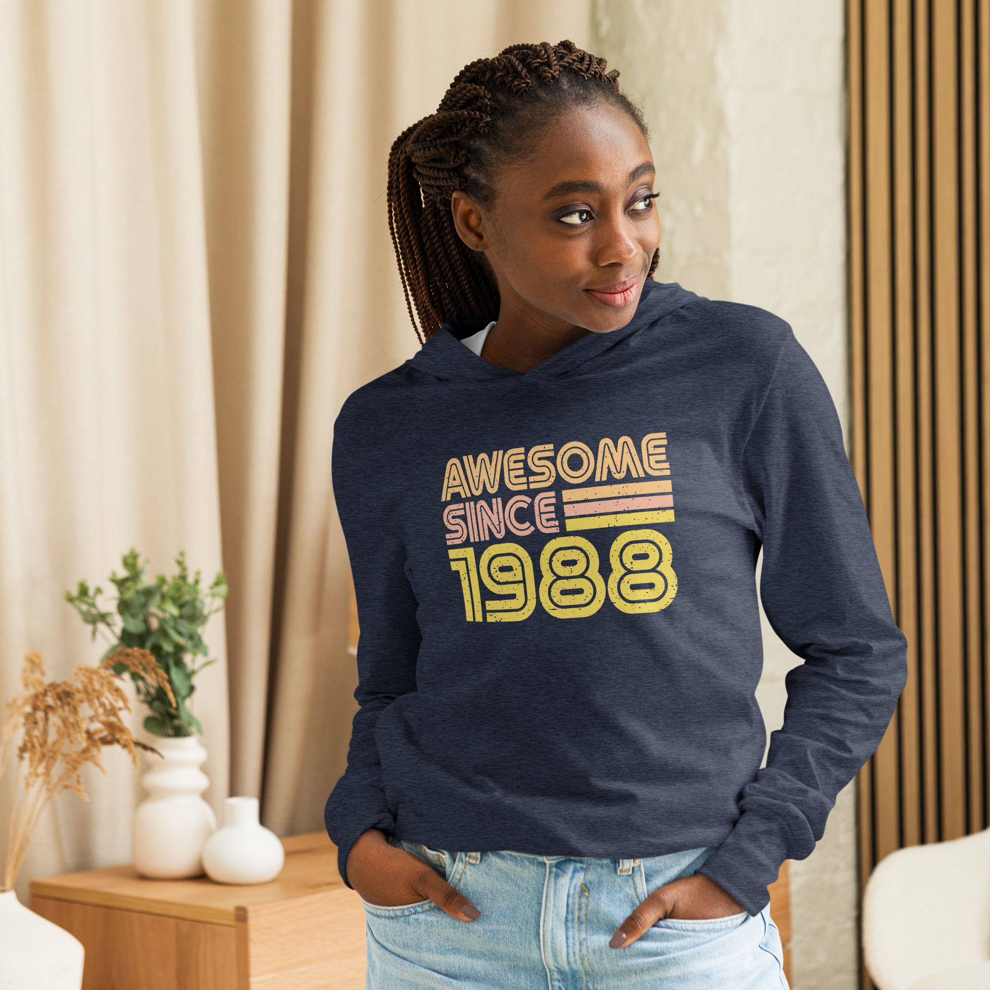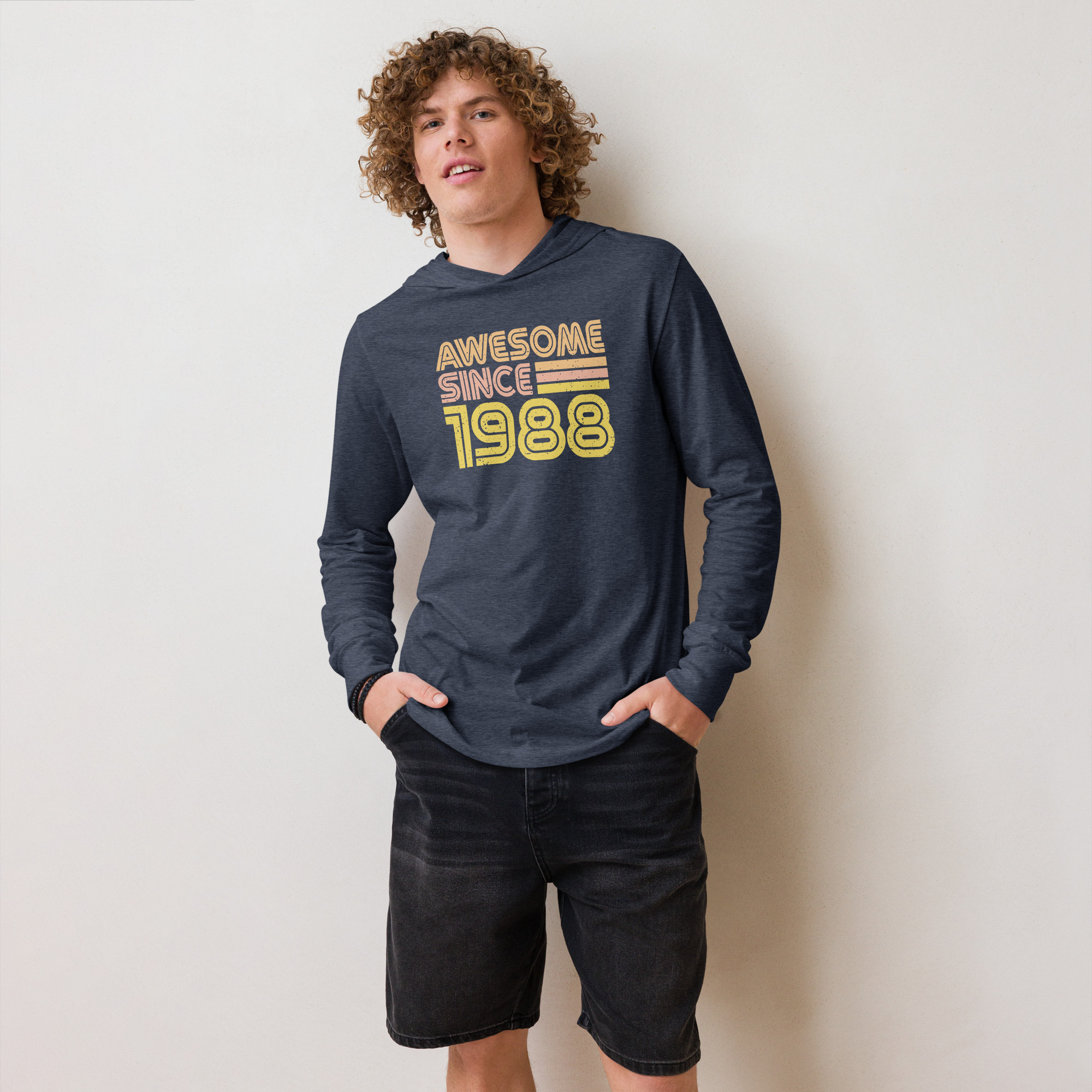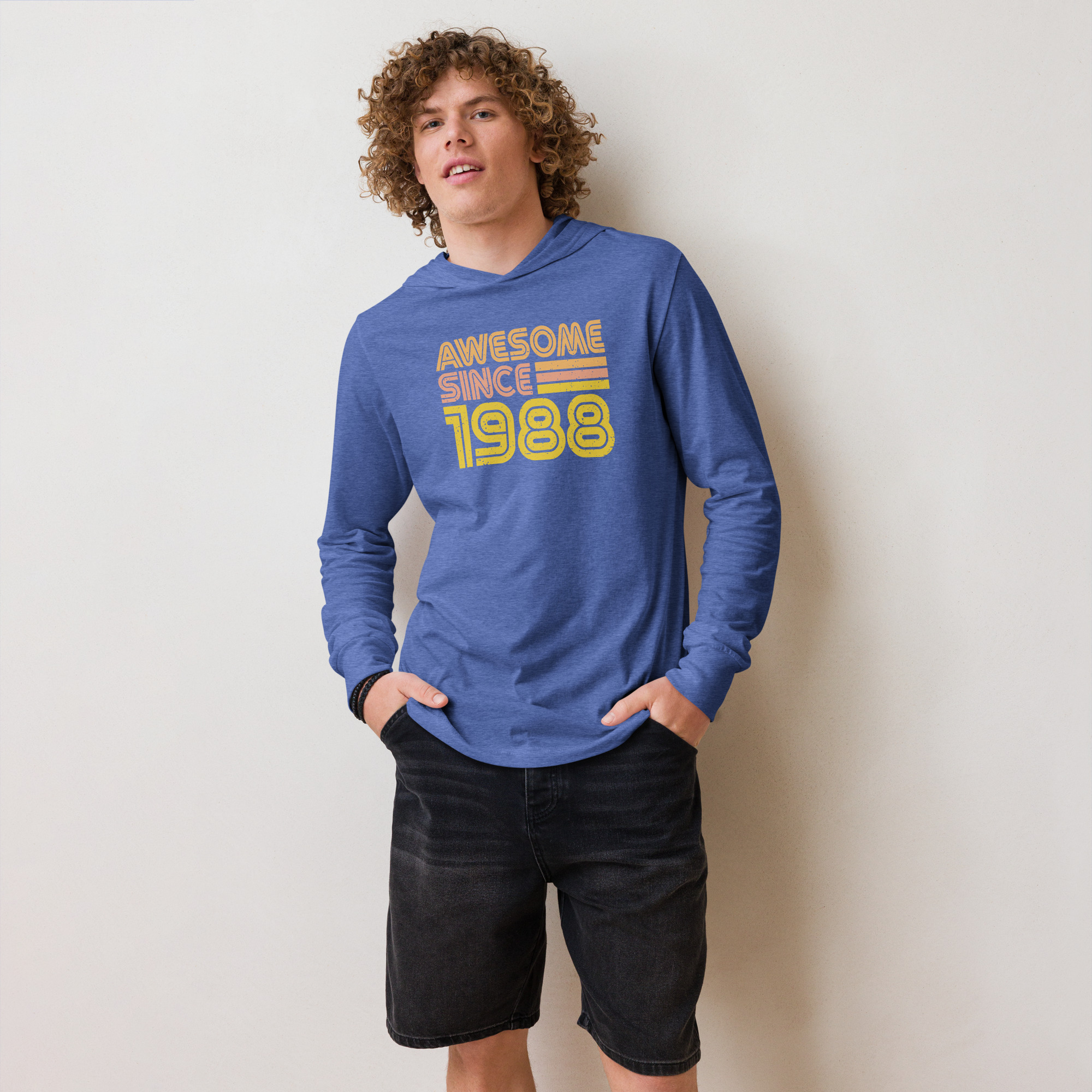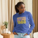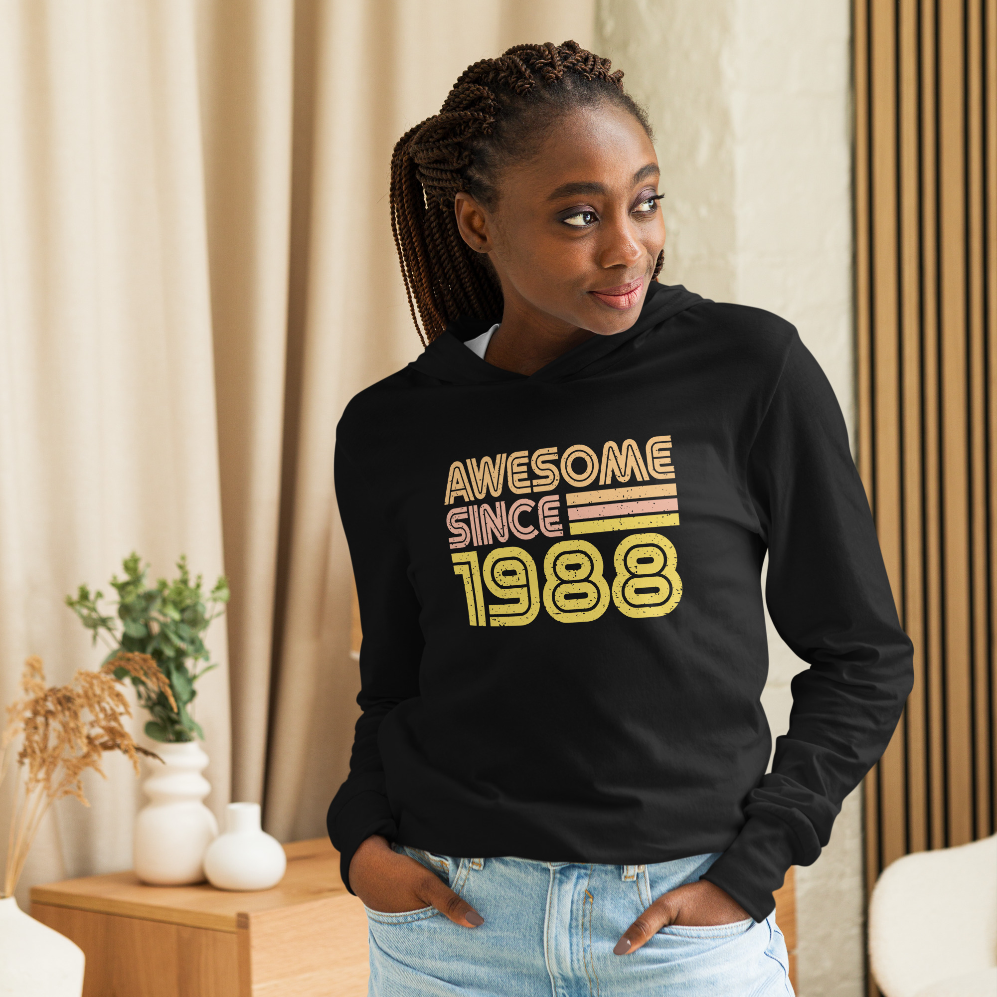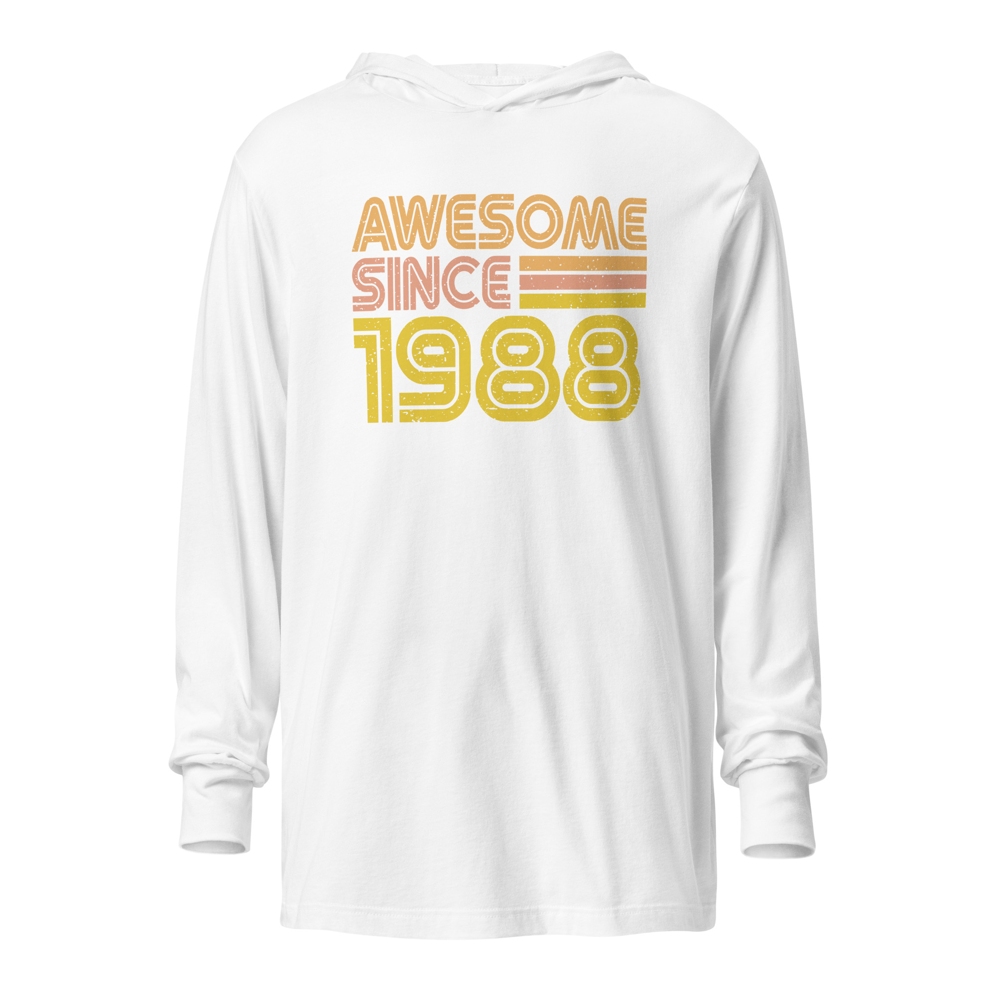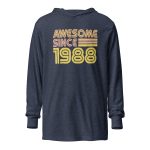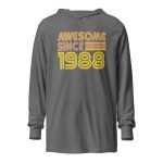 Awesome since 1988, 1988 Legends Birth year Hooded long-sleeve tee. With its long sleeves and comfortable hood, this tee is perfect for layering, allowing you to create stylish outfits all year round. Plus, its lightweight construction allows for unrestricted movement, ensuring that you feel at ease no matter the occasion.
