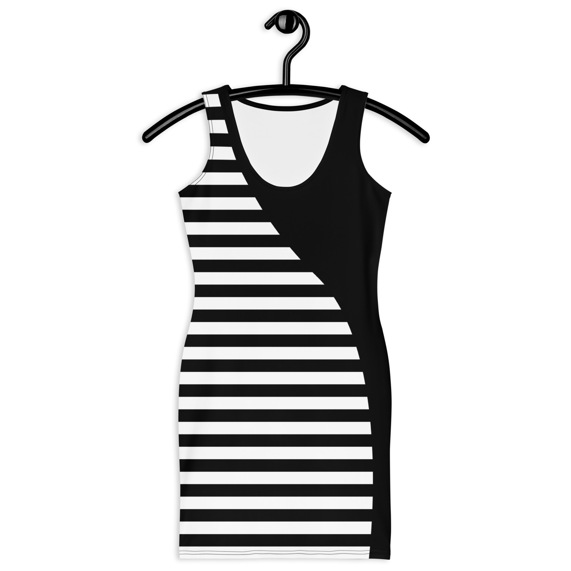 Black and white Stripes All Over Print Bodycon dress. Make a statement and look fabulous in this all-over printed, fitted dress.
