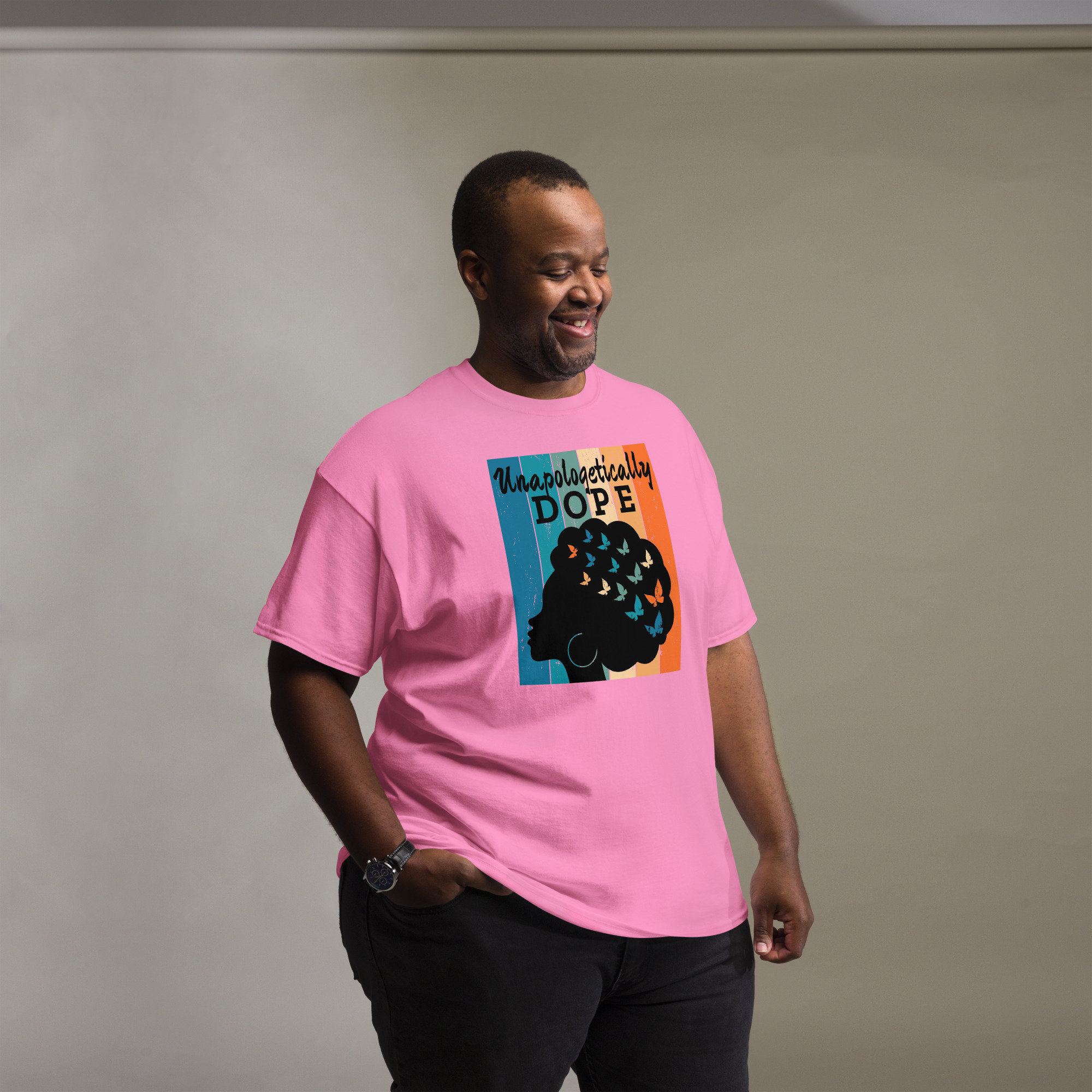 The 100% cotton unisex classic tee will help you land a more structured look. It sits nicely, maintains sharp lines around the edges, and goes perfectly with layered streetwear outfits. Plus, it’s extra trendy now!