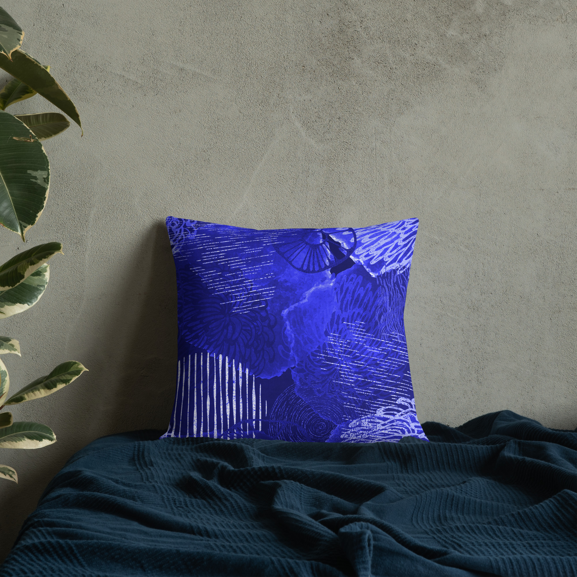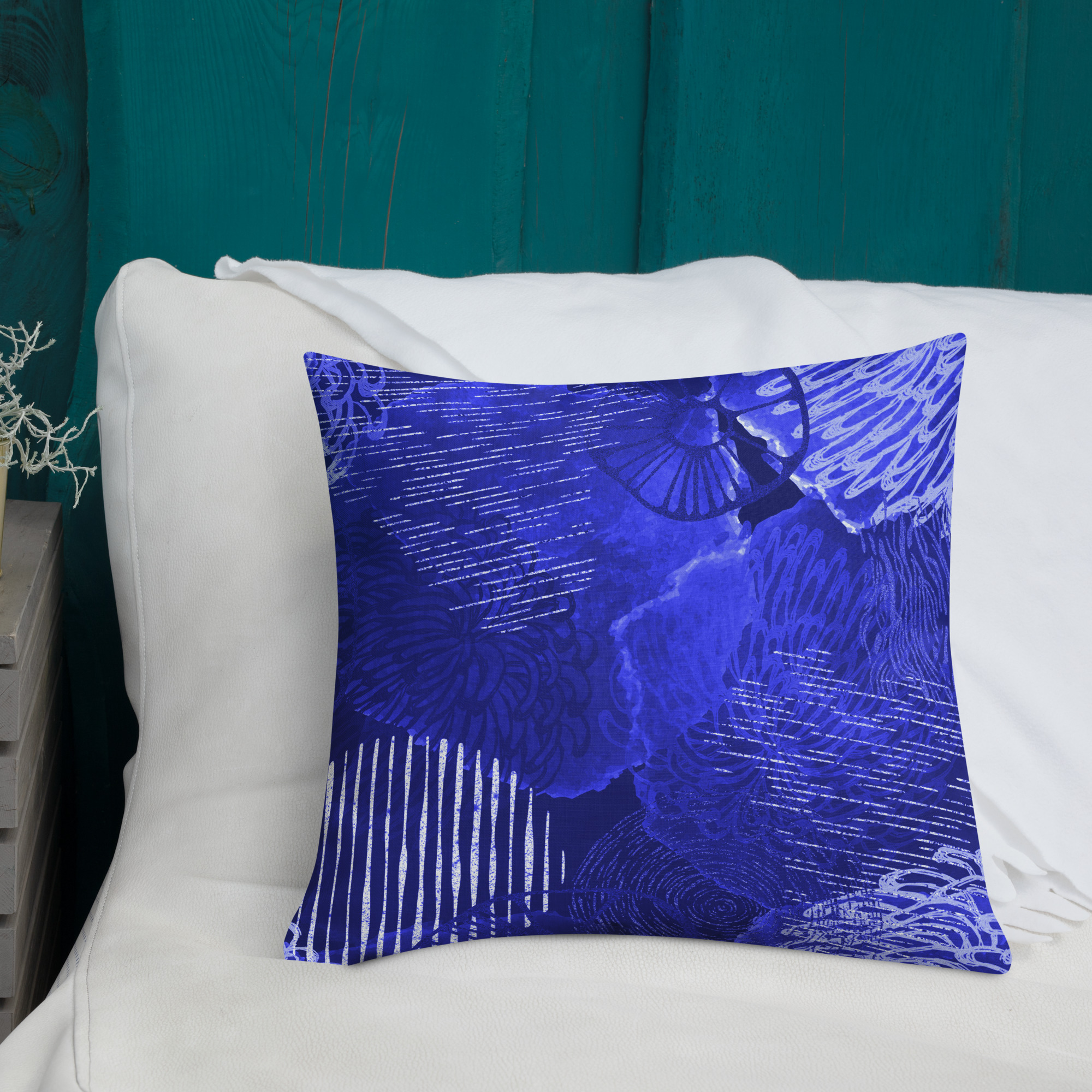 Blue floral design Premium Pillow