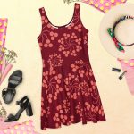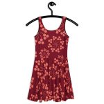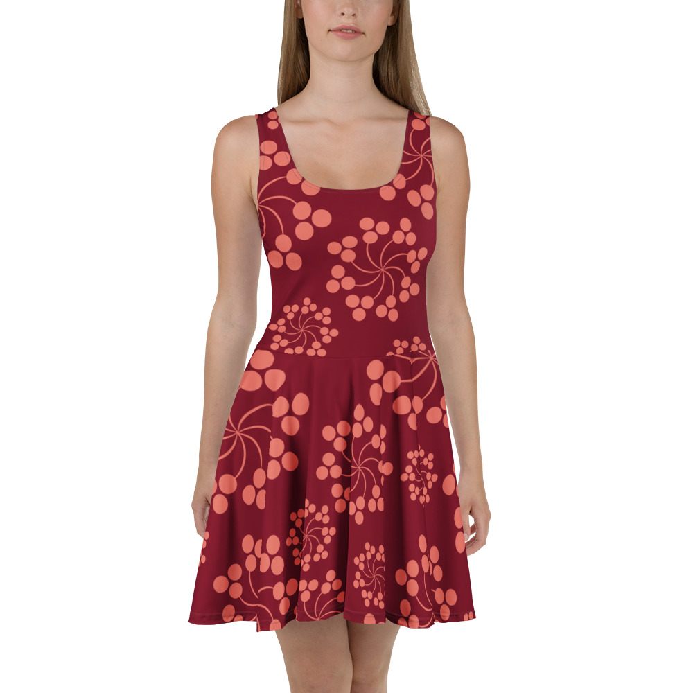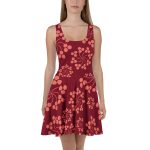 Burgundy floral All over Print Skater Dress. Dress to impress with this sleeveless skater dress! The soft fabric and flared skirt give it an elegant twist that brings out the intricate design with a beautiful vibrancy.