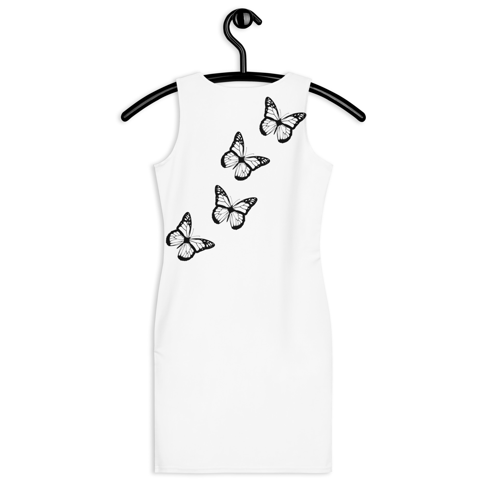Butterfly print all over print Bodycon dress. Make a statement and look fabulous in this all-over printed, fitted dress.
