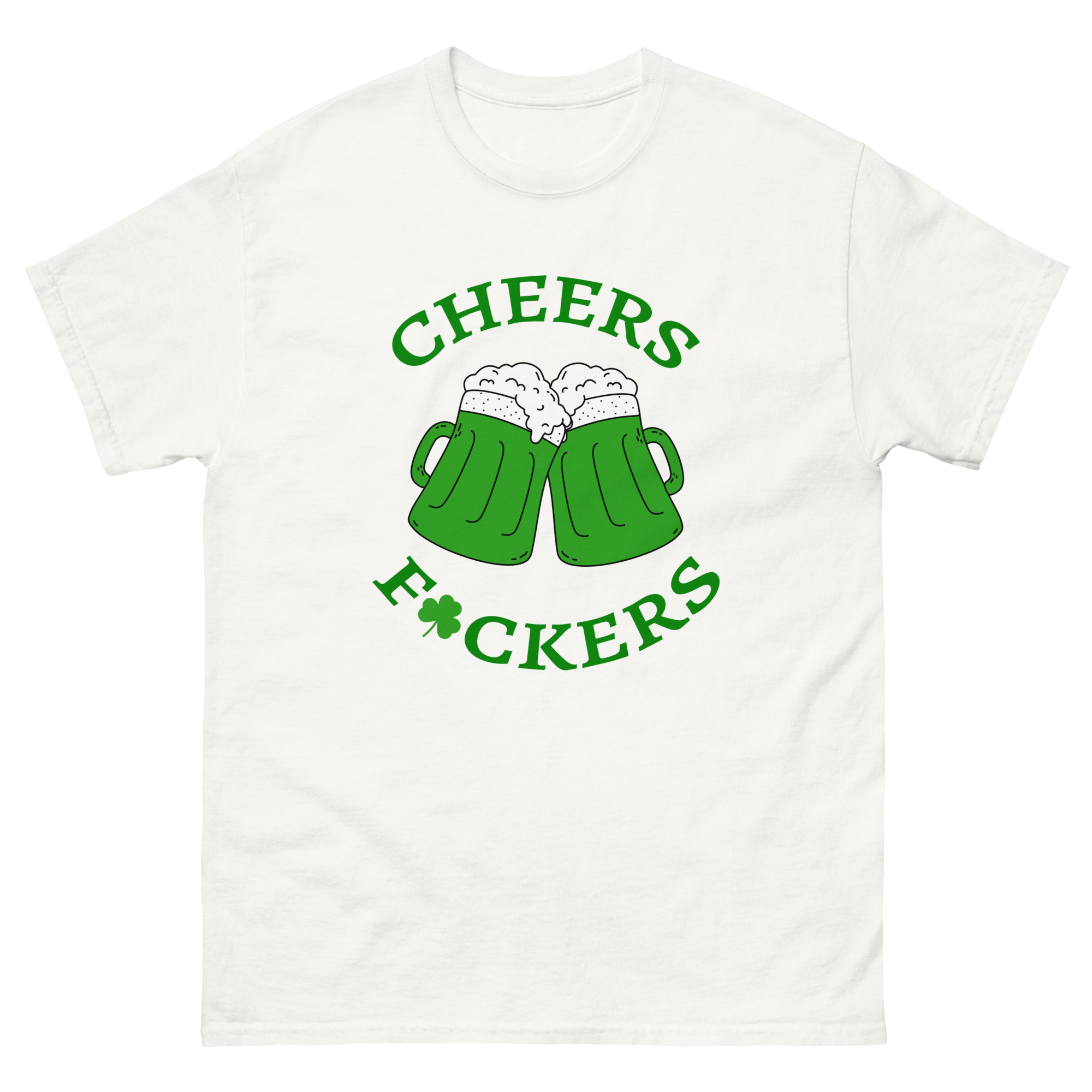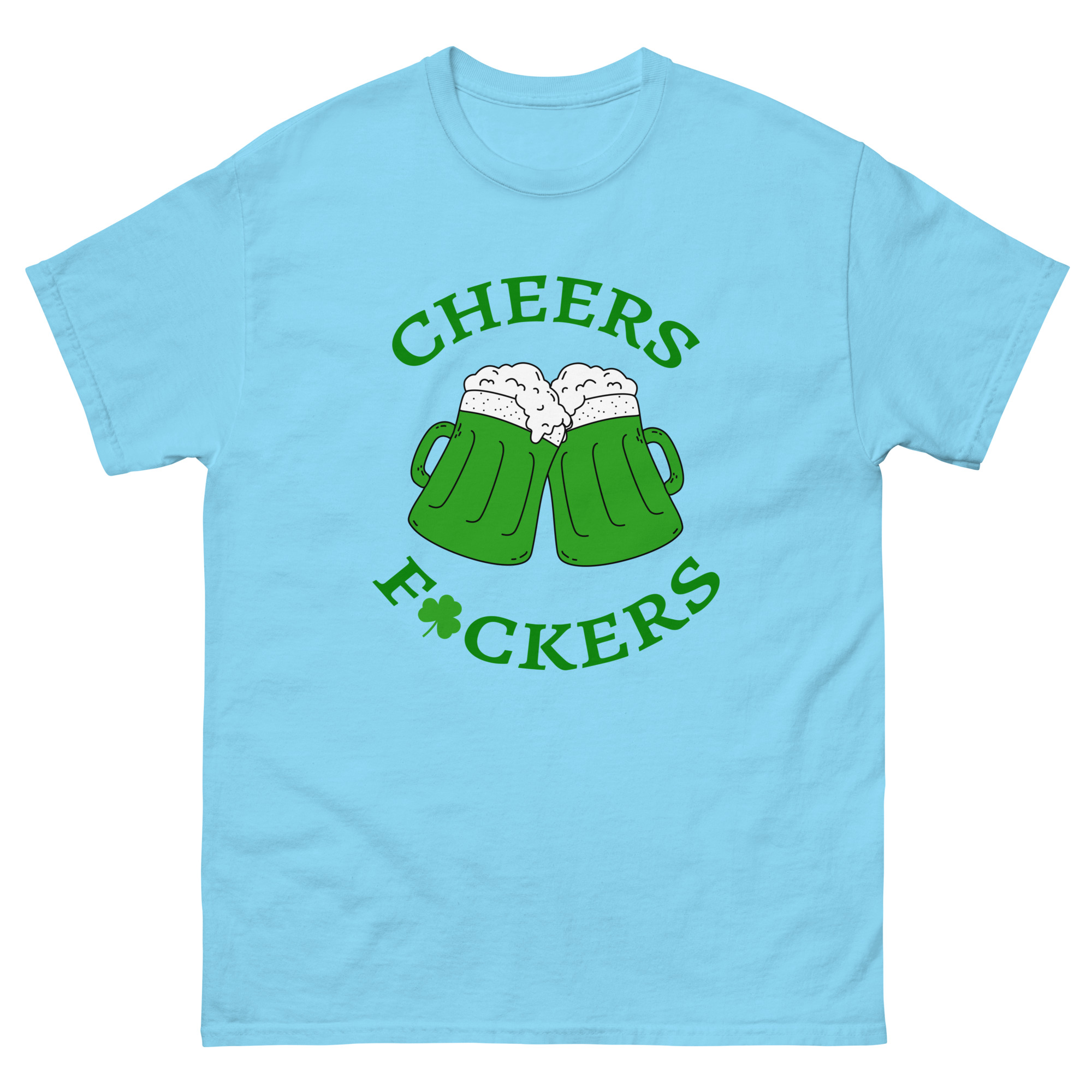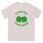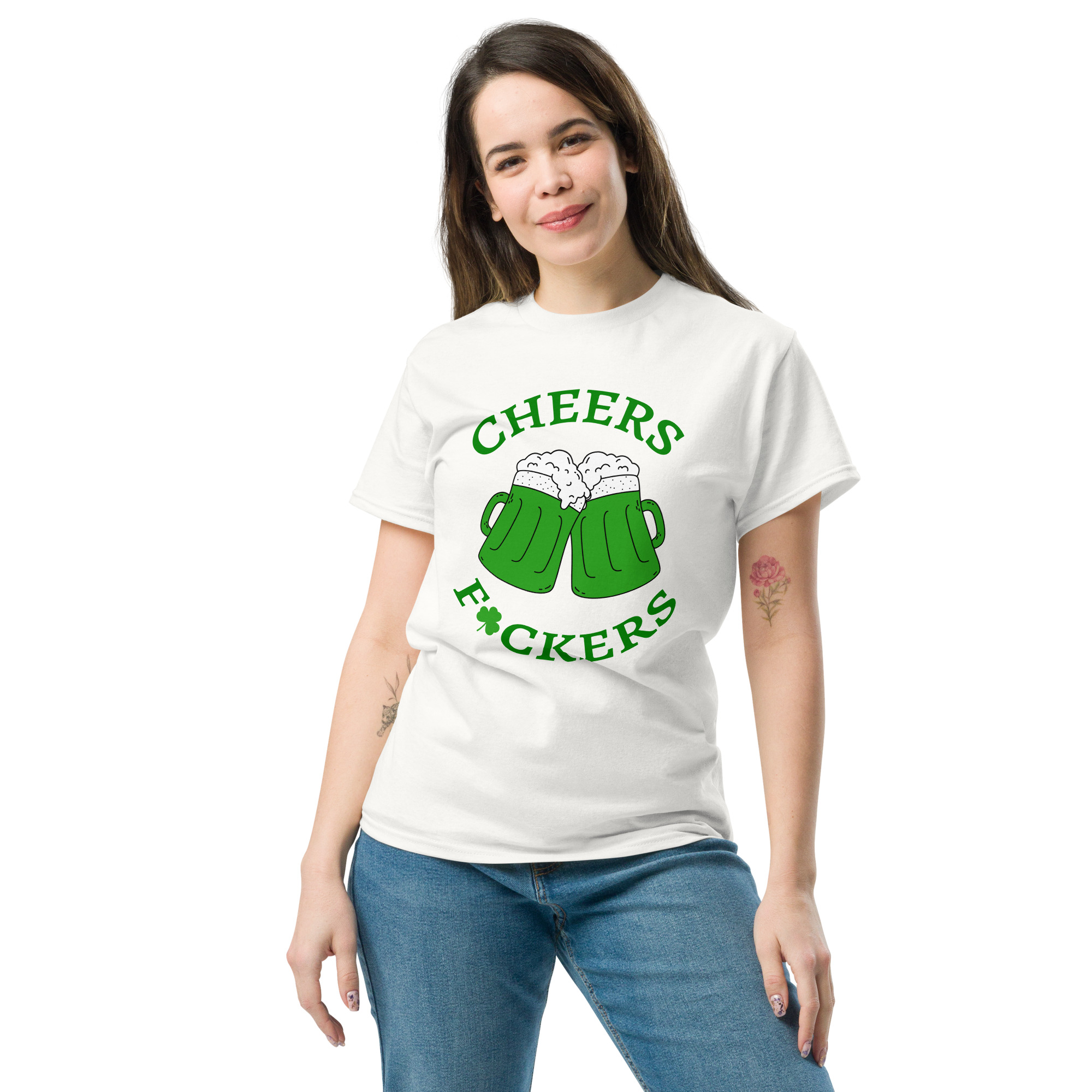 Cheers and F*ckers, Paddys pub, irish beer, St. Patrick’s Day Unisex classic tee. The 100% cotton unisex classic tee will help you land a more structured look. It sits nicely, maintains sharp lines around the edges, and goes perfectly with layered streetwear outfits. Plus, it’s extra trendy now!