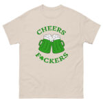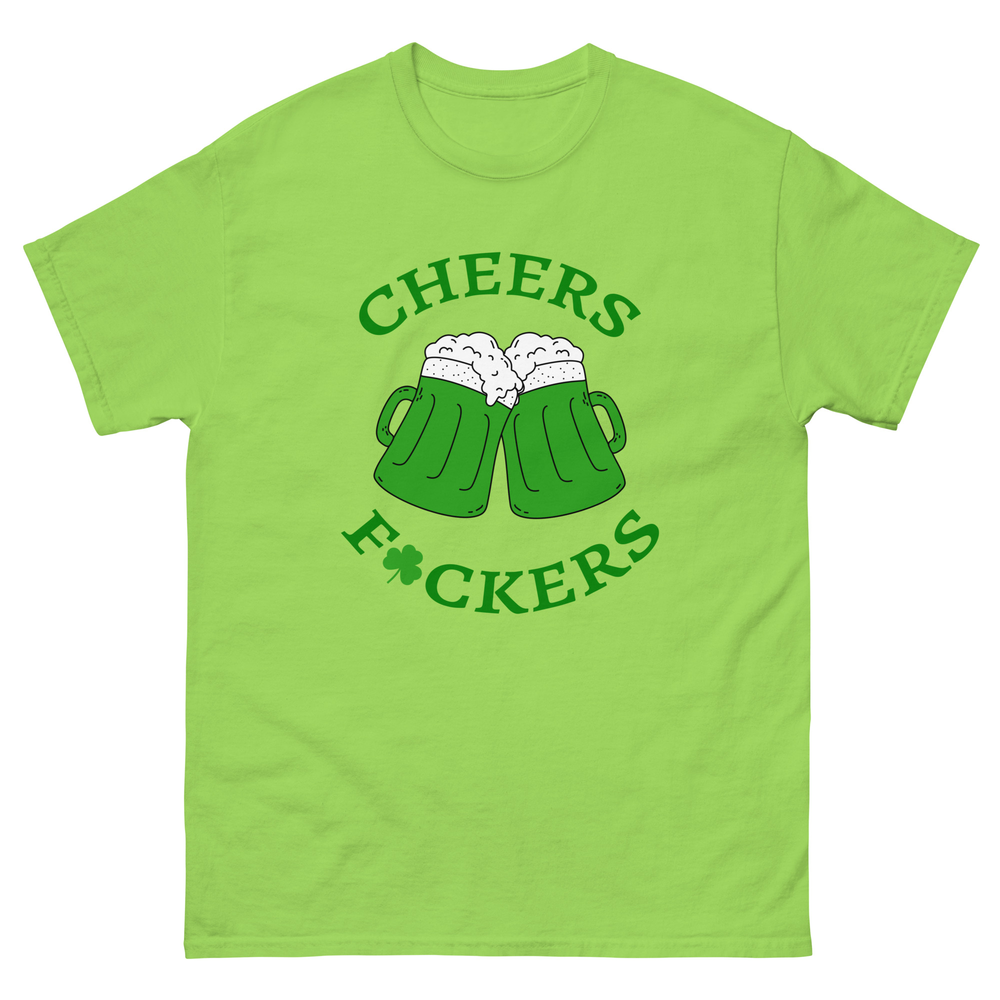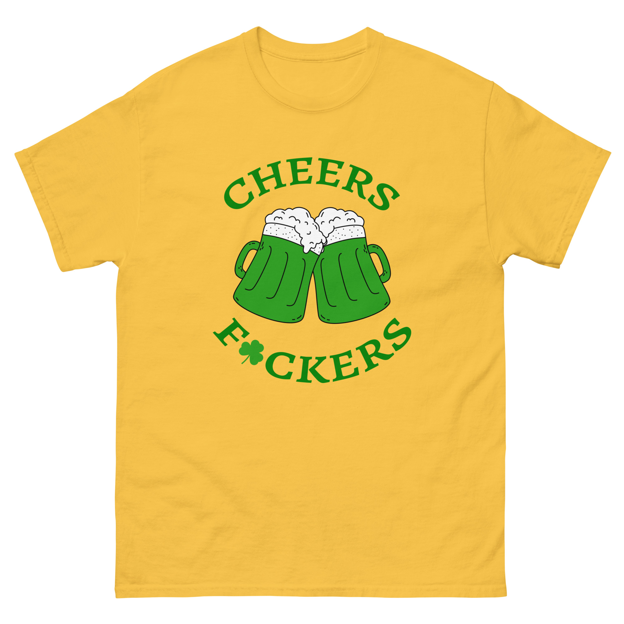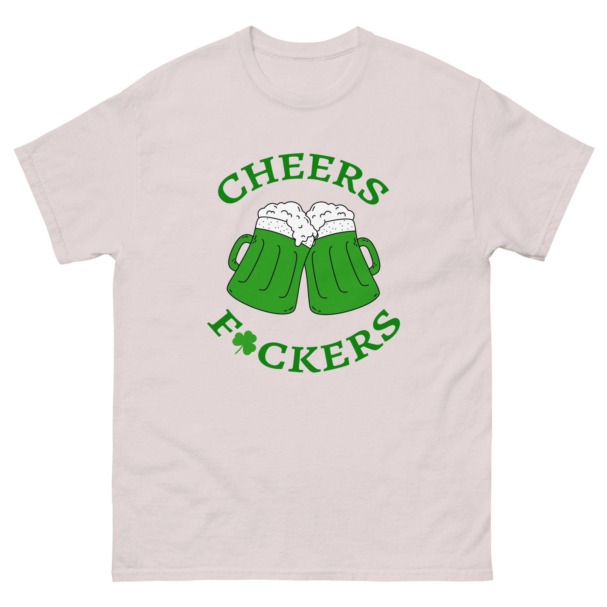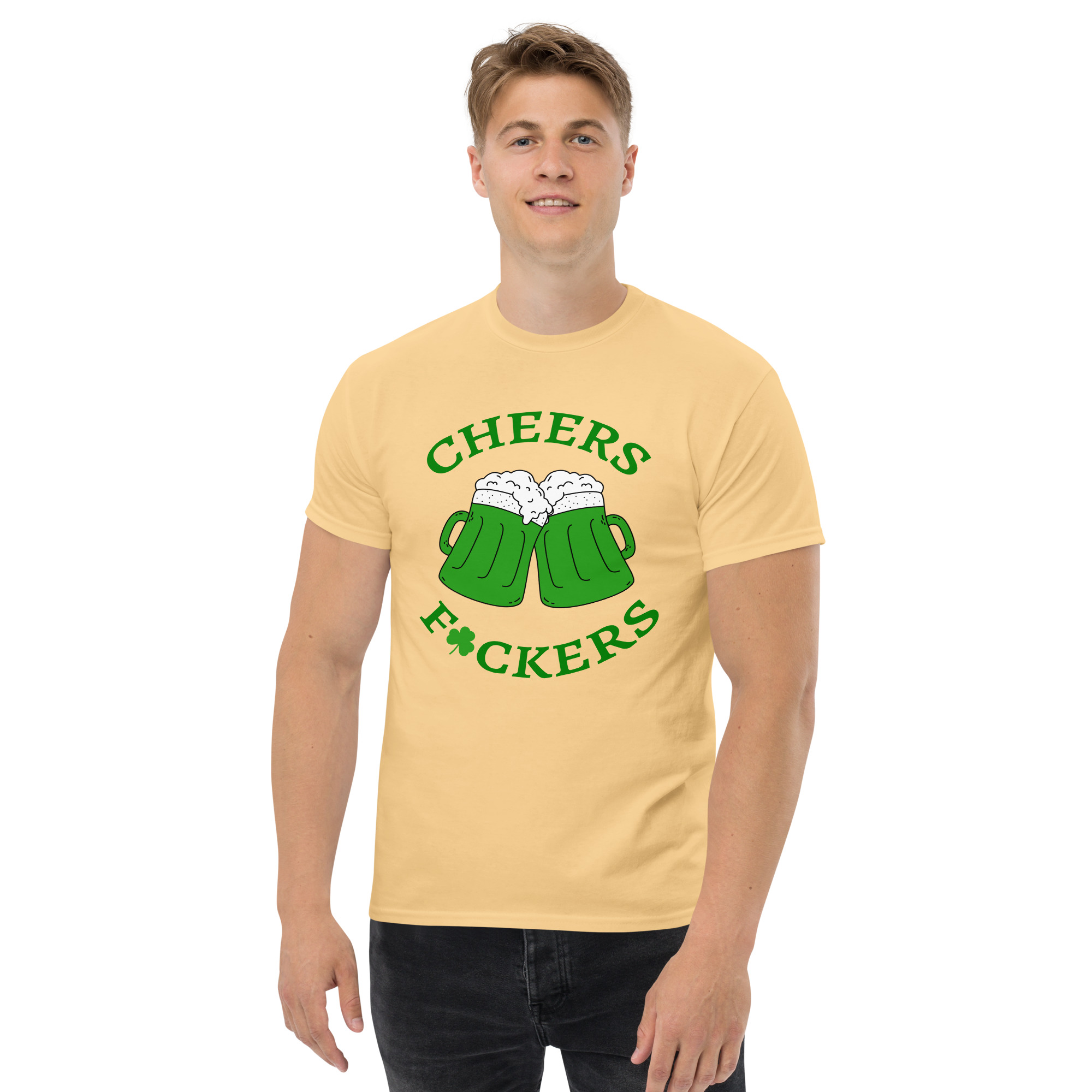 Cheers and F*ckers, Paddys pub, irish beer, St. Patrick’s Day Unisex classic tee. The 100% cotton unisex classic tee will help you land a more structured look. It sits nicely, maintains sharp lines around the edges, and goes perfectly with layered streetwear outfits. Plus, it’s extra trendy now!