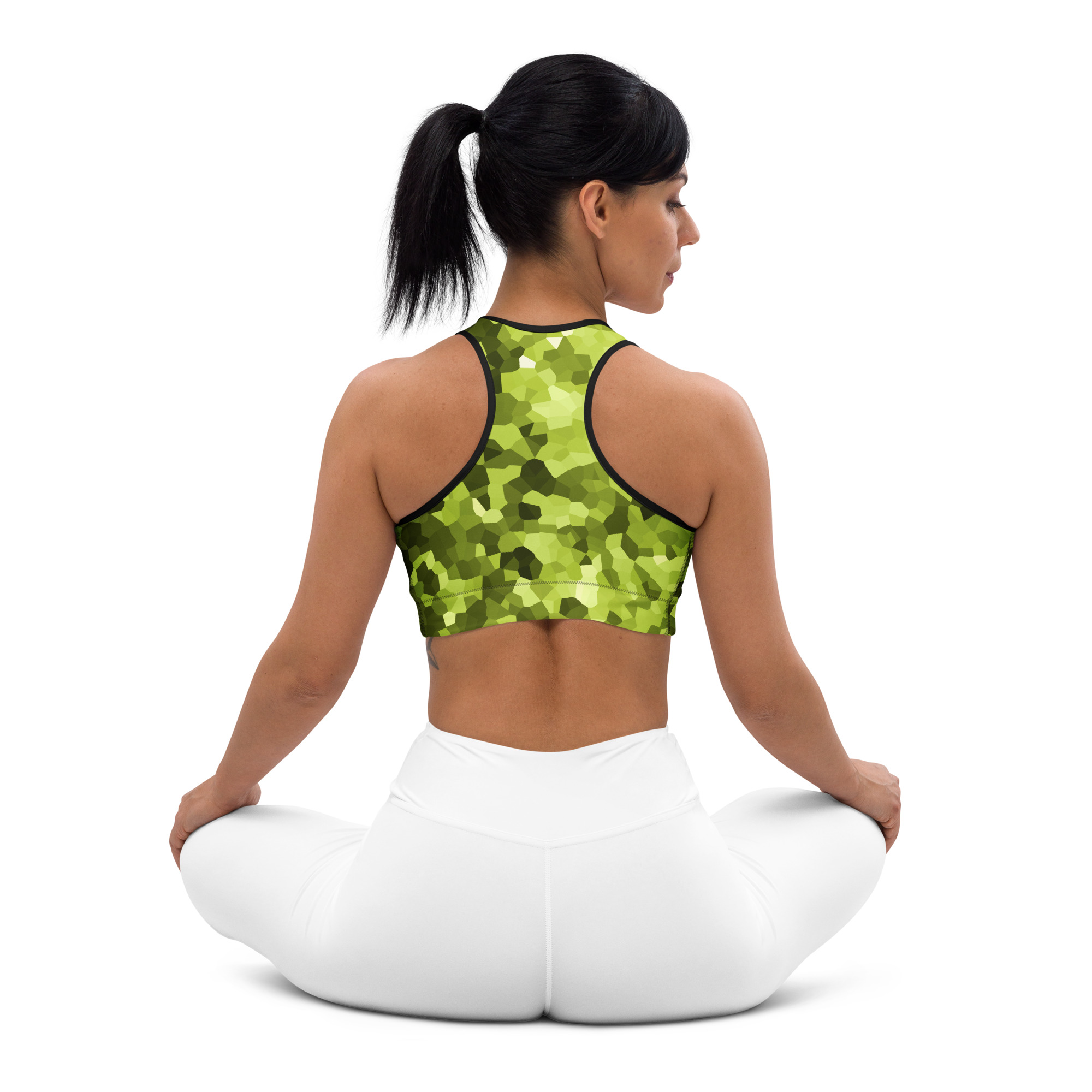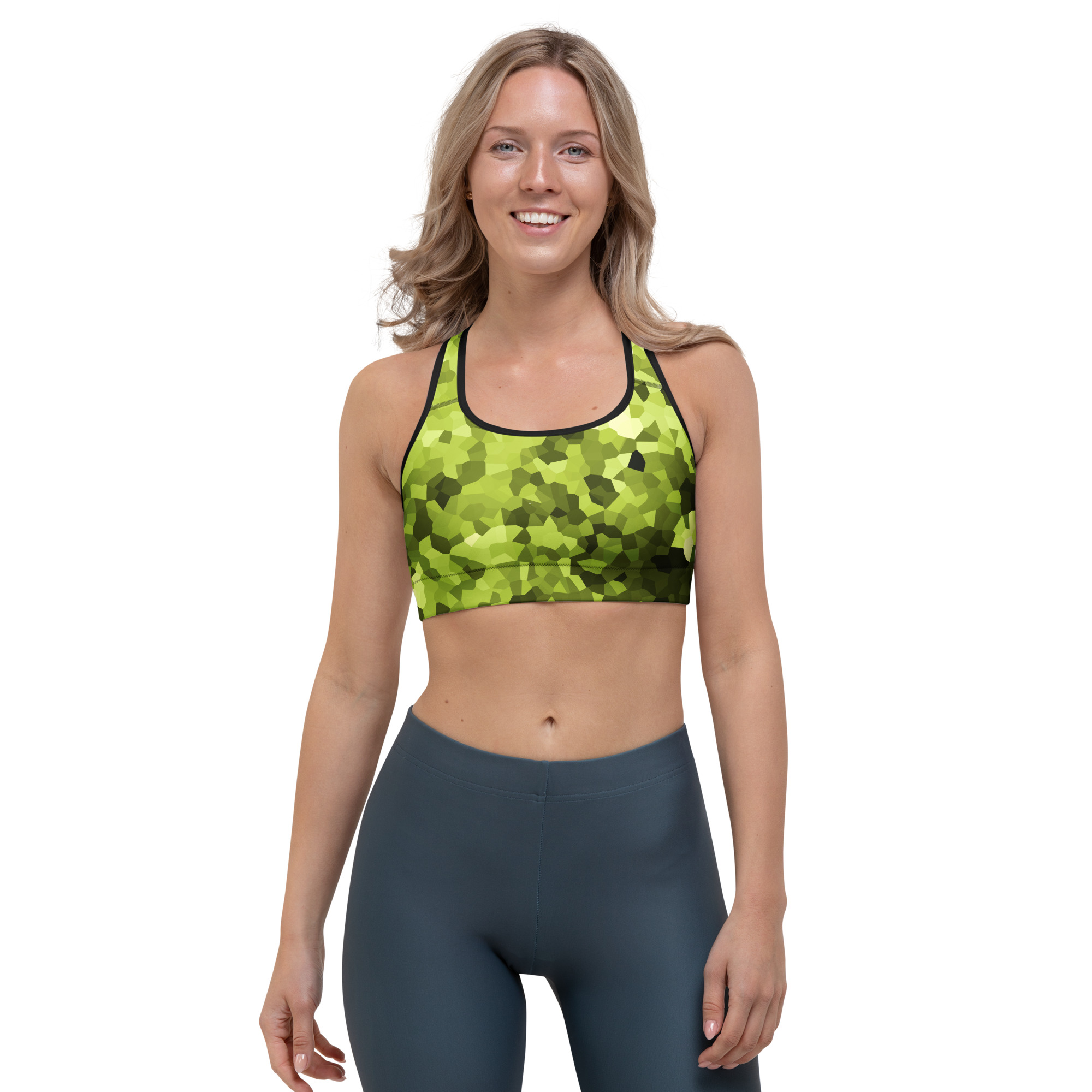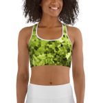 This gorgeous sports bra is made from moisture-wicking material that stays dry during low and medium intensity workouts. The bra has support material in the shoulder straps, double layer front, and a wide elastic band to ensure constant support.