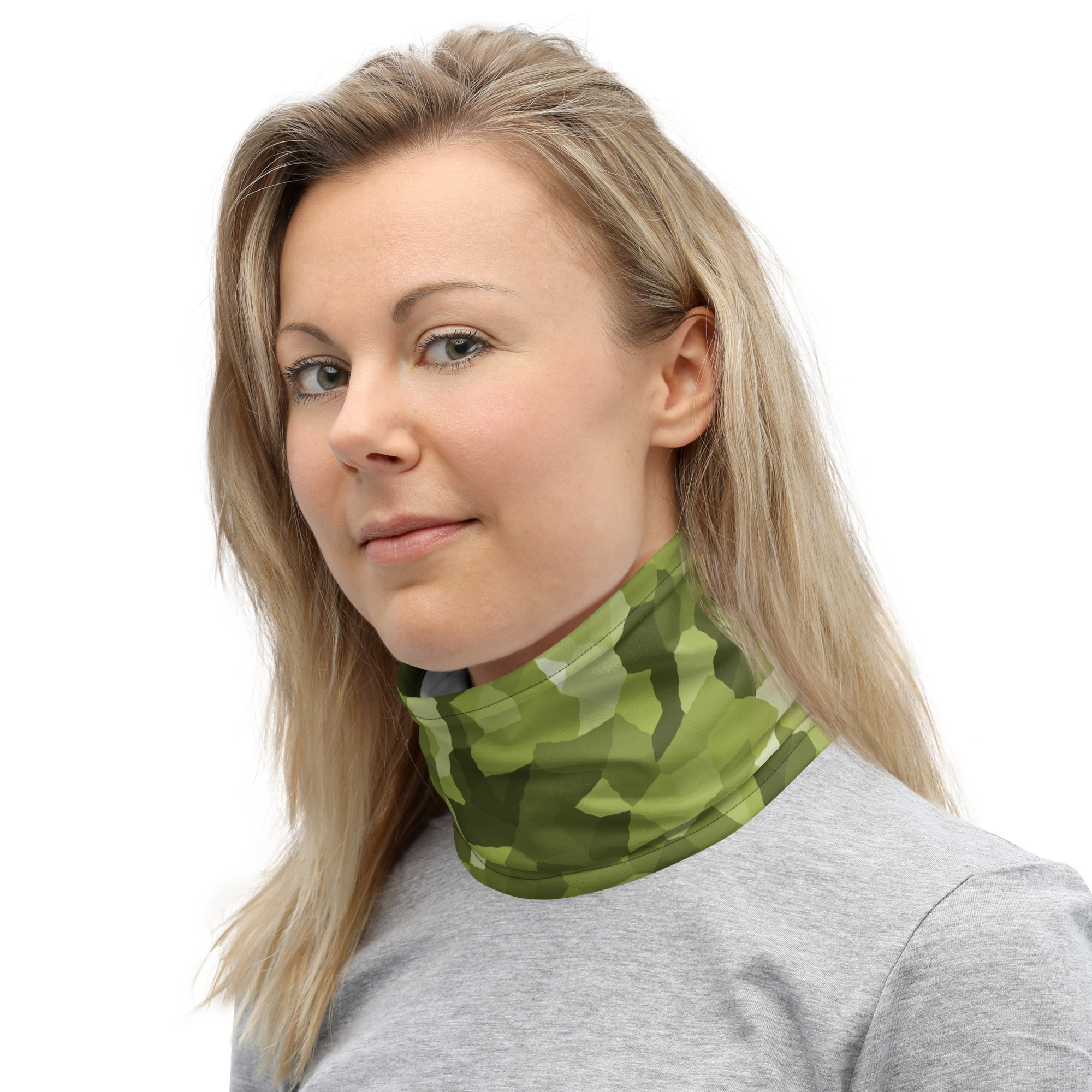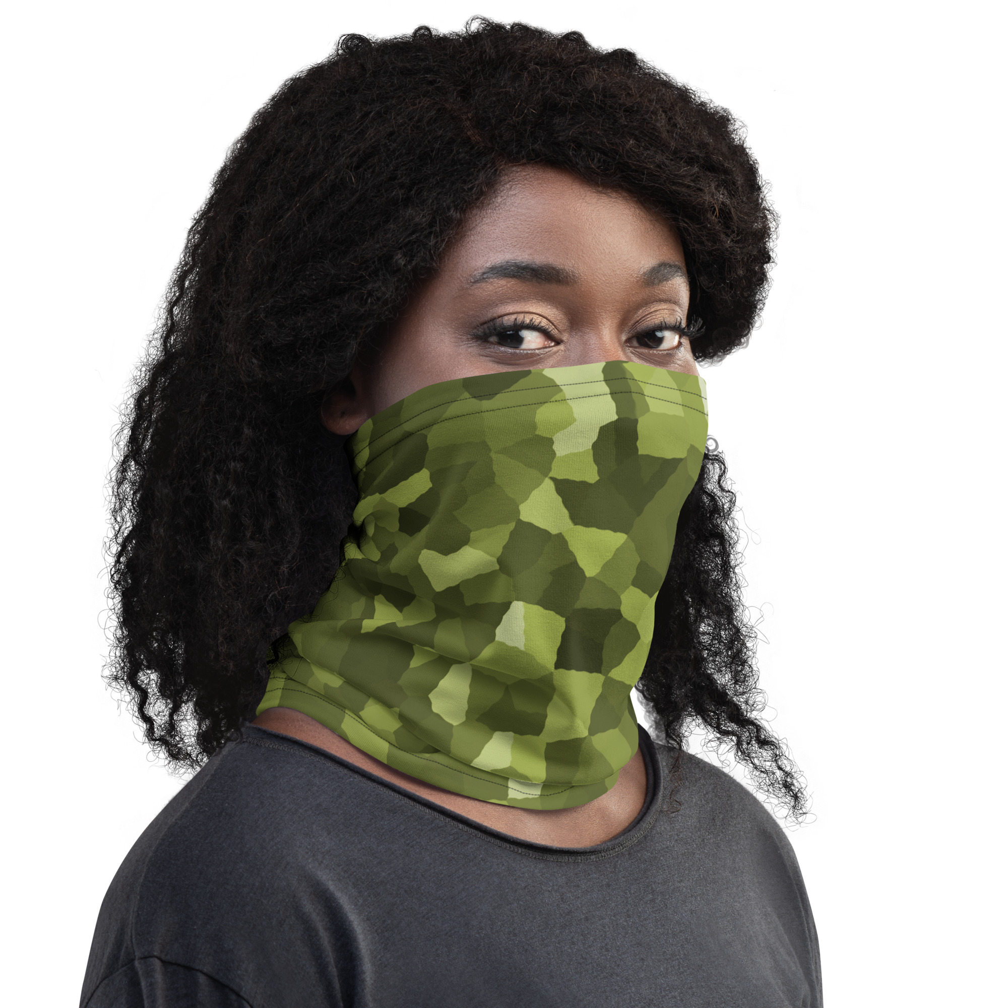 Crystal Camouflage All over print Neck Gaiter. This neck gaiter is a versatile accessory that can be used as a face covering, headband, bandana, wristband, and neck warmer. Upgrade your accessory game and find a matching face shield for each of your outfits.