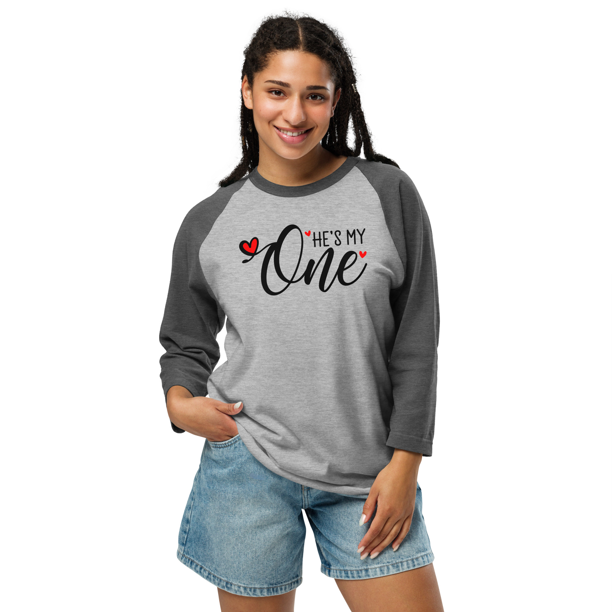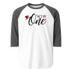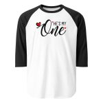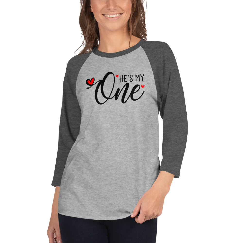 He is my One, Valentine day Women’s 3/4 sleeve raglan shirt. A stylish spin on the classic baseball raglan. The combed cotton blend makes it super soft, comfortable, and lightweight.