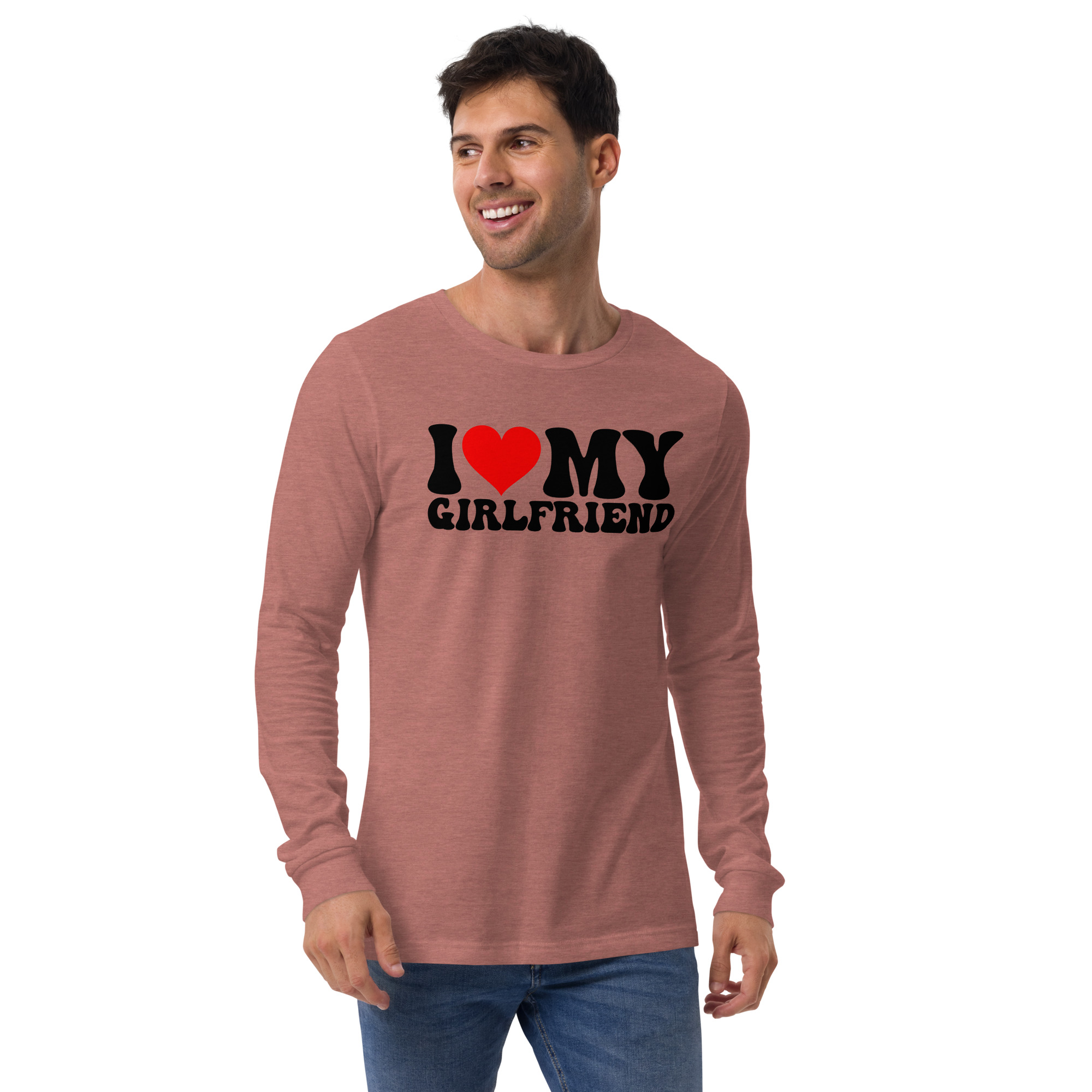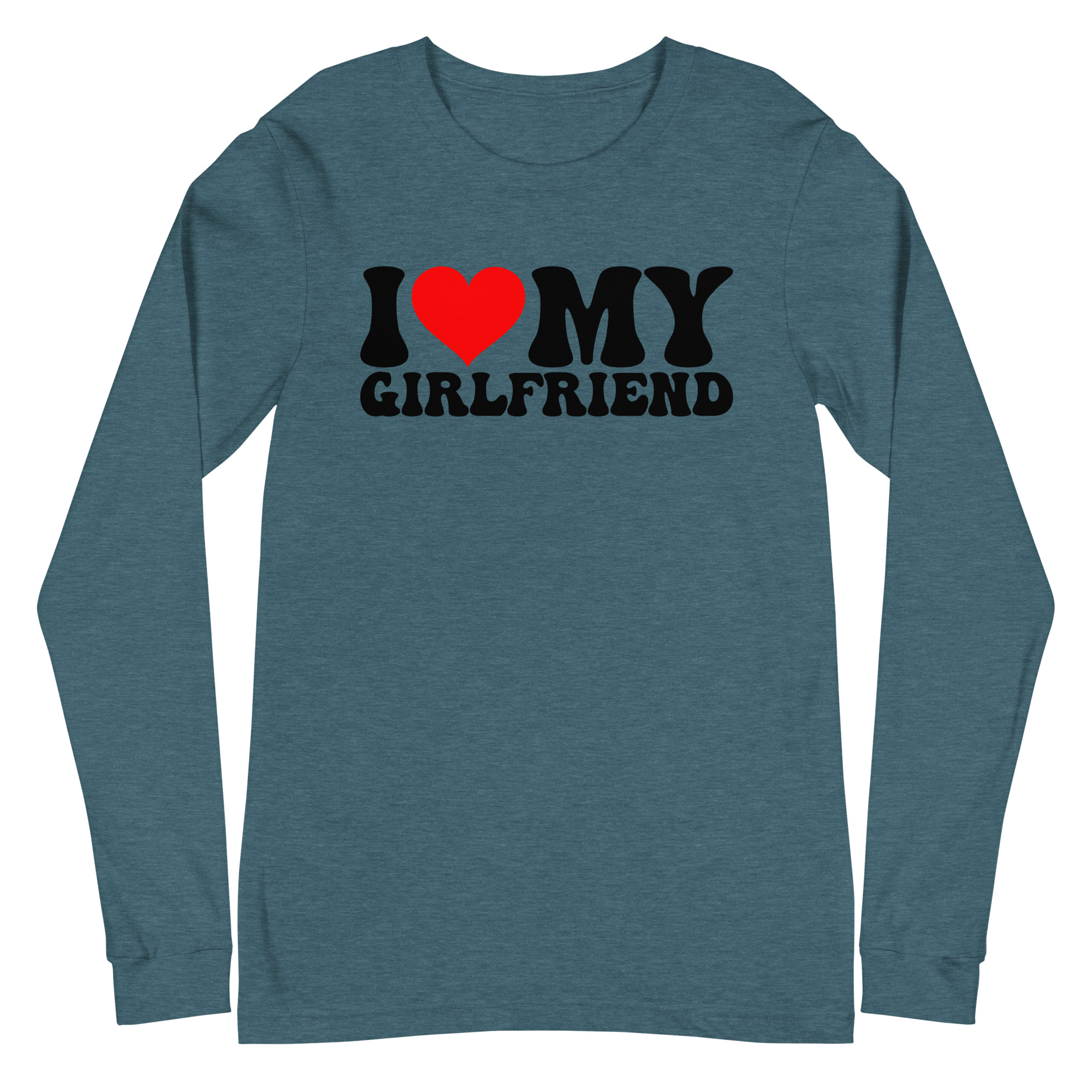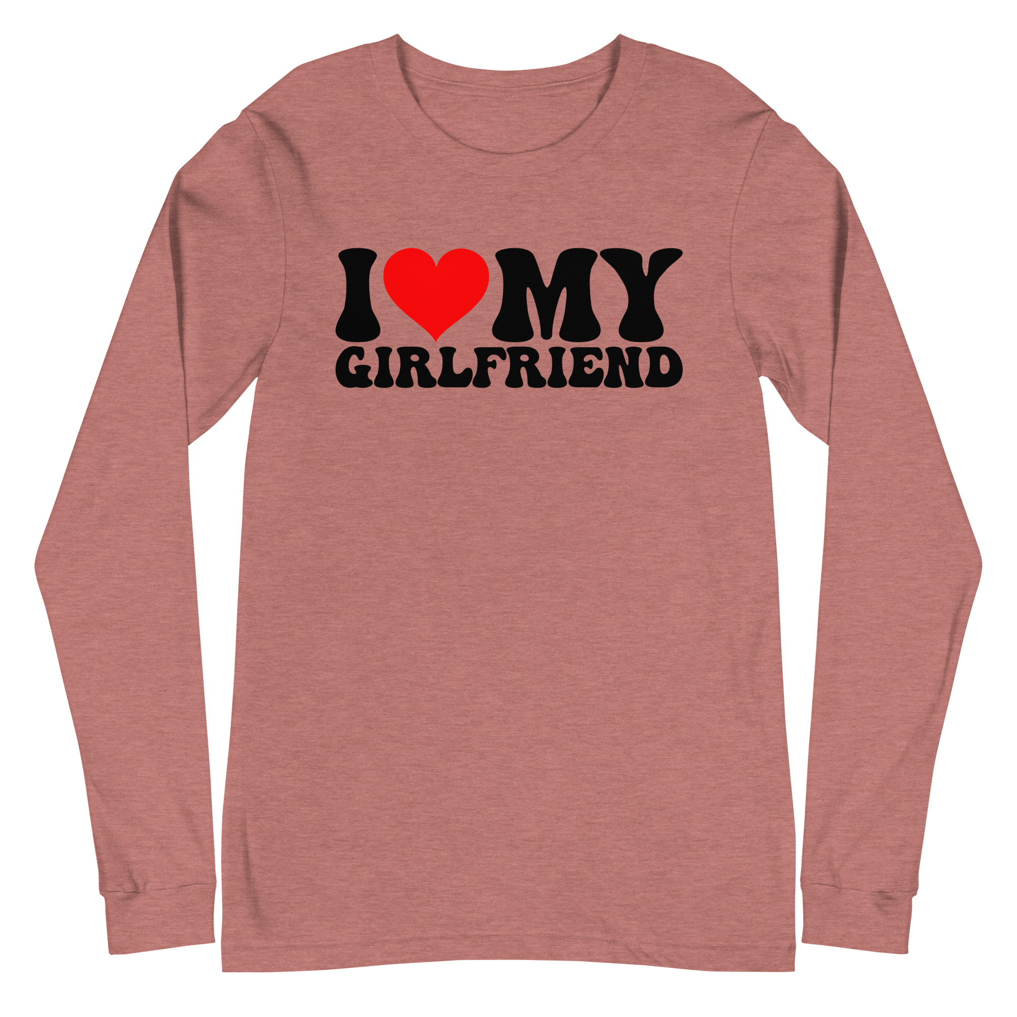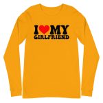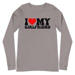 I love my Girlfriend, Valentine day Long Sleeve Tee. Enrich your wardrobe with a versatile long sleeve tee. For a casual look, combine it with your favorite jeans, and layer it with a button-up shirt, a zip-up hoodie, or a snazzy jacket. Dress it up with formal trousers or chinos to achieve a more professional look.