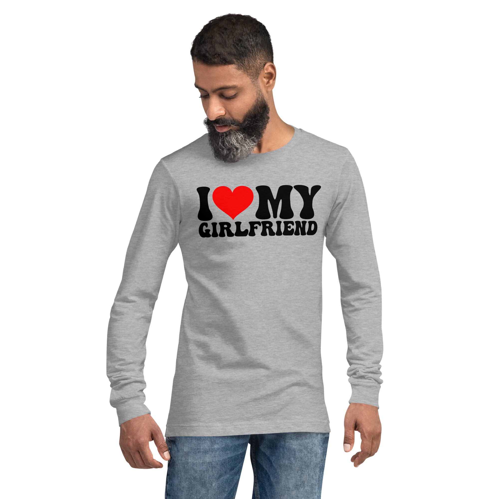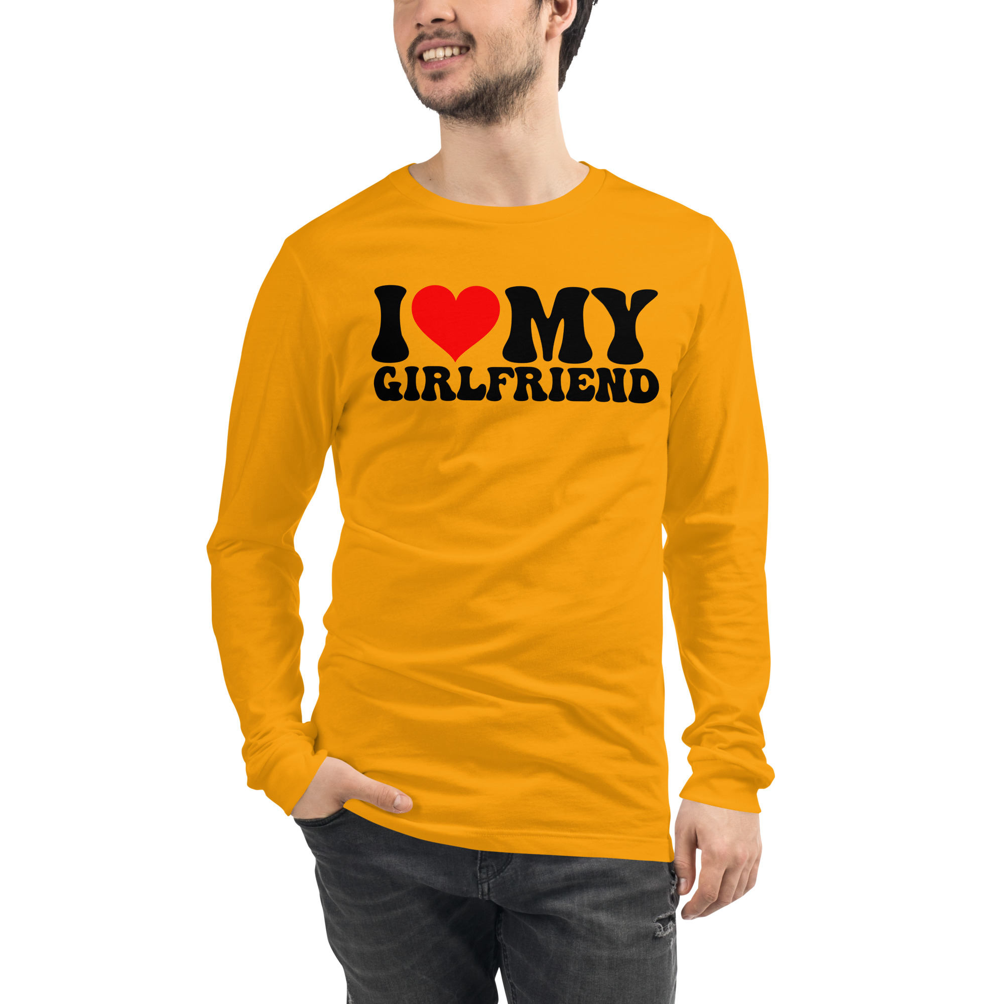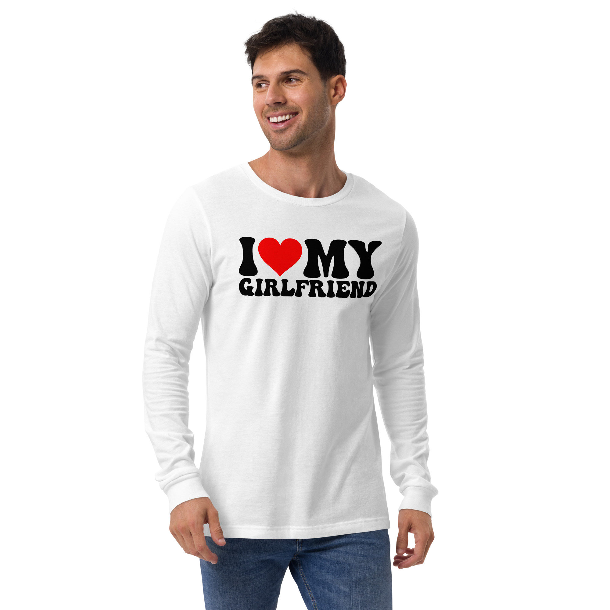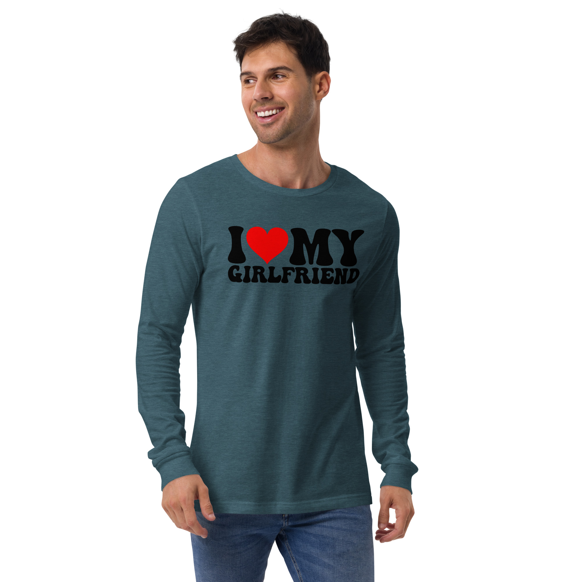 I love my Girlfriend, Valentine day Long Sleeve Tee. Enrich your wardrobe with a versatile long sleeve tee. For a casual look, combine it with your favorite jeans, and layer it with a button-up shirt, a zip-up hoodie, or a snazzy jacket. Dress it up with formal trousers or chinos to achieve a more professional look.