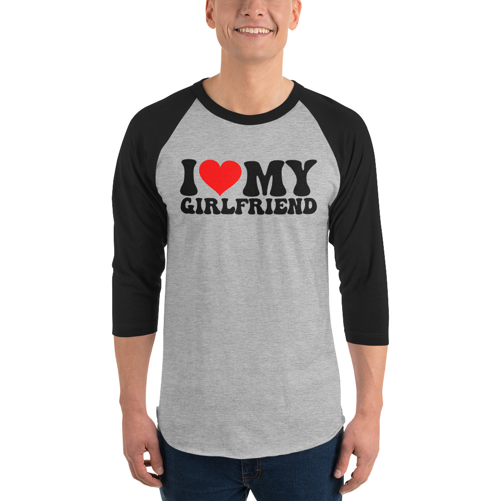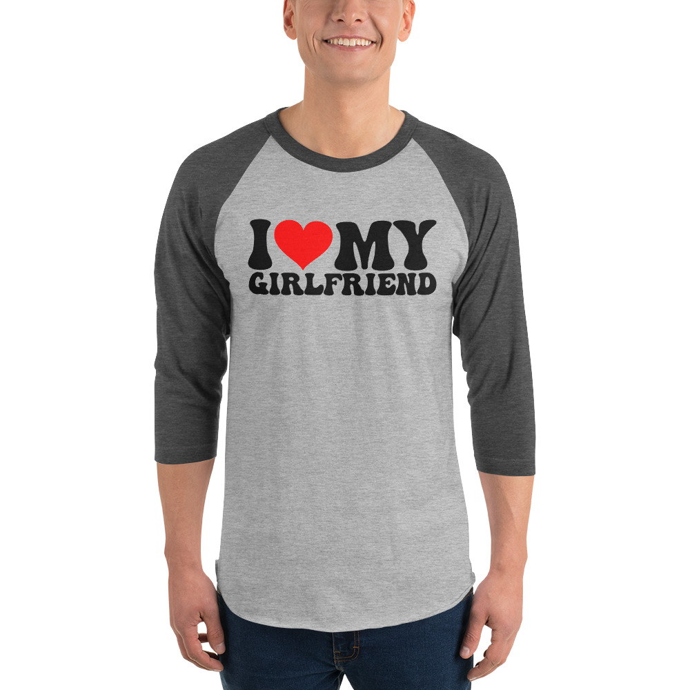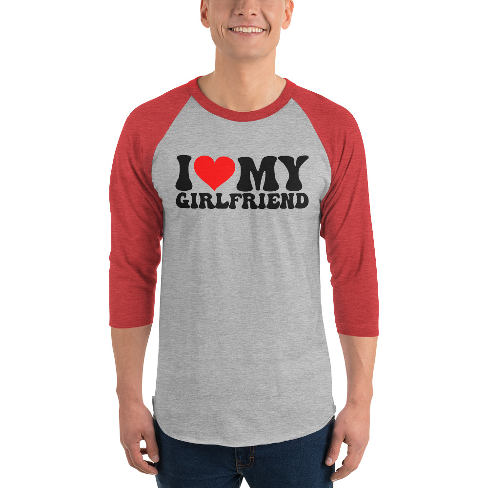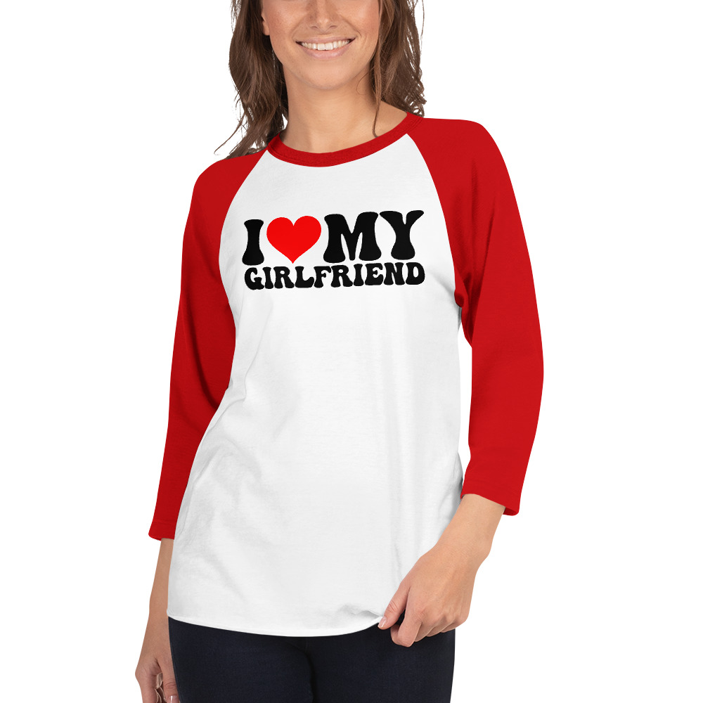 I love my girlfriend, Valentine day, 3/4 sleeve raglan shirt. A stylish spin on the classic baseball raglan. The combed cotton blend makes it super soft, comfortable, and lightweight.