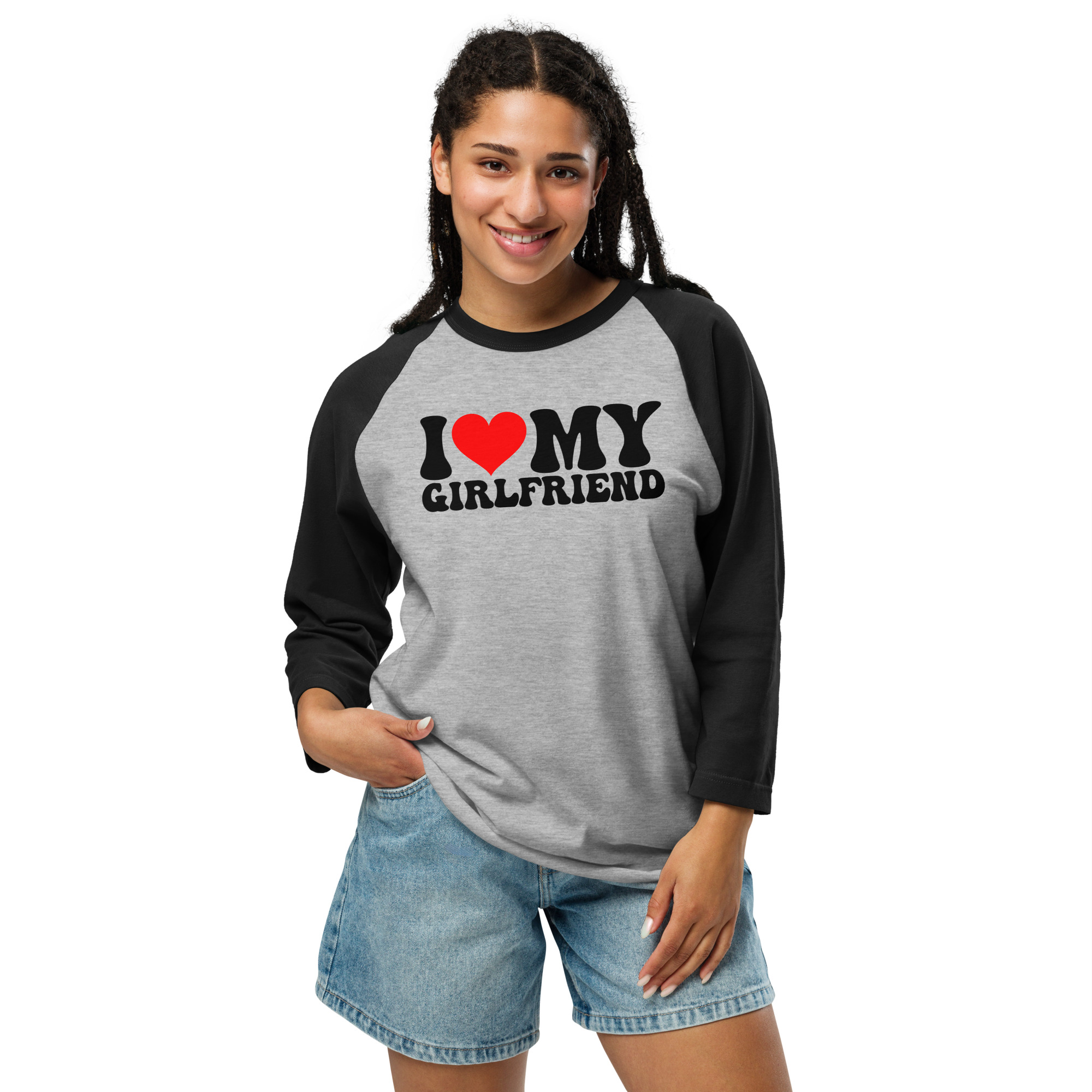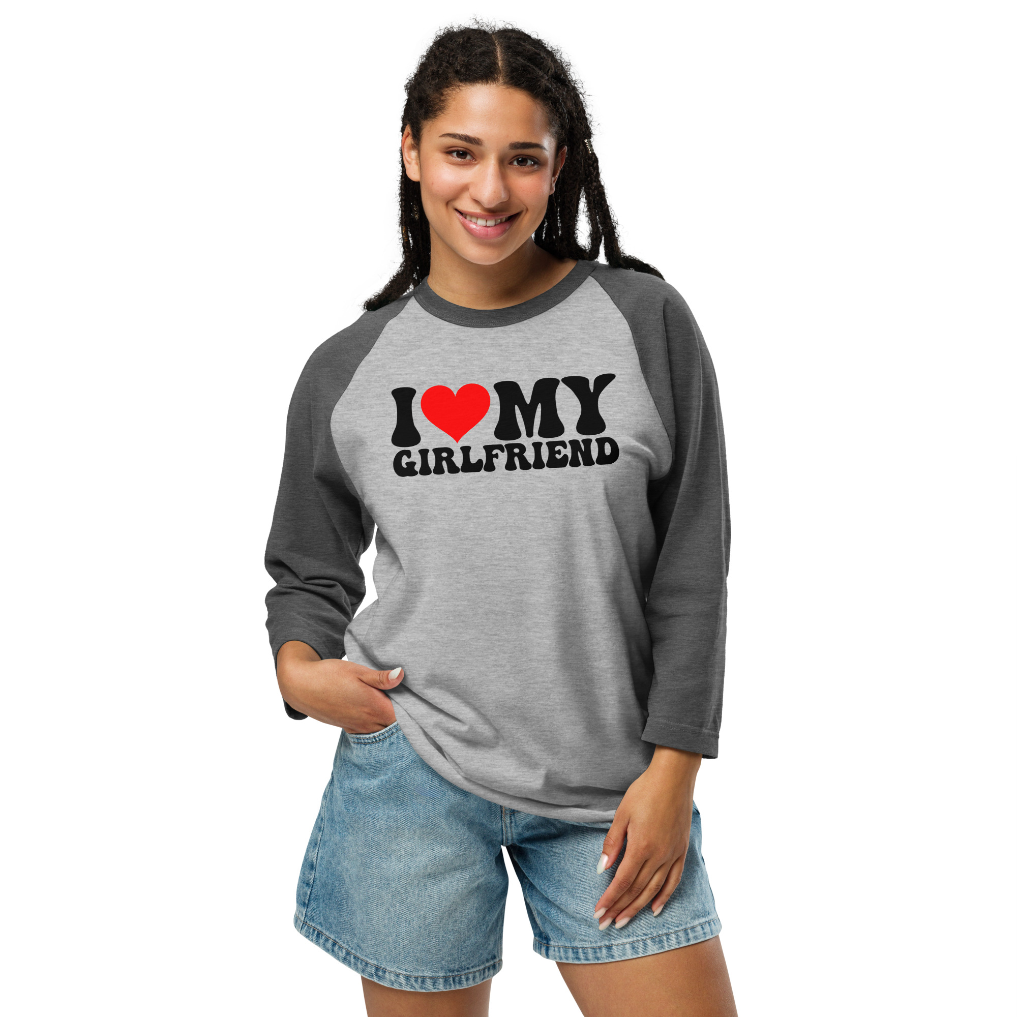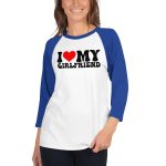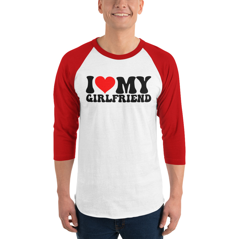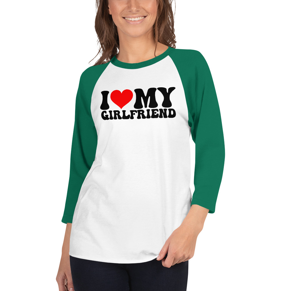 I love my girlfriend, Valentine day, 3/4 sleeve raglan shirt. A stylish spin on the classic baseball raglan. The combed cotton blend makes it super soft, comfortable, and lightweight.