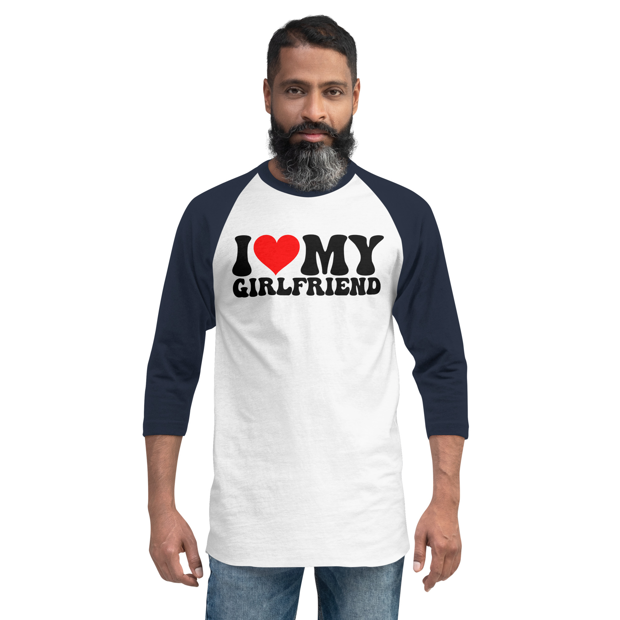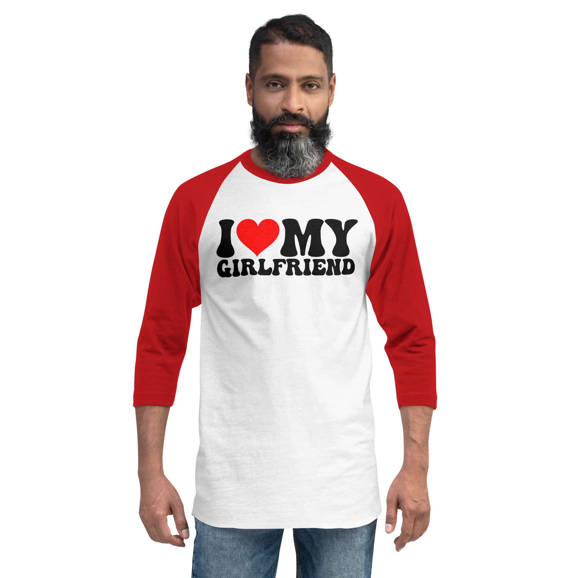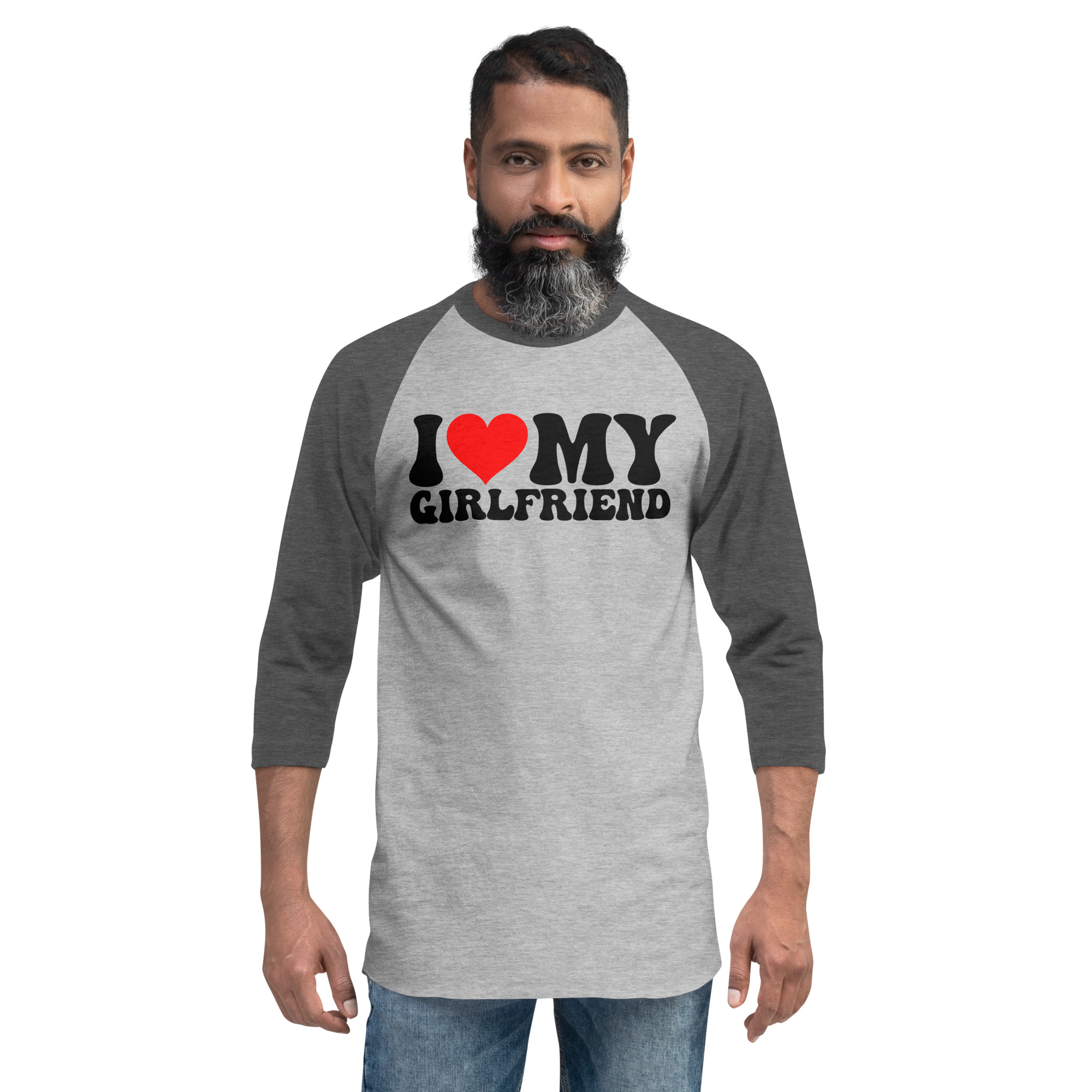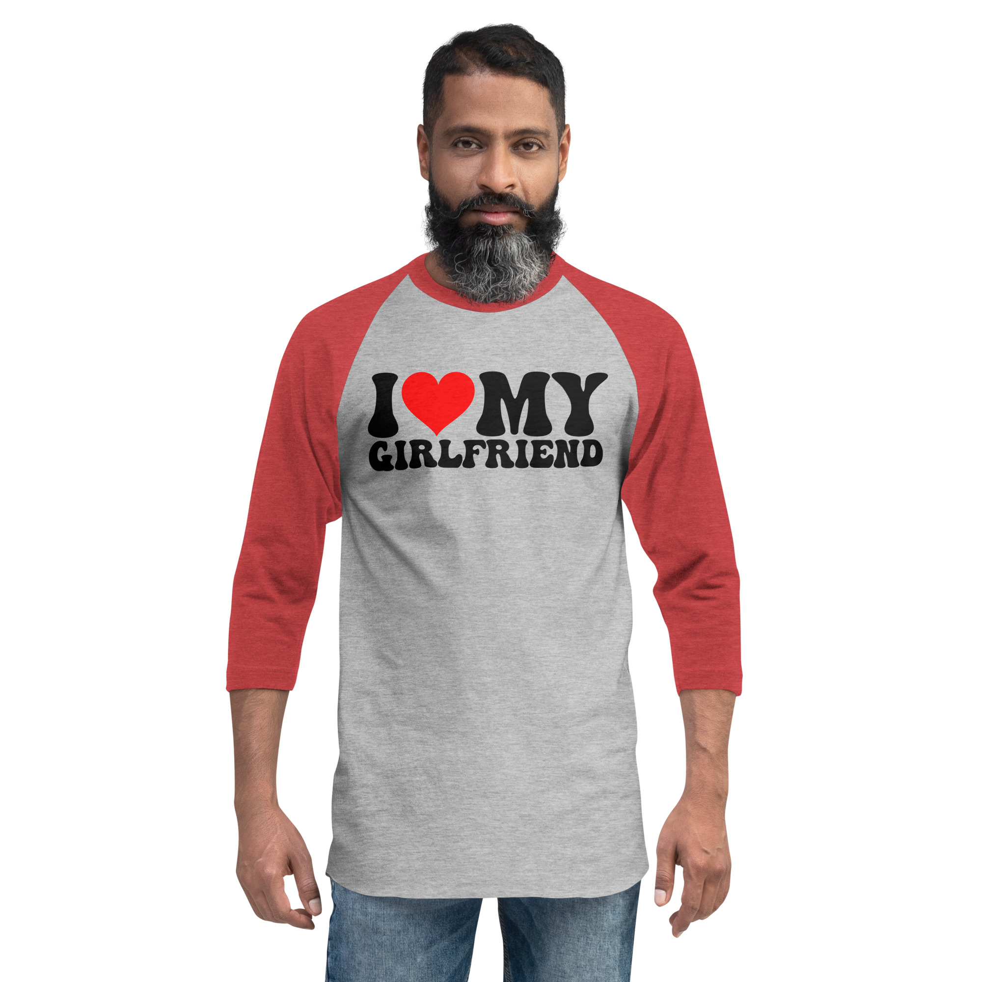I love my girlfriend, Valentine day, 3/4 sleeve raglan shirt. A stylish spin on the classic baseball raglan. The combed cotton blend makes it super soft, comfortable, and lightweight.