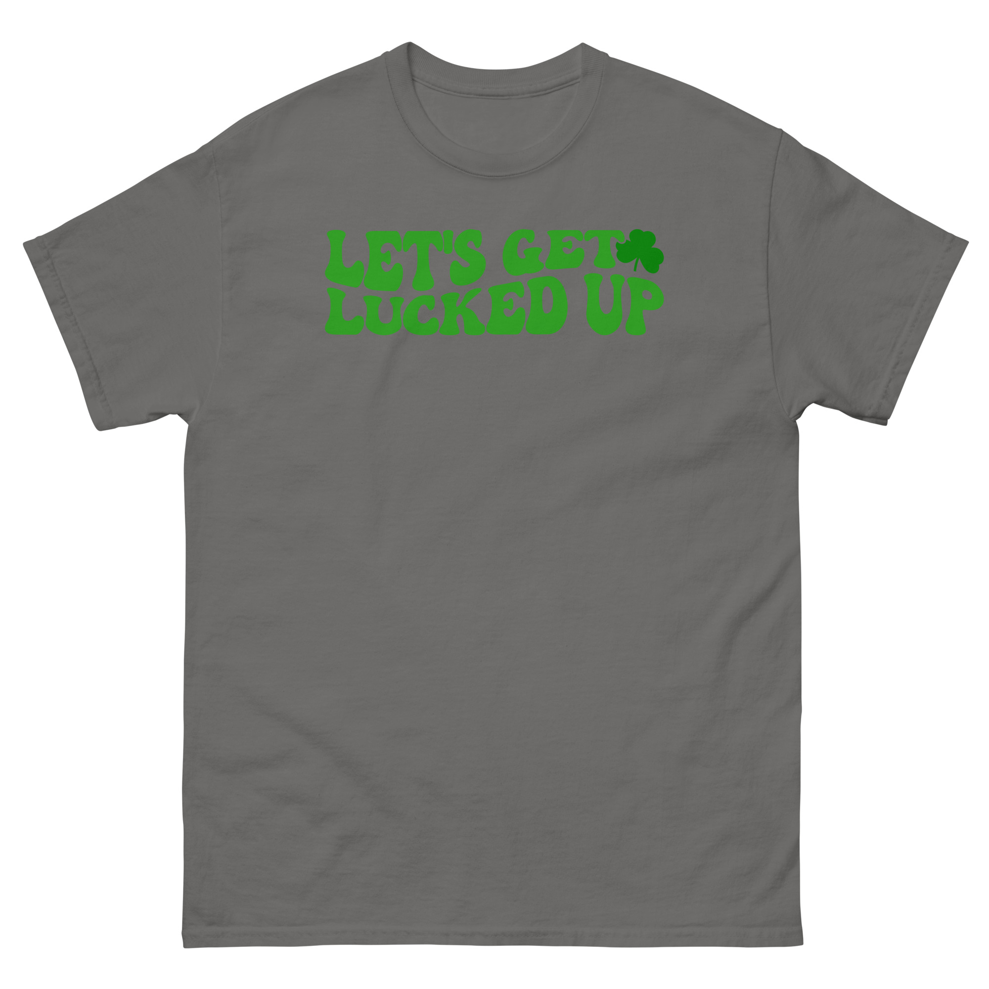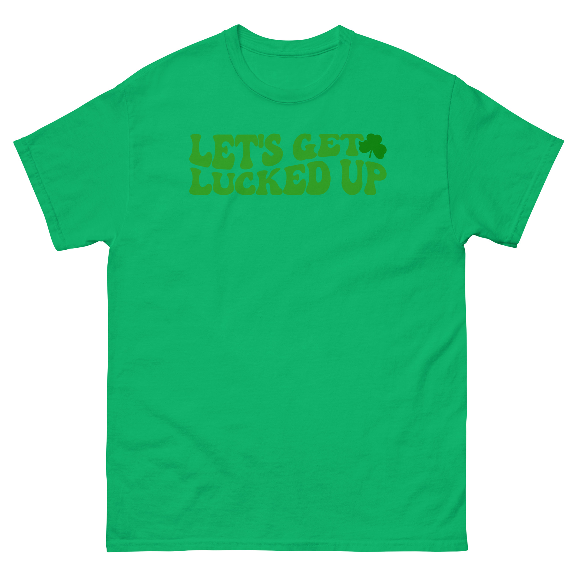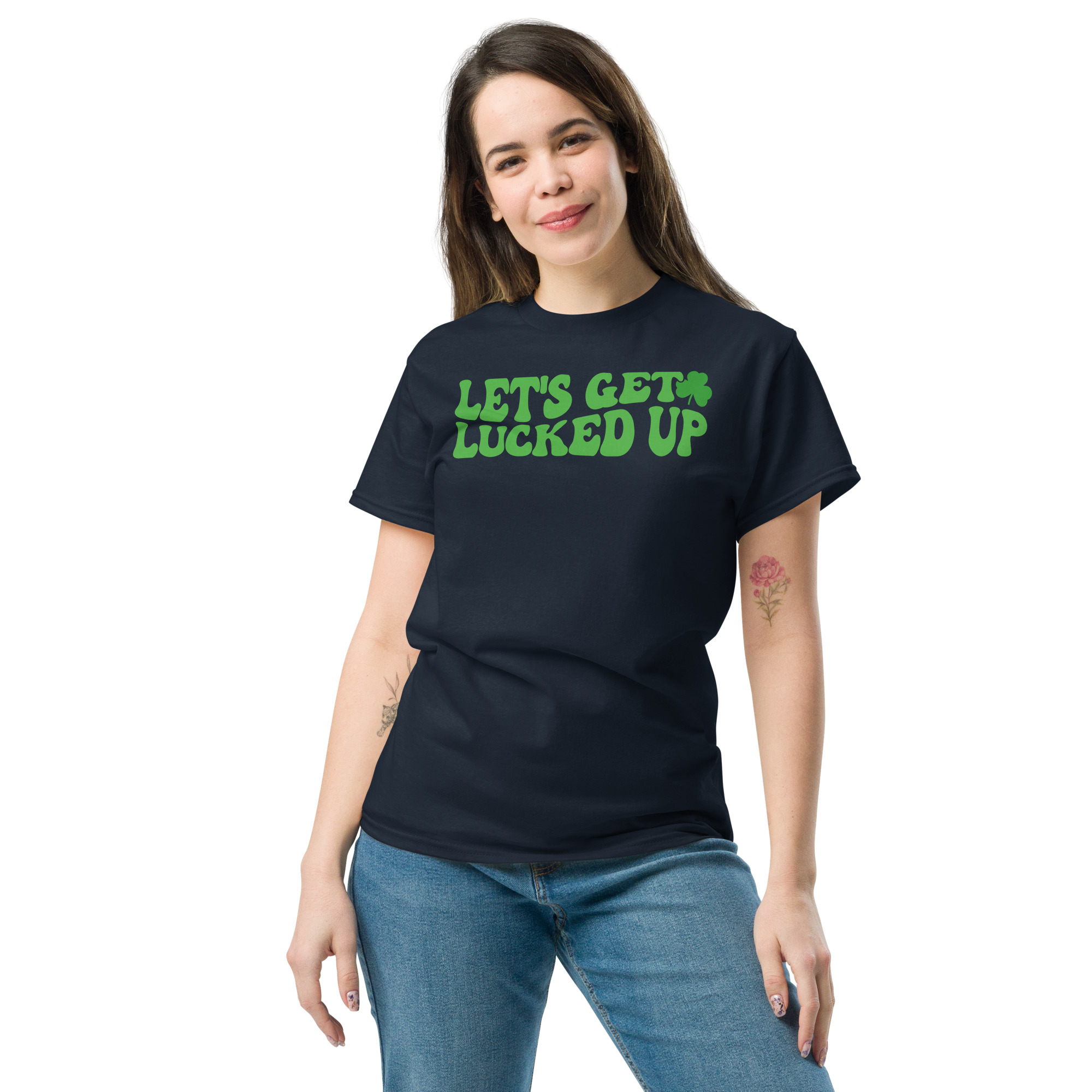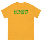 Let’s gets lucked up, St. Patrick’s Day party shirt, Unisex classic tee. The 100% cotton unisex classic tee will help you land a more structured look. It sits nicely, maintains sharp lines around the edges, and goes perfectly with layered streetwear outfits. Plus, it’s extra trendy now!