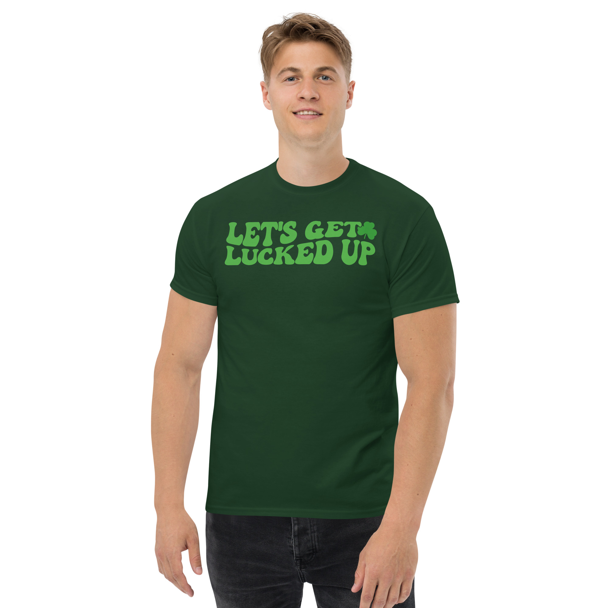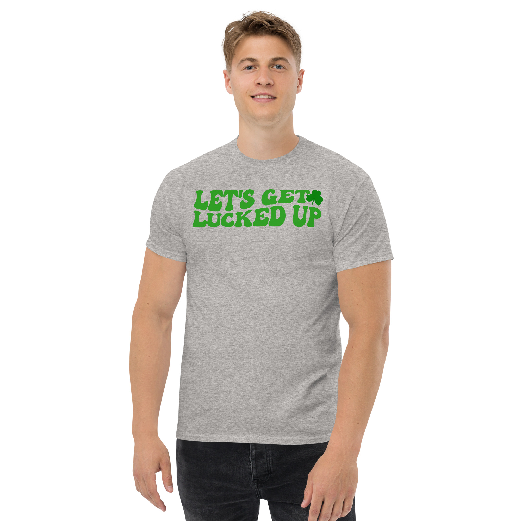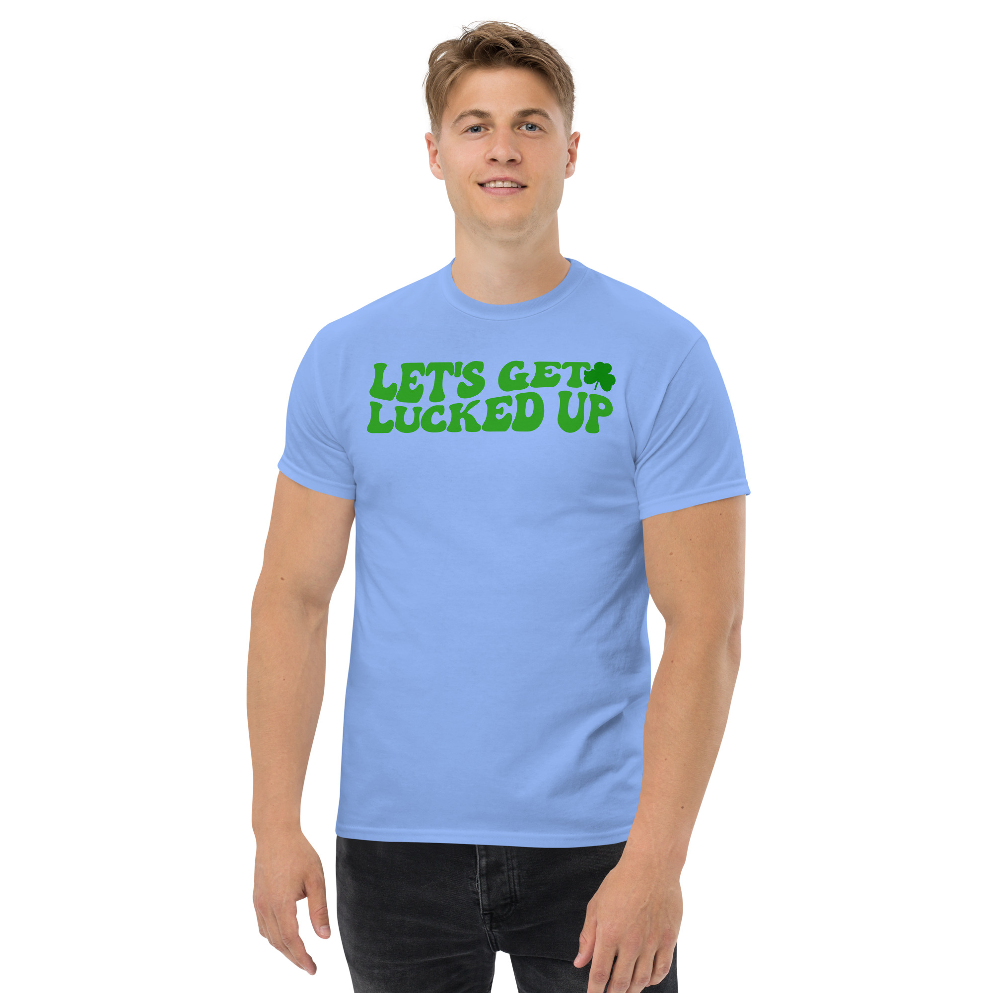Let’s gets lucked up, St. Patrick’s Day party shirt, Unisex classic tee. The 100% cotton unisex classic tee will help you land a more structured look. It sits nicely, maintains sharp lines around the edges, and goes perfectly with layered streetwear outfits. Plus, it’s extra trendy now!