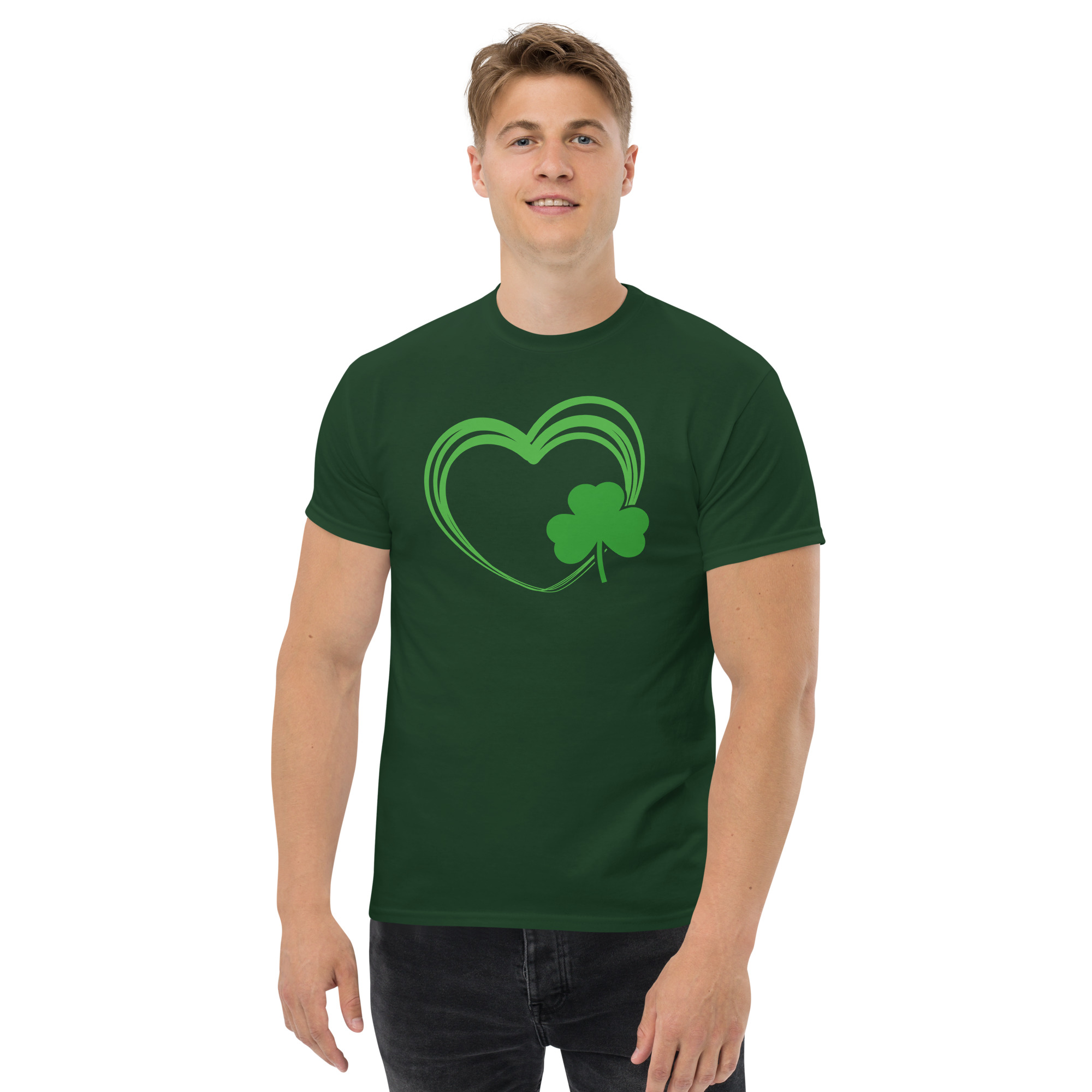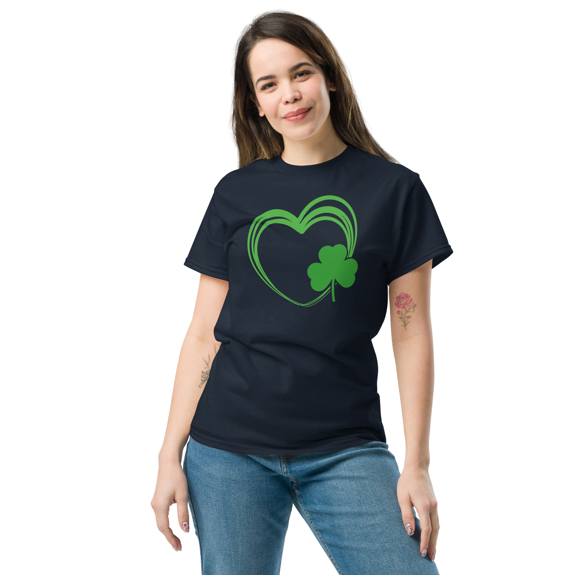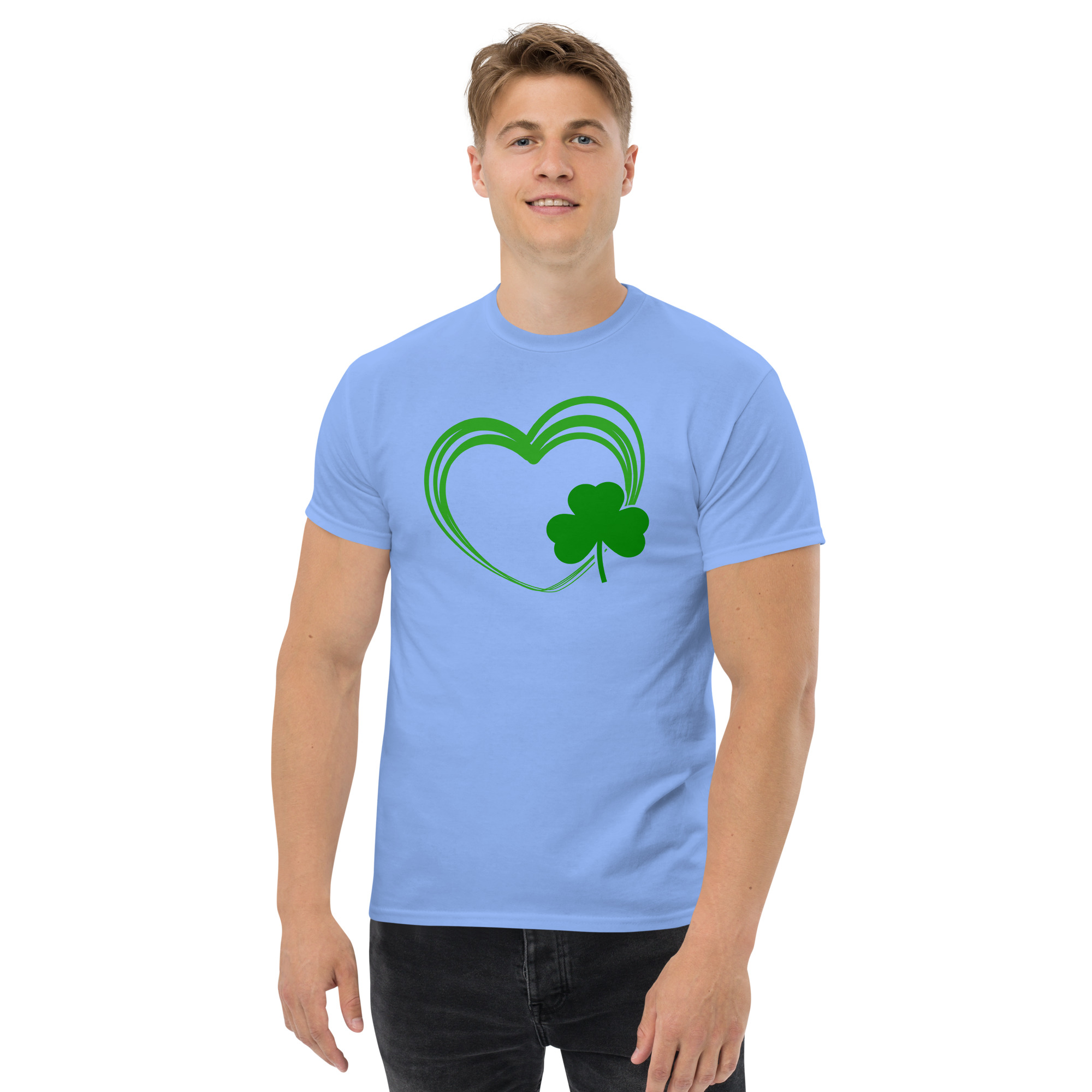 Love Heart clover, Paddys pub, St. Patrick’s Day Unisex classic tee. The 100% cotton unisex classic tee will help you land a more structured look. It sits nicely, maintains sharp lines around the edges, and goes perfectly with layered streetwear outfits. Plus, it’s extra trendy now!