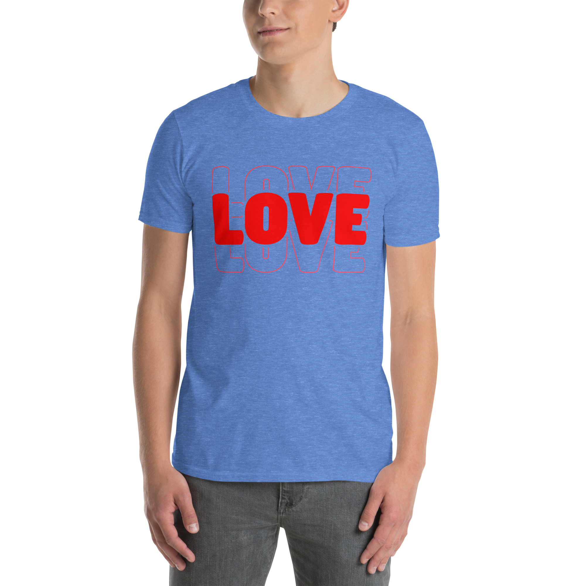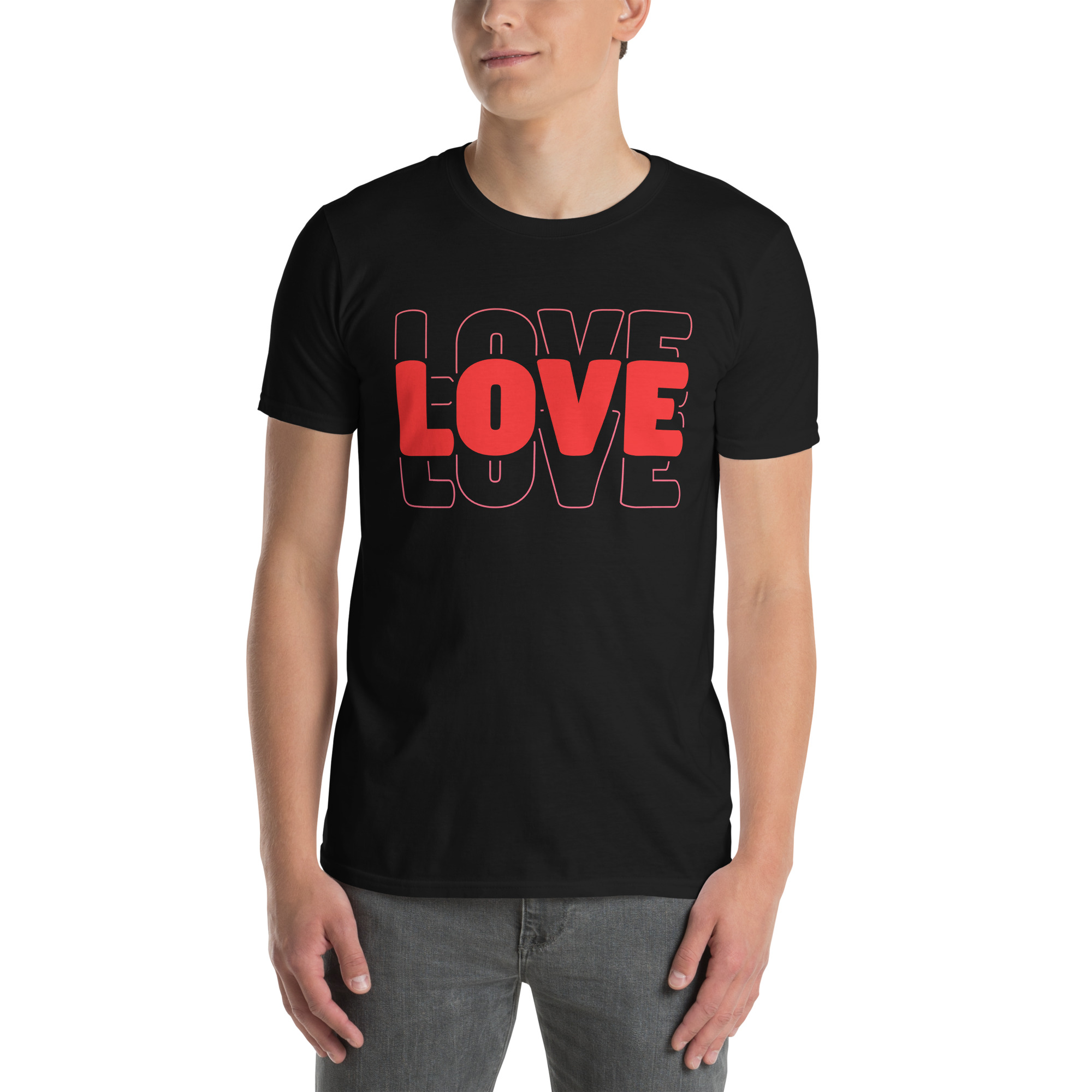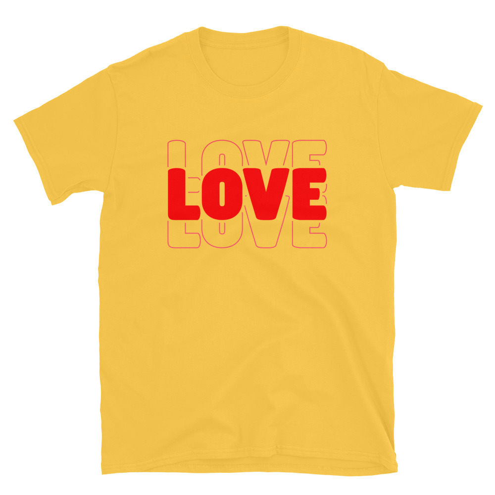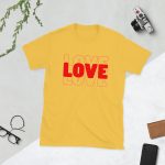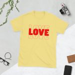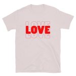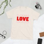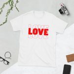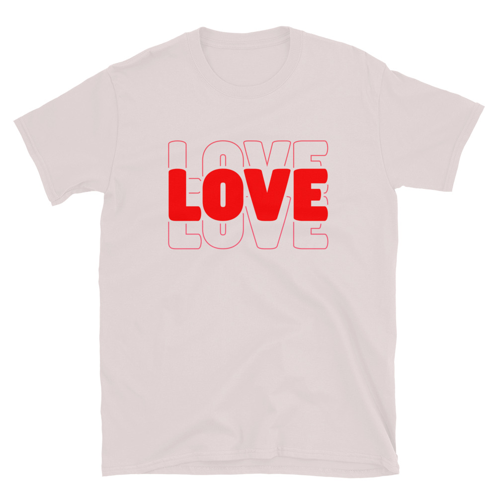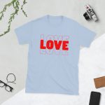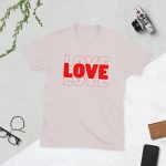 Love Text, Outlined text, Valentine day Short-Sleeve Unisex T-Shirt. You’ve now found the staple t-shirt of your wardrobe. It’s made of 100% ring-spun cotton and is soft and comfy. The double stitching on the neckline and sleeves add more durability to what is sure to be a favorite!
