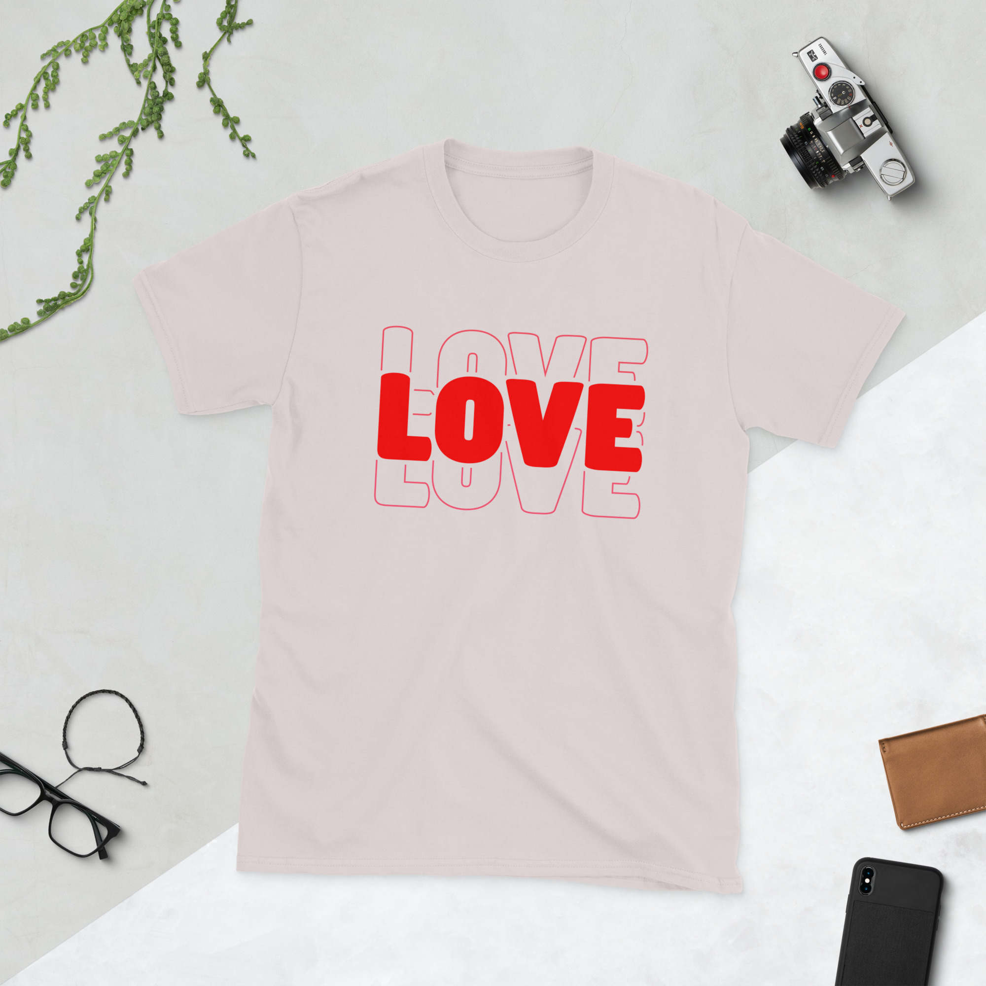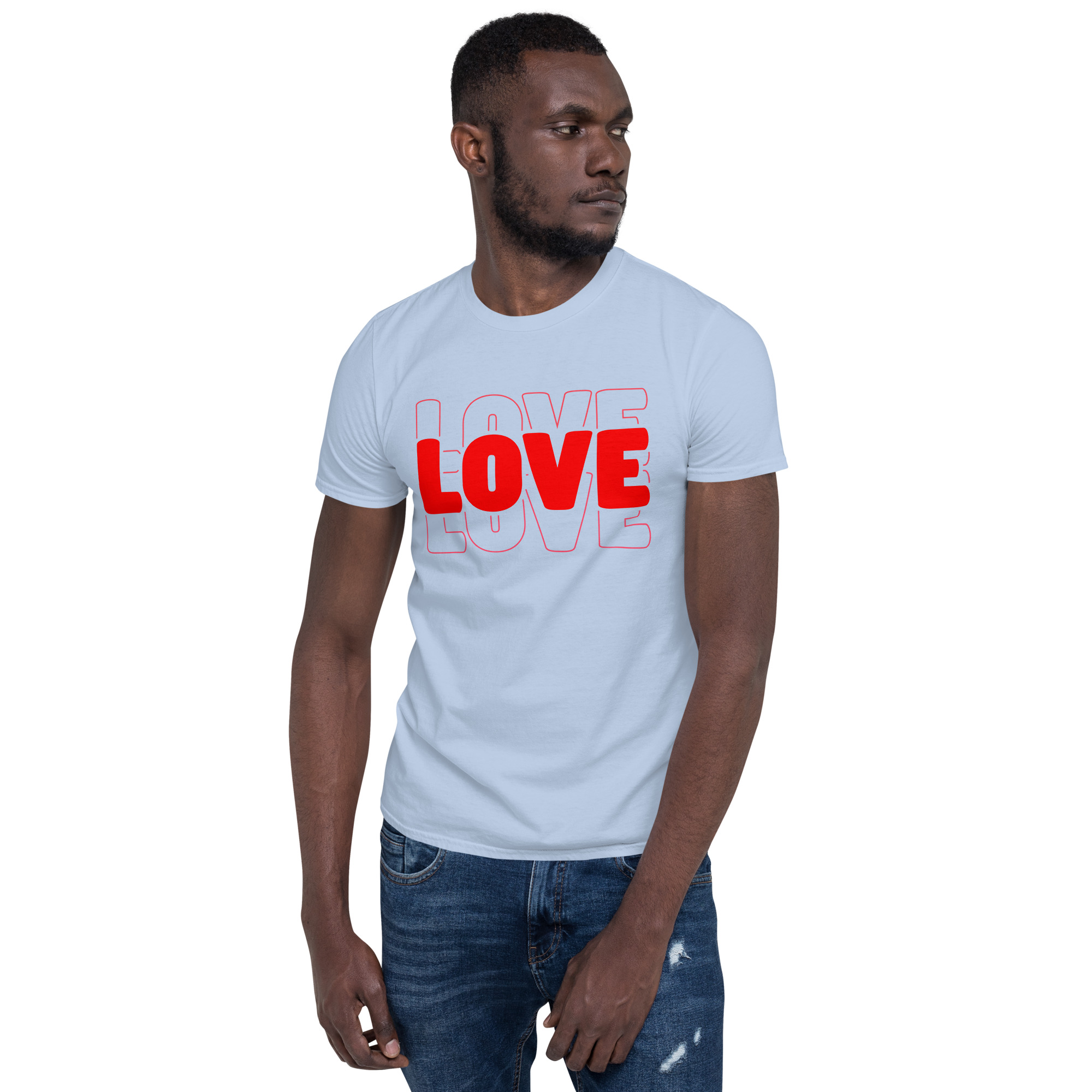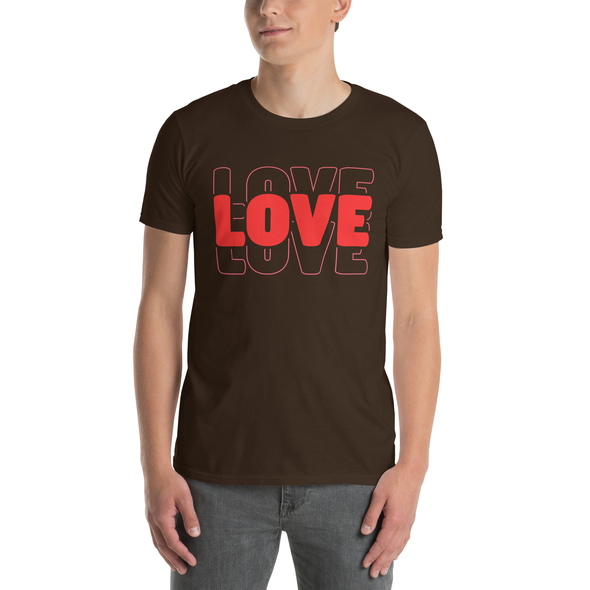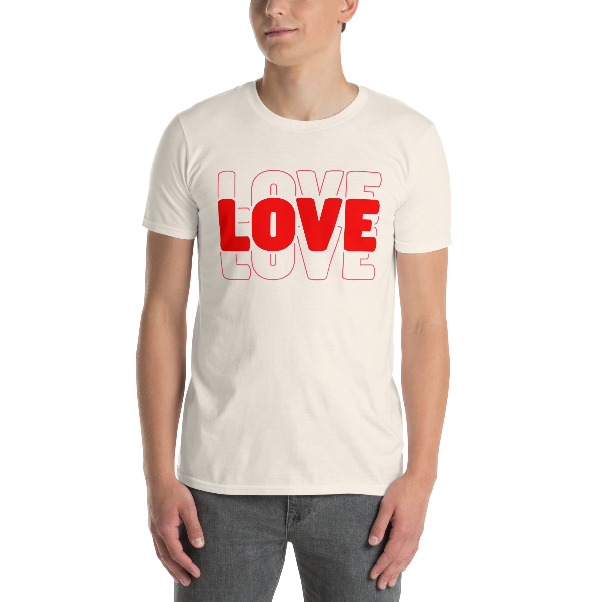 Love Text, Outlined text, Valentine day Short-Sleeve Unisex T-Shirt. You’ve now found the staple t-shirt of your wardrobe. It’s made of 100% ring-spun cotton and is soft and comfy. The double stitching on the neckline and sleeves add more durability to what is sure to be a favorite!