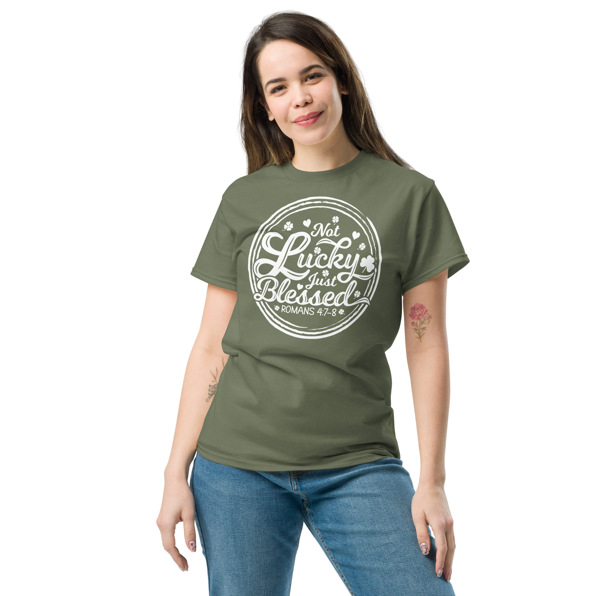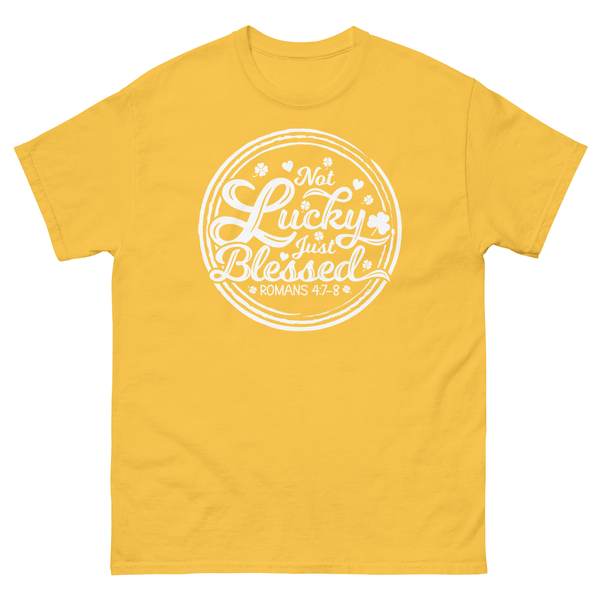 Lucky and Blessed, Retro vintage St. Patrick’s Day Unisex classic tee. The 100% cotton unisex classic tee will help you land a more structured look. It sits nicely, maintains sharp lines around the edges, and goes perfectly with layered streetwear outfits. Plus, it’s extra trendy now!