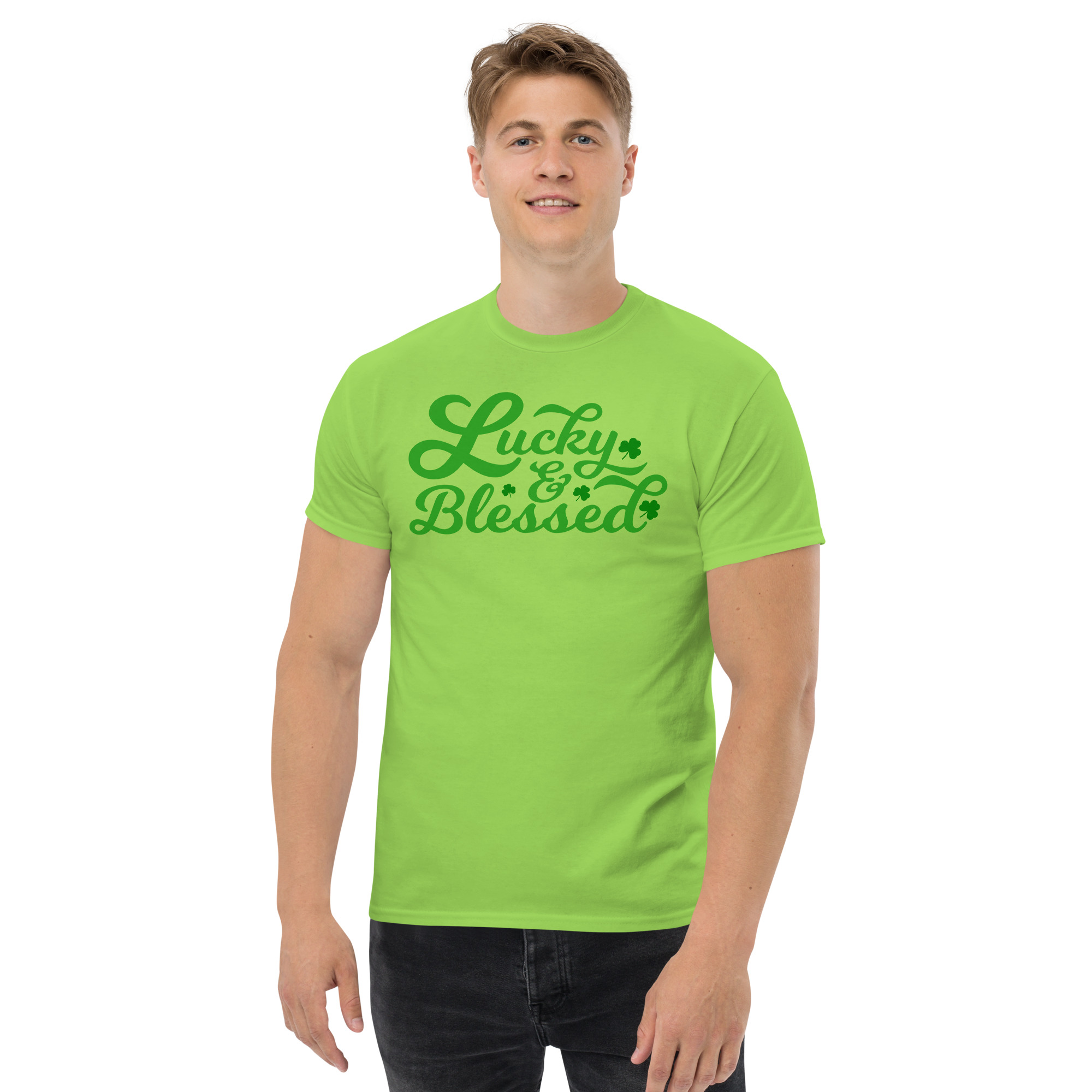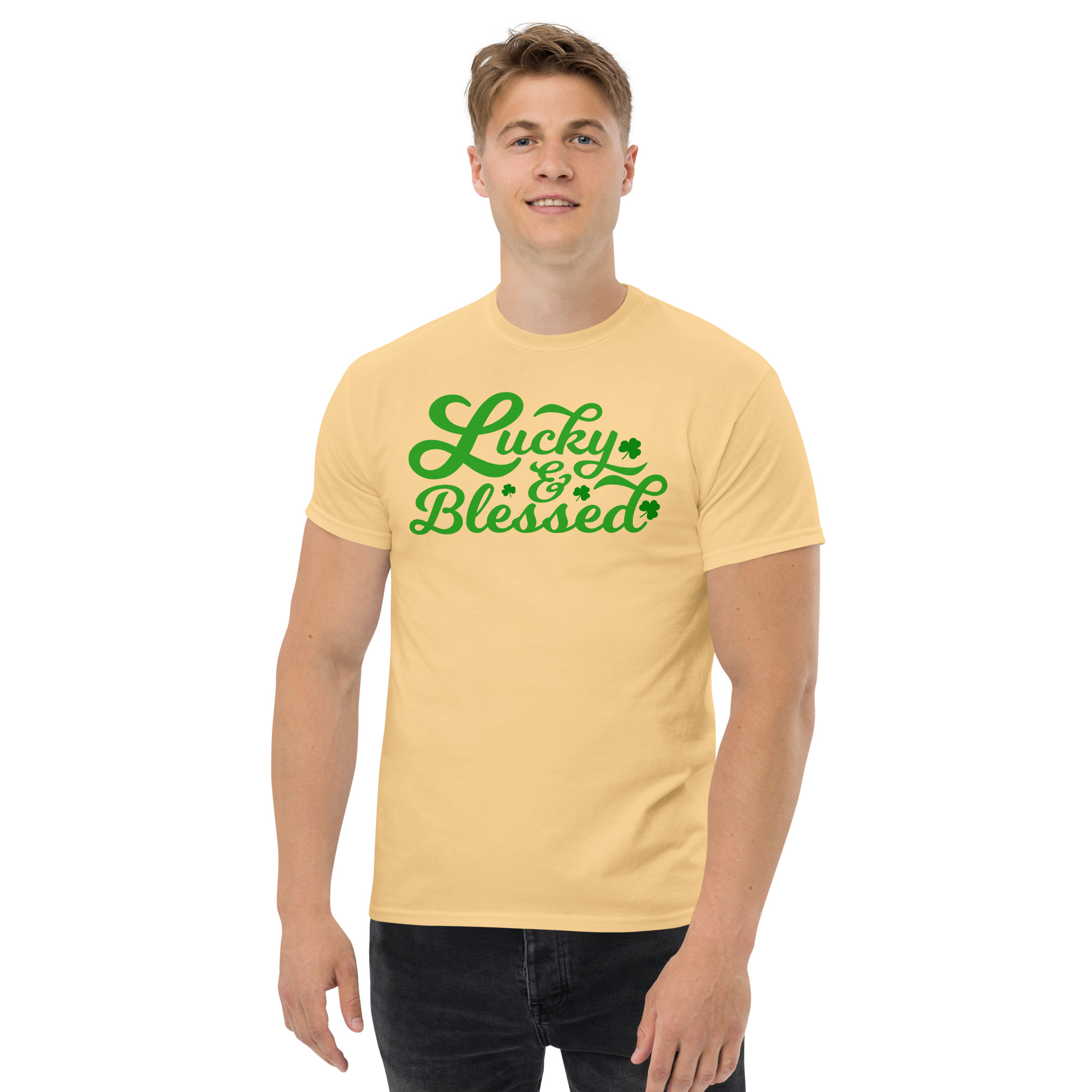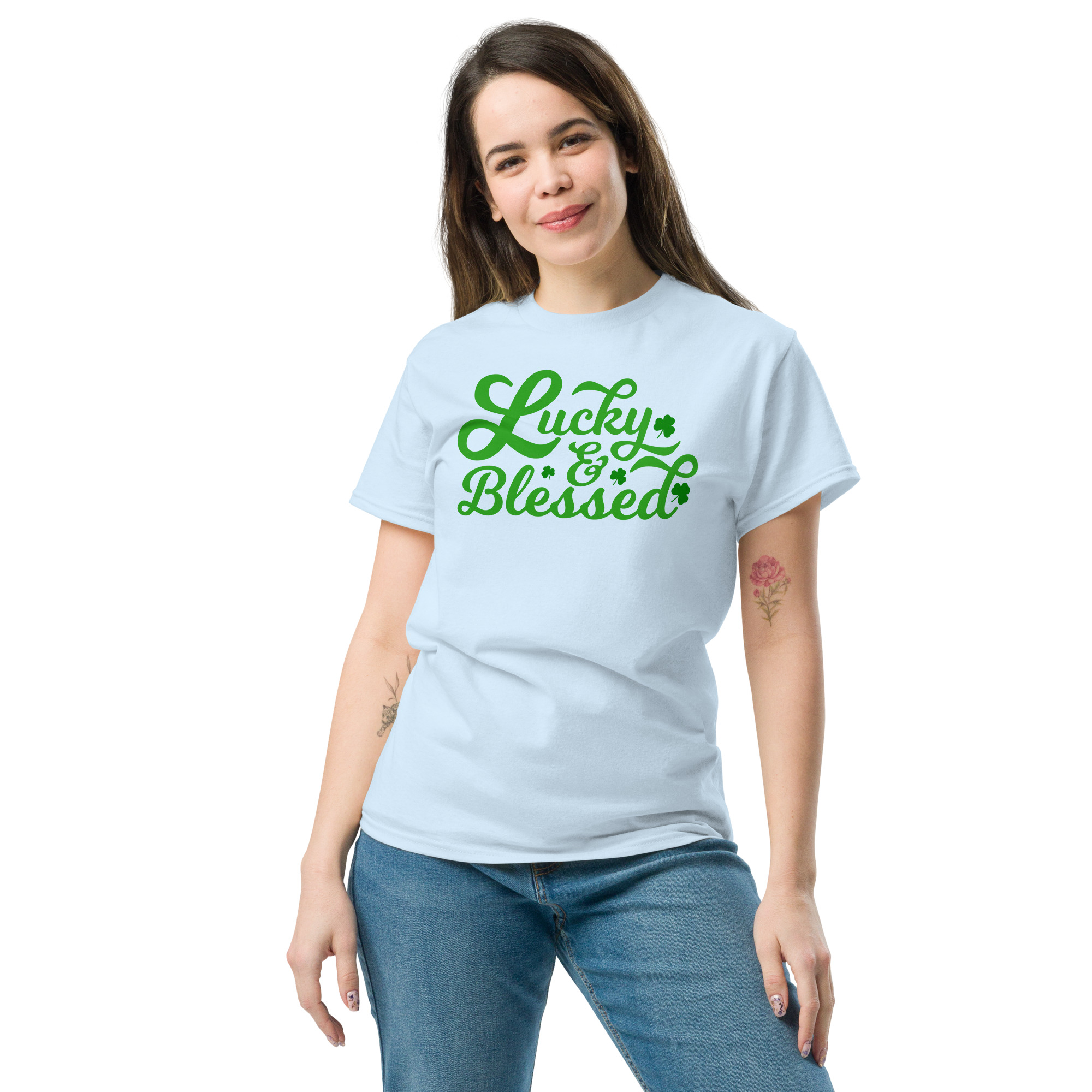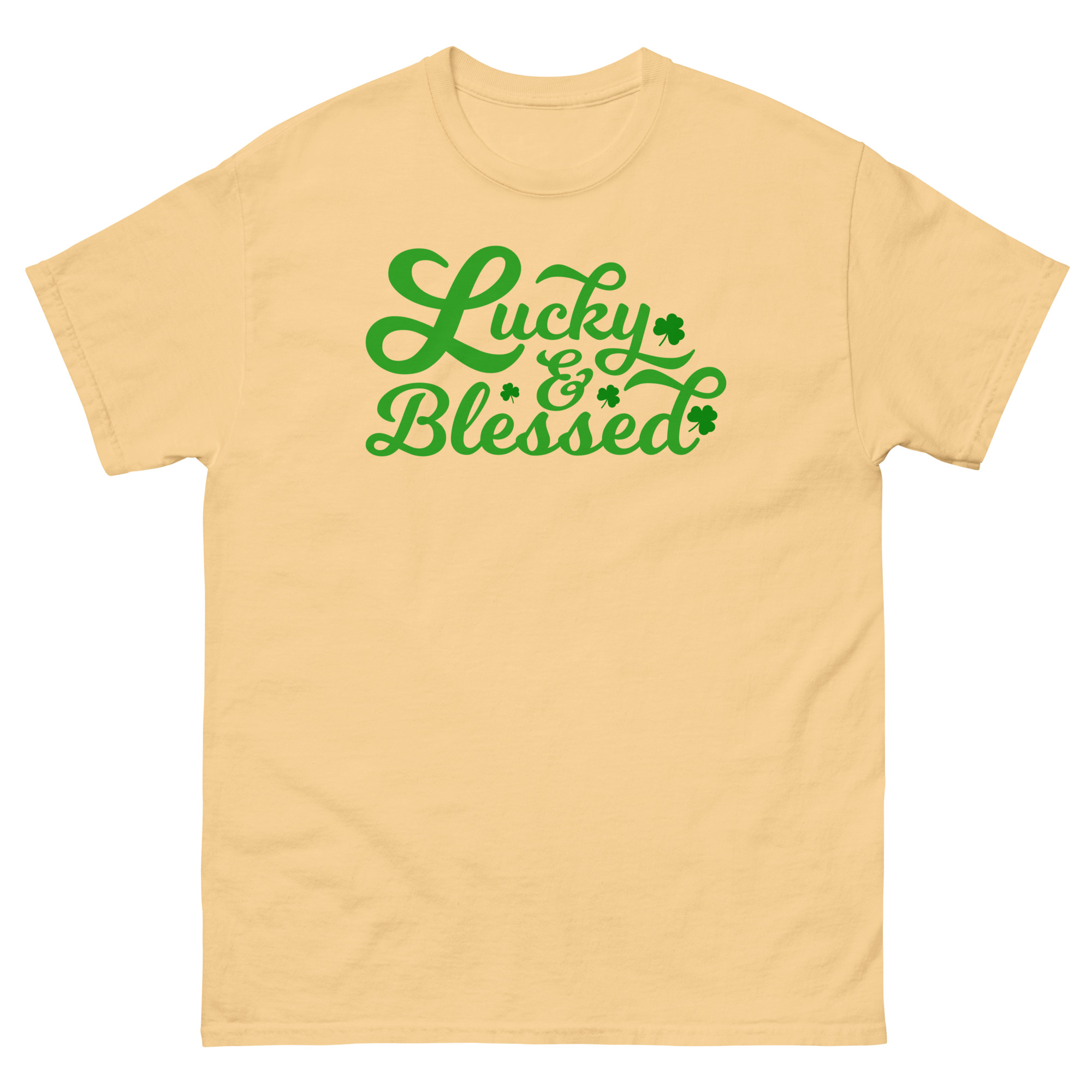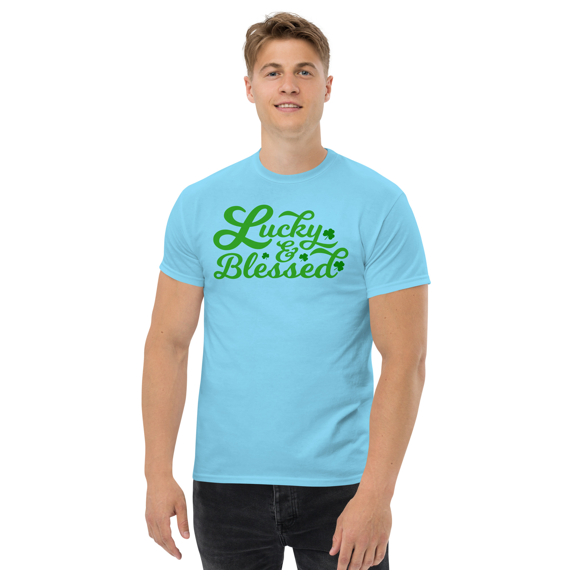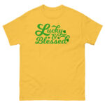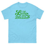 Lucky and Blessed, St. Patrick’s Day, Paddys pub, Irish girl, Unisex classic tee. The 100% cotton unisex classic tee will help you land a more structured look. It sits nicely, maintains sharp lines around the edges, and goes perfectly with layered streetwear outfits. Plus, it’s extra trendy now!