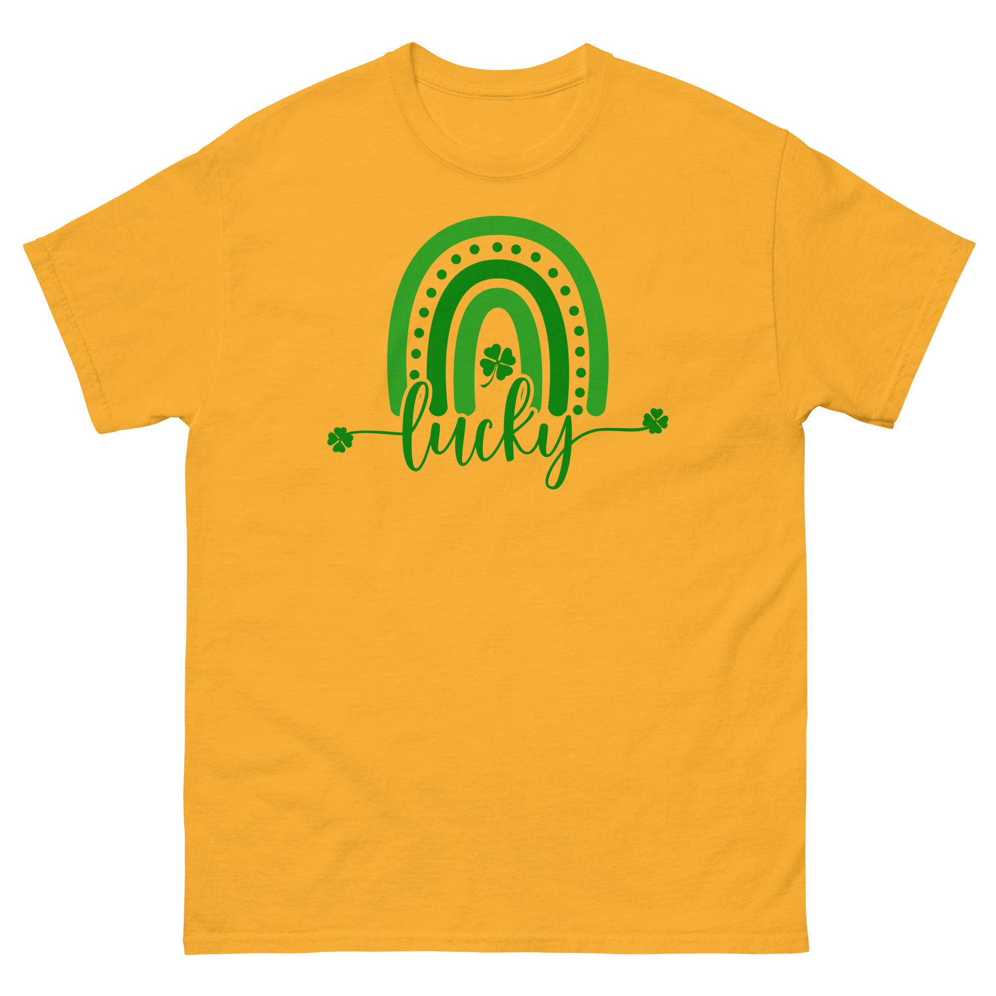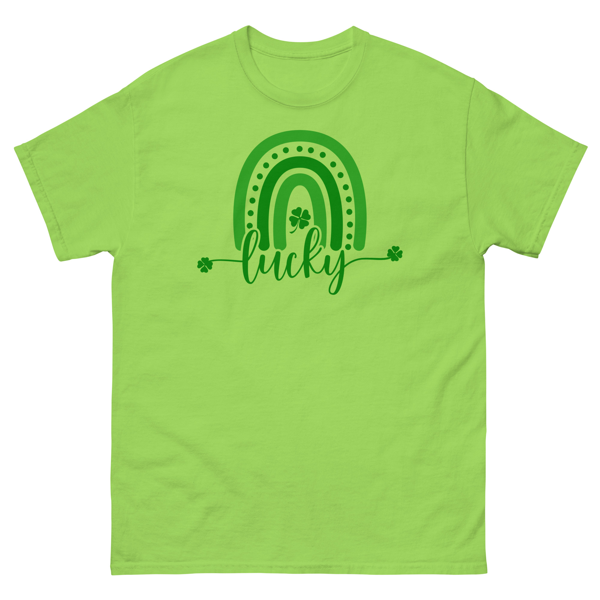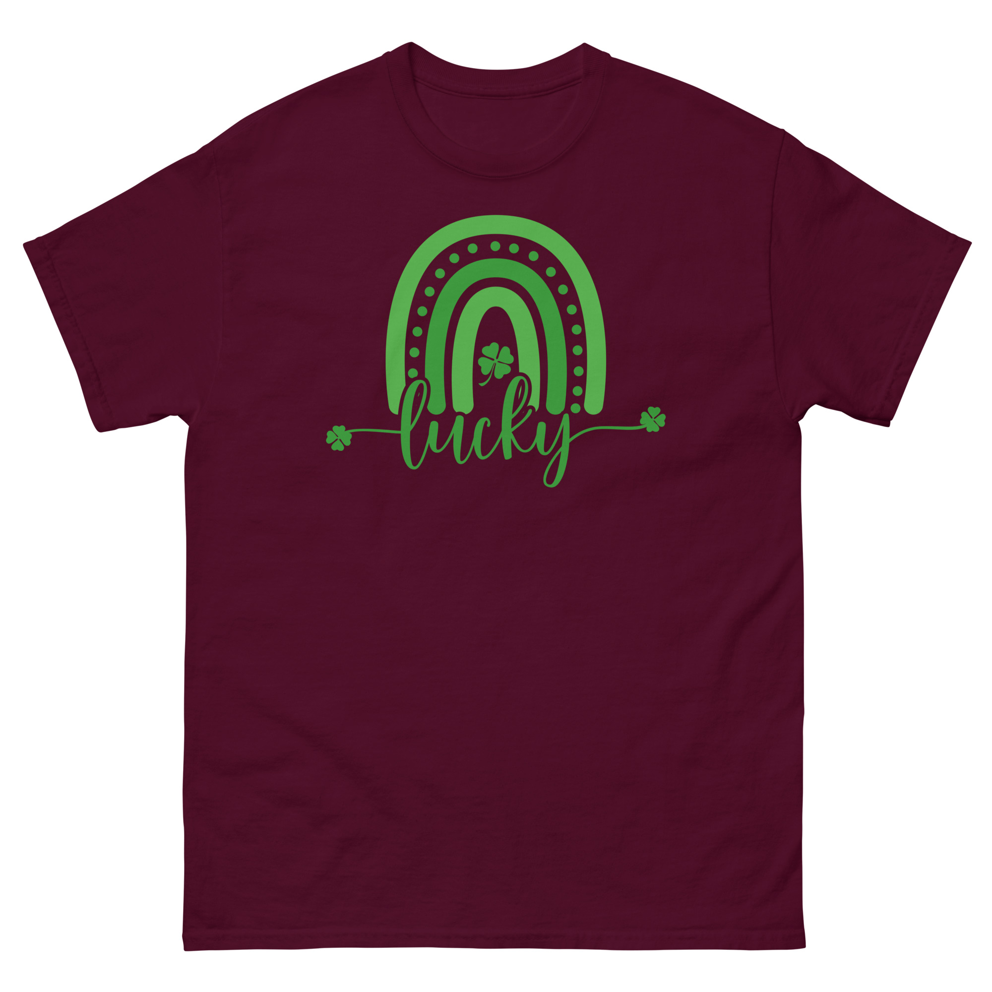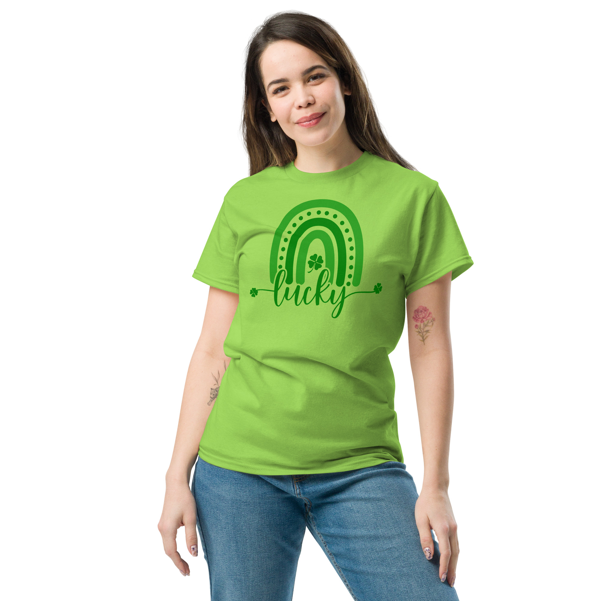Lucky Boho rainbow, St. Patrick’s Day, Unisex classic tee. The 100% cotton unisex classic tee will help you land a more structured look. It sits nicely, maintains sharp lines around the edges, and goes perfectly with layered streetwear outfits. Plus, it’s extra trendy now!