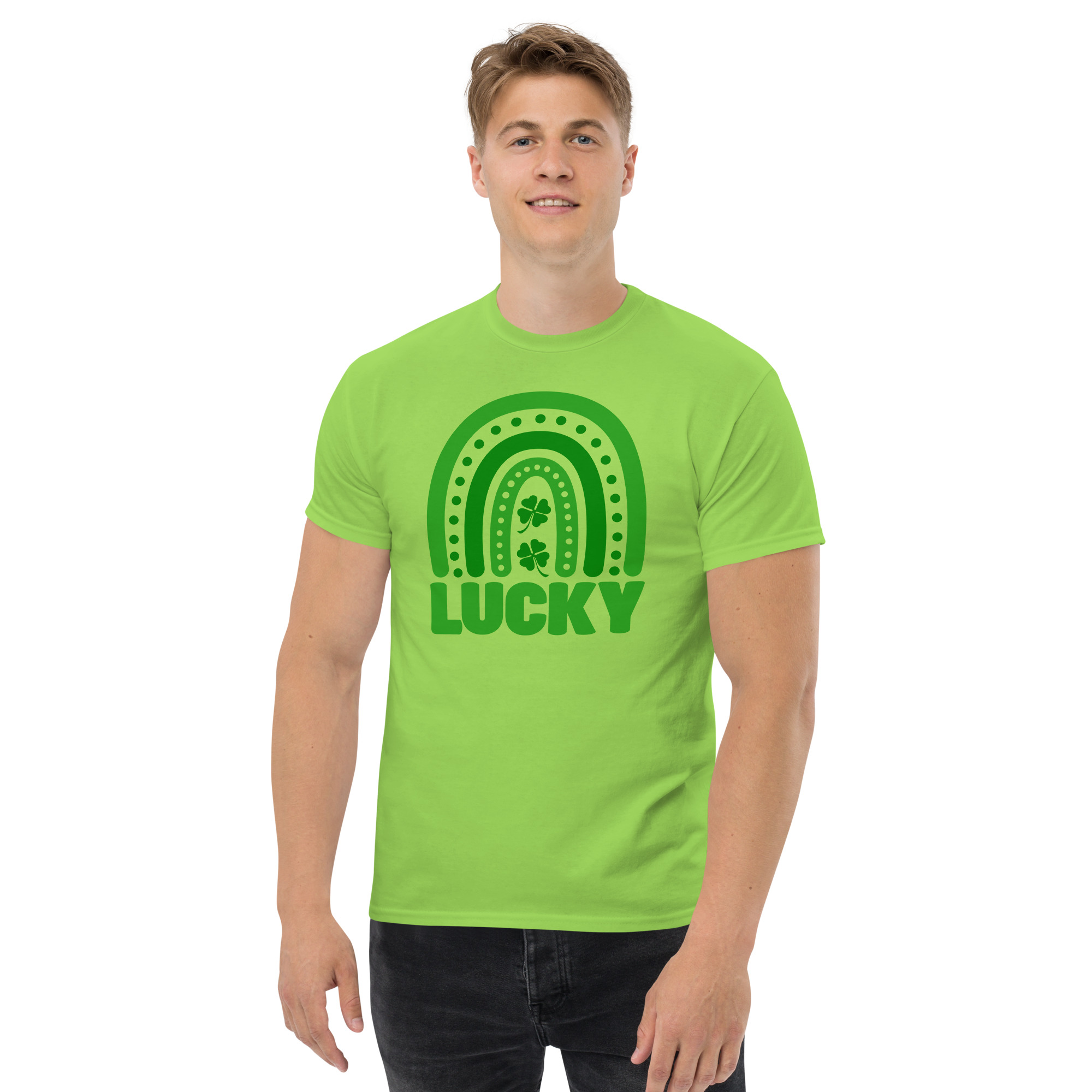 Lucky Boho Rainbow t-shirt, St. Patrick’s Day Unisex classic tee. The 100% cotton unisex classic tee will help you land a more structured look. It sits nicely, maintains sharp lines around the edges, and goes perfectly with layered streetwear outfits. Plus, it’s extra trendy now!