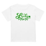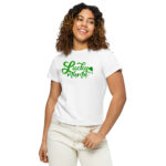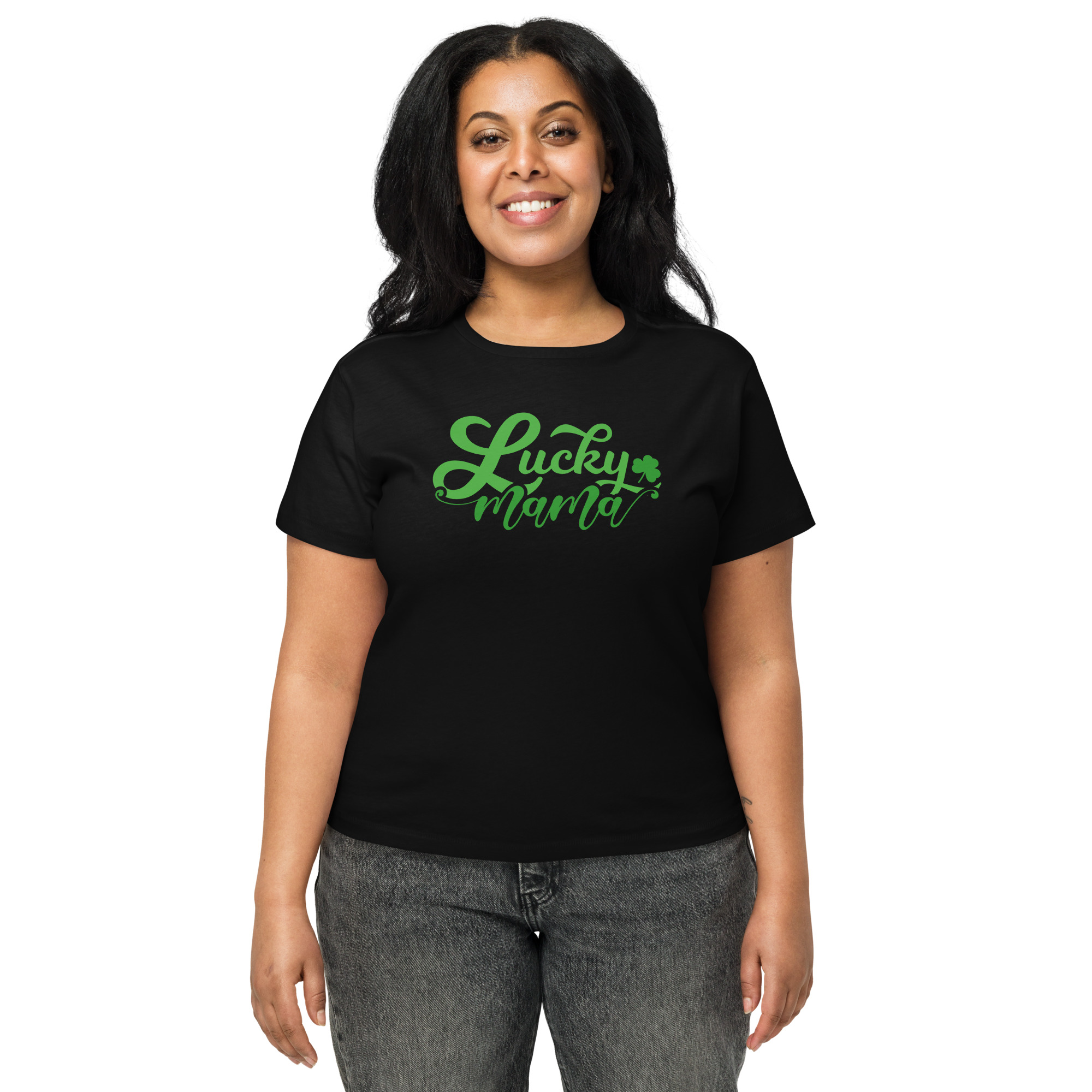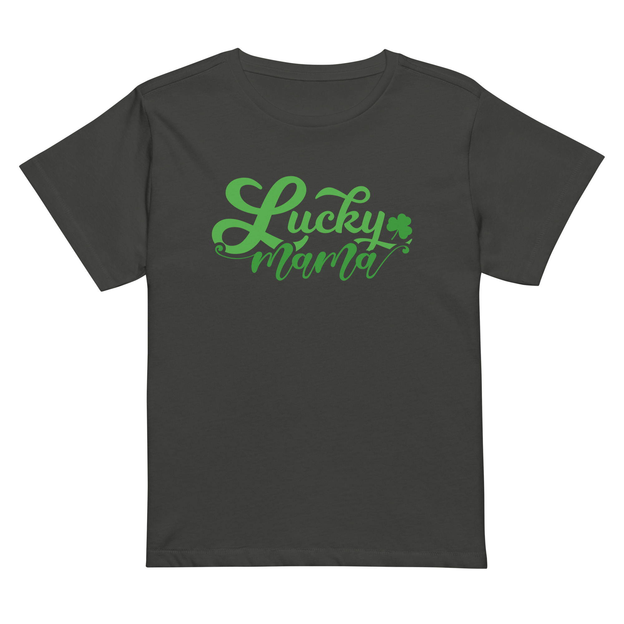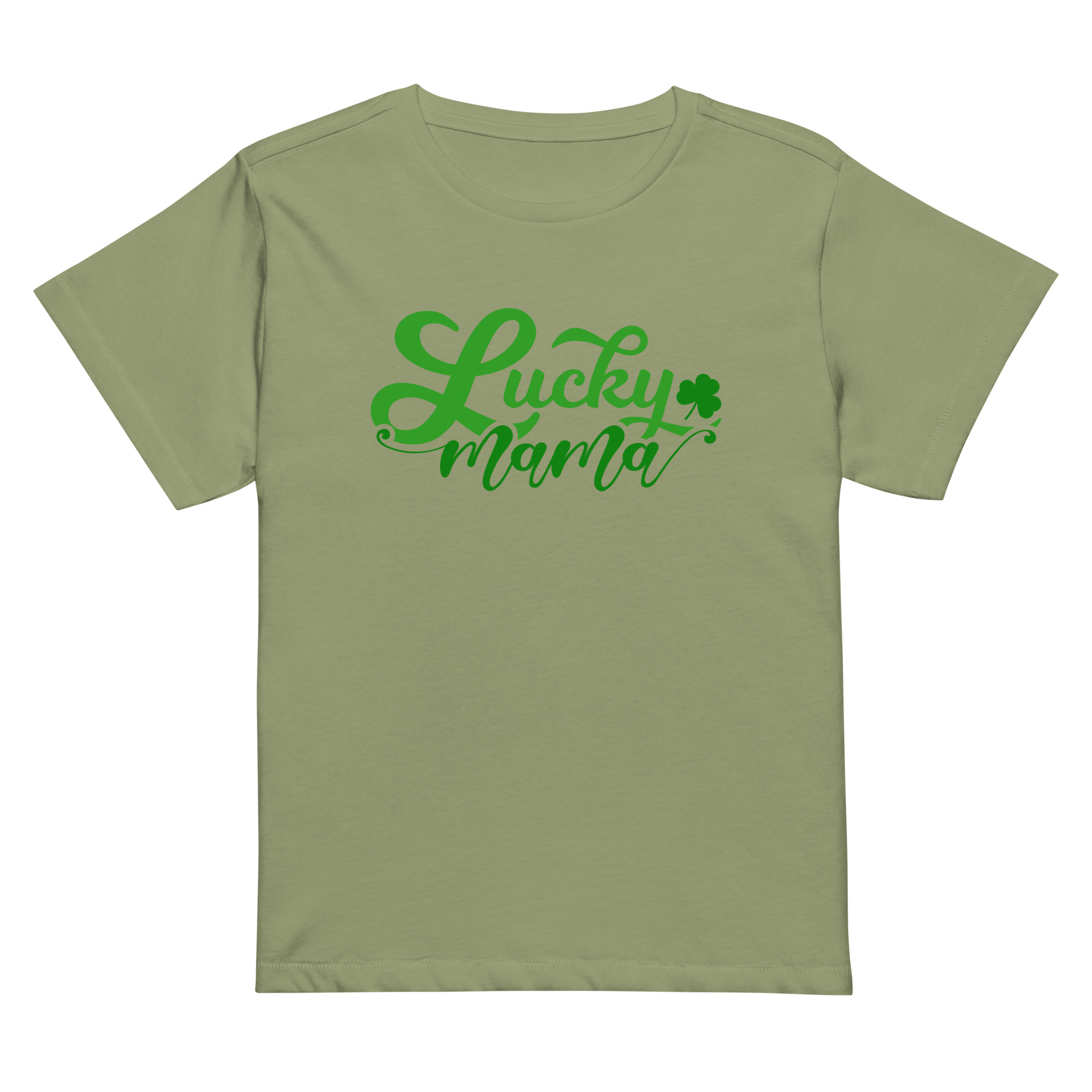 Lucky Mama, St. Patrick’s Day Women’s high-waisted t-shirt. Made of 100% combed and ring-spun cotton, this t-shirt is ultra soft and smooth against the skin. With its flattering, longline fit and crew neck, this tee will look best paired with high-waisted bottoms.