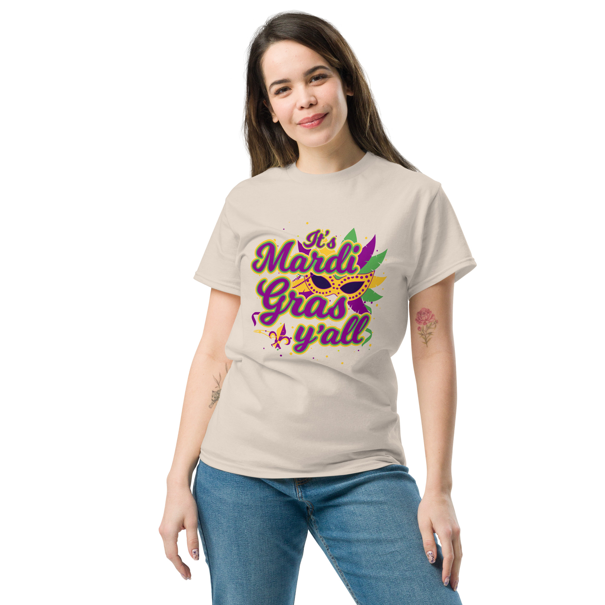 Mardi Gras Carnival parade, Unisex classic tee. The 100% cotton unisex classic tee will help you land a more structured look. It sits nicely, maintains sharp lines around the edges, and goes perfectly with layered streetwear outfits. Plus, it’s extra trendy now!