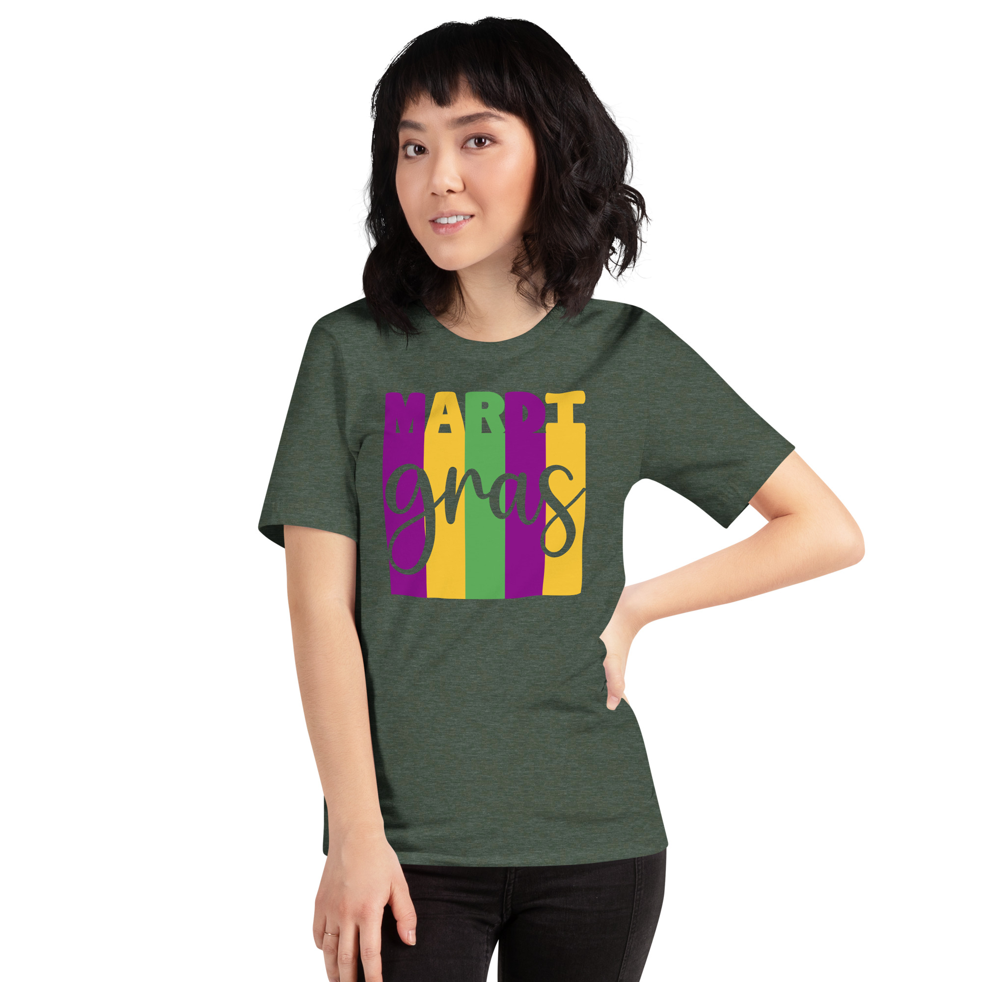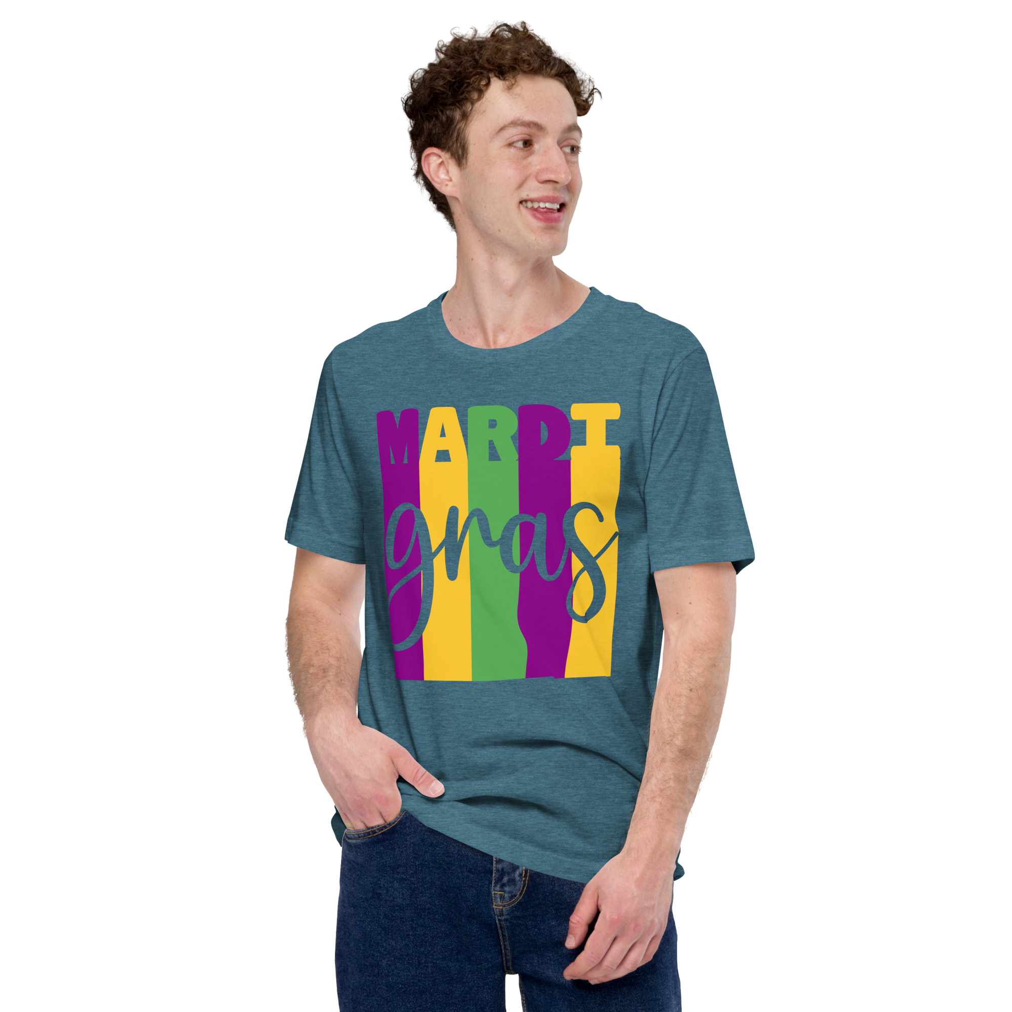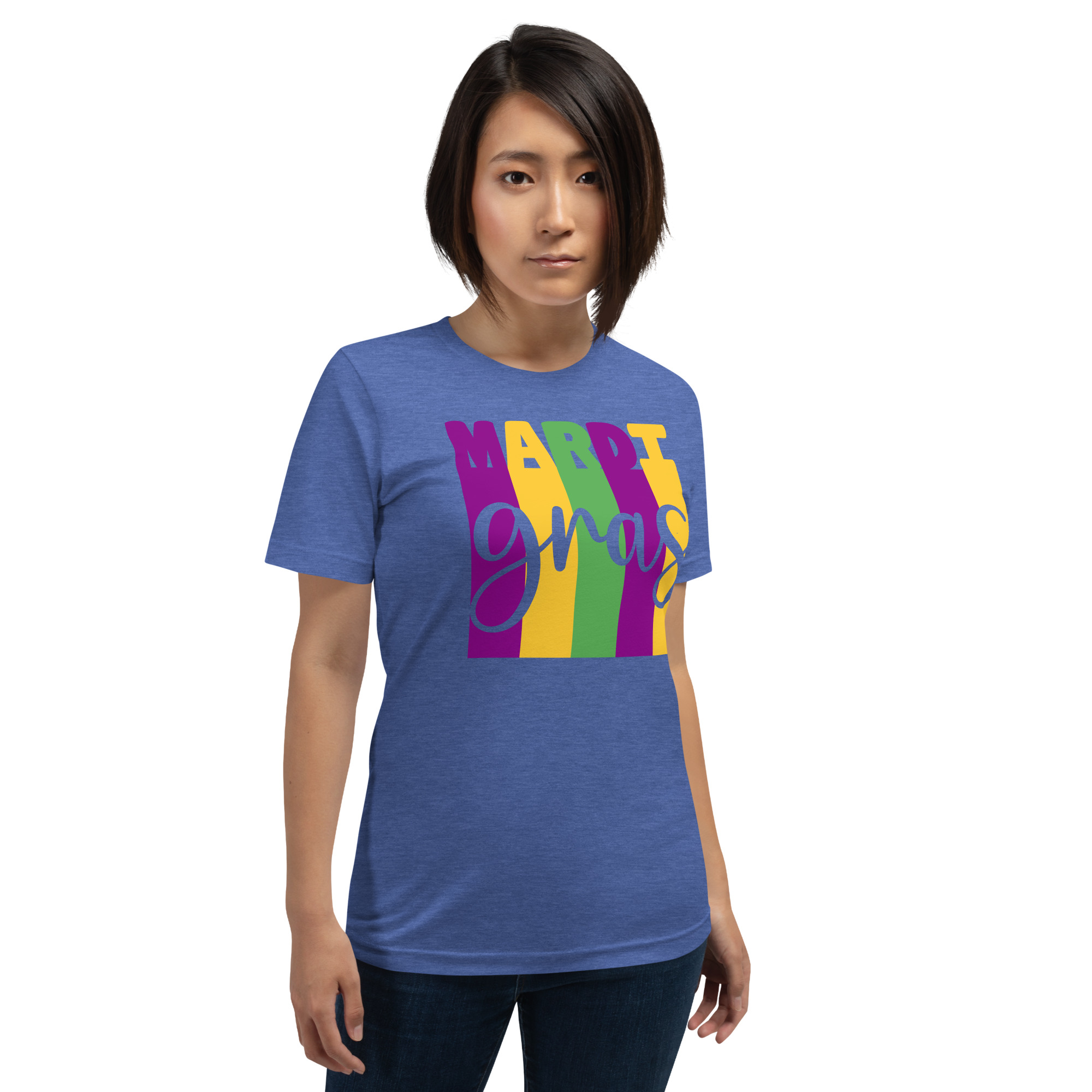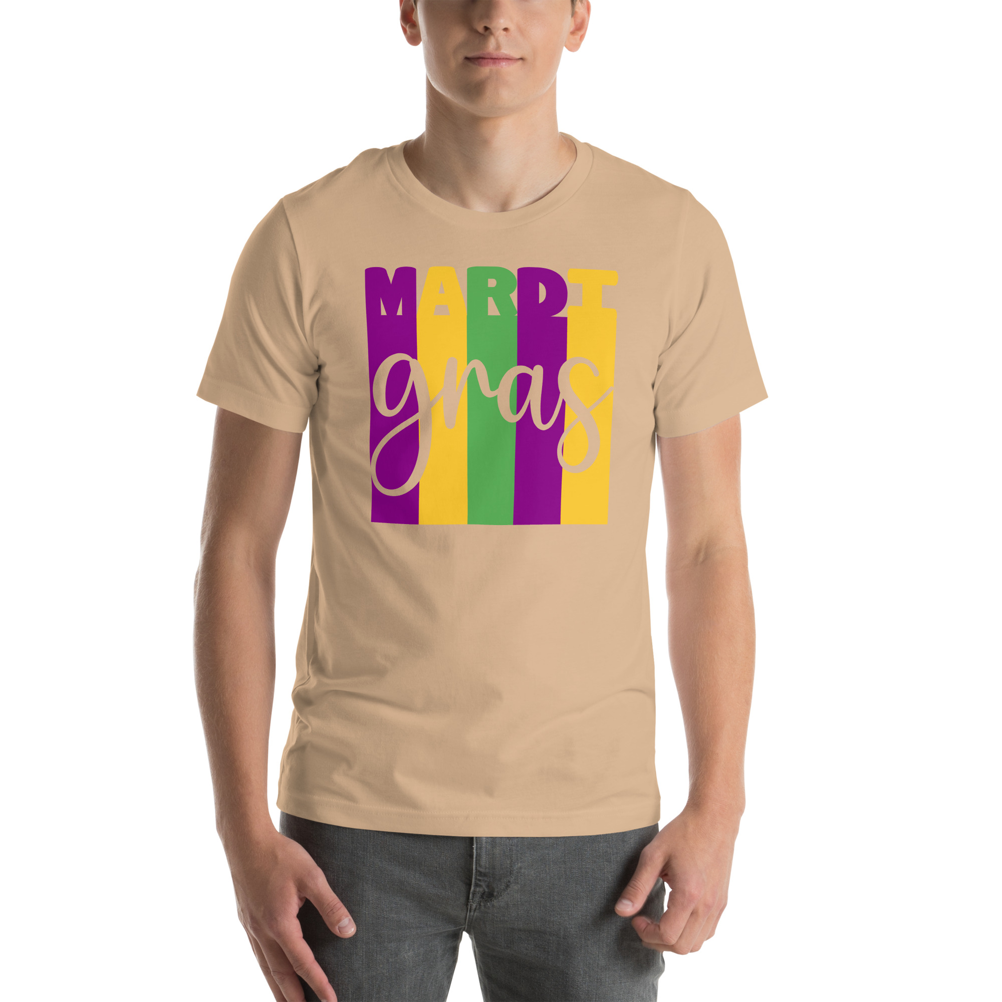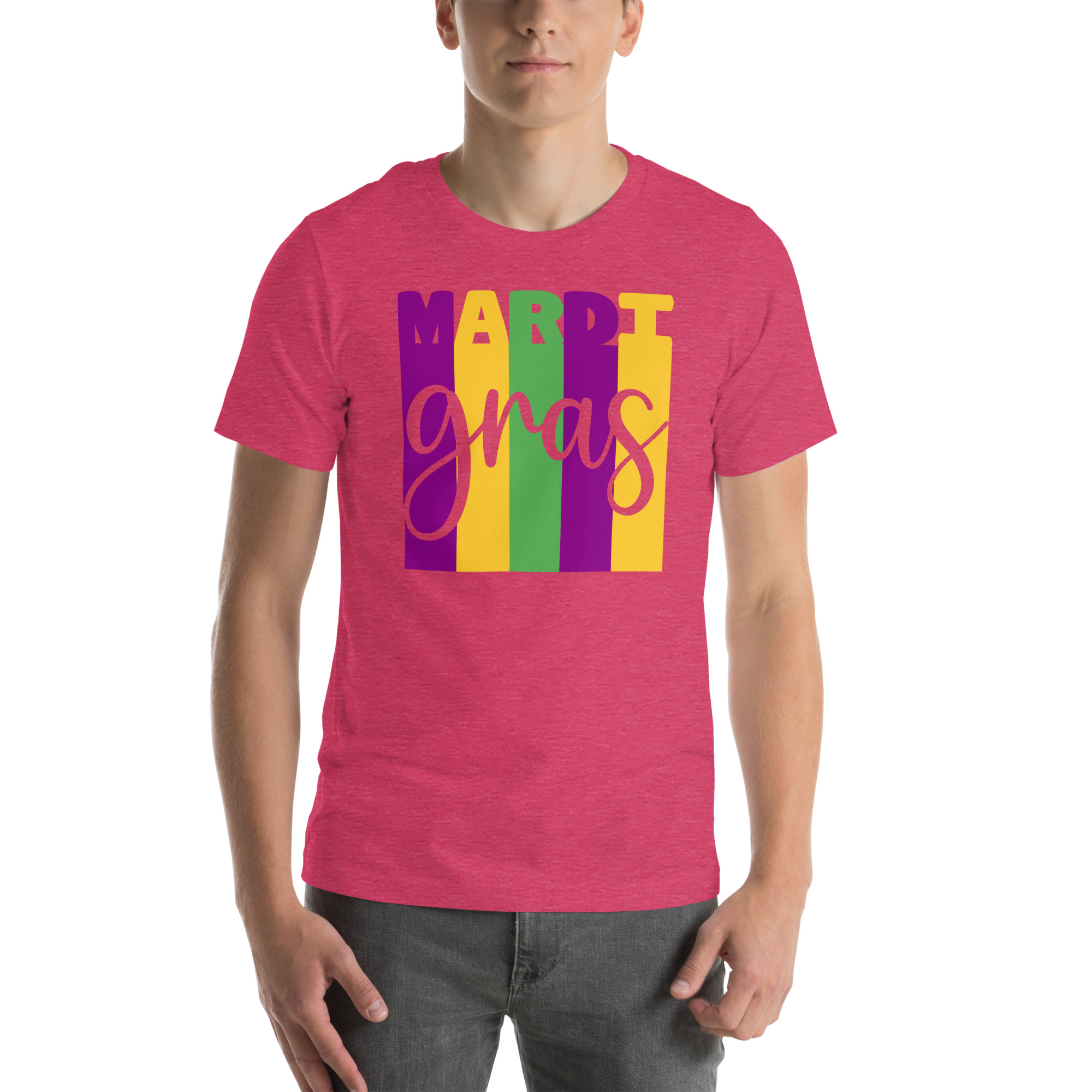 Mardi Gras Party Mardi Gras parade Unisex t-shirt. This t-shirt is everything you’ve dreamed of and more. It feels soft and lightweight, with the right amount of stretch. It’s comfortable and flattering for all.