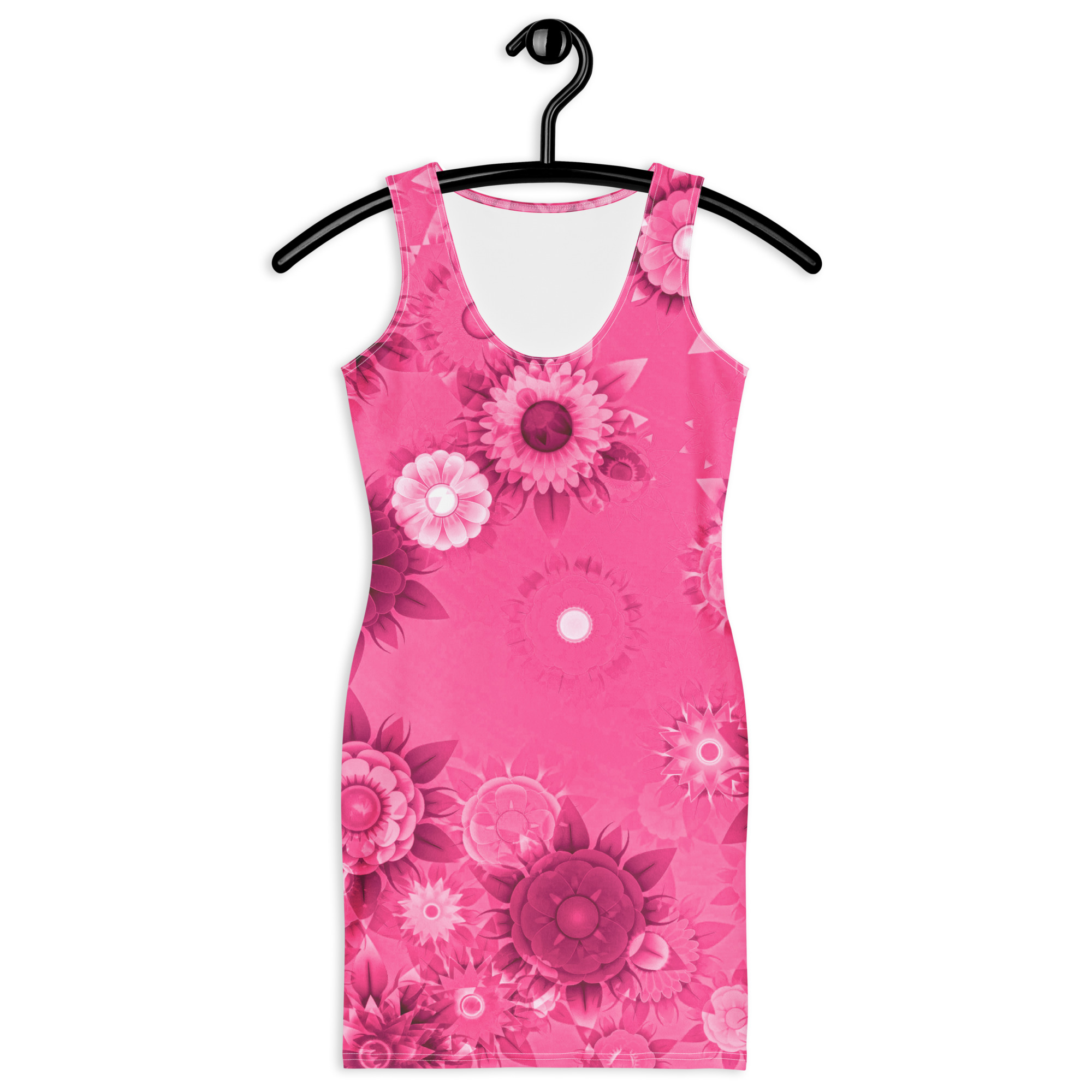 Pink floral design All over print Bodycon Dress. Make a statement and look fabulous in this Pink floral design all-over printed, Bodycon dress.