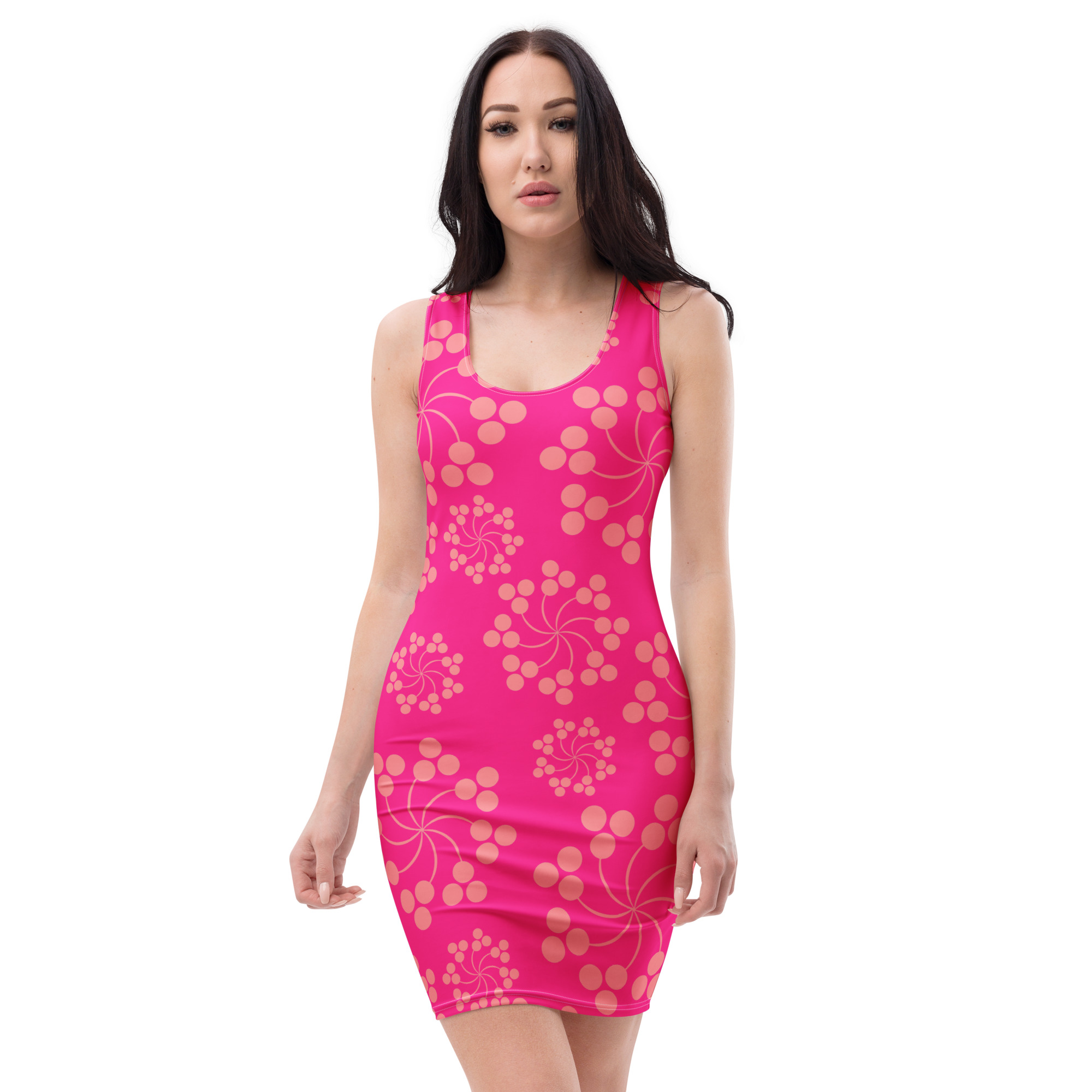Pink Floral pattern All over print Bodycon Dress. Make a statement and look fabulous in this Pink Floral pattern all-over printed, Bodycon Dress.