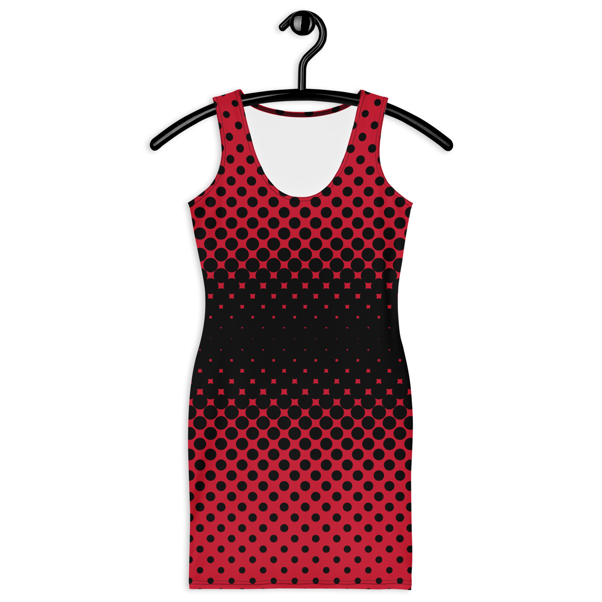 Red and Black Halftone design All Over Print Bodycon dress for women. Make a statement and look fabulous in this all-over printed, fitted dress.