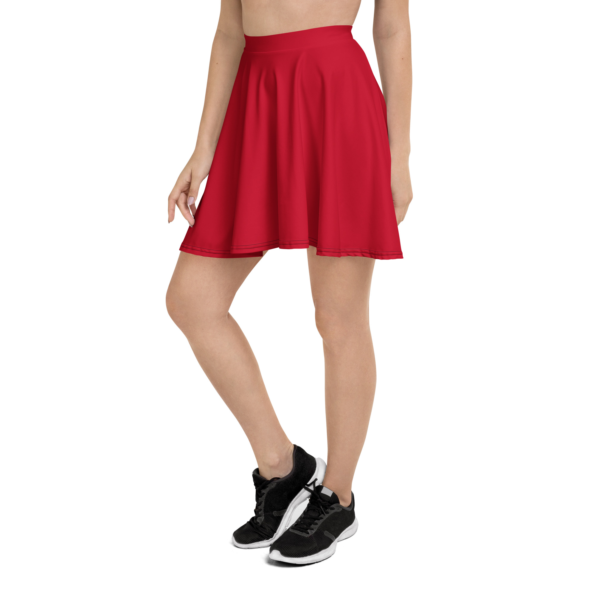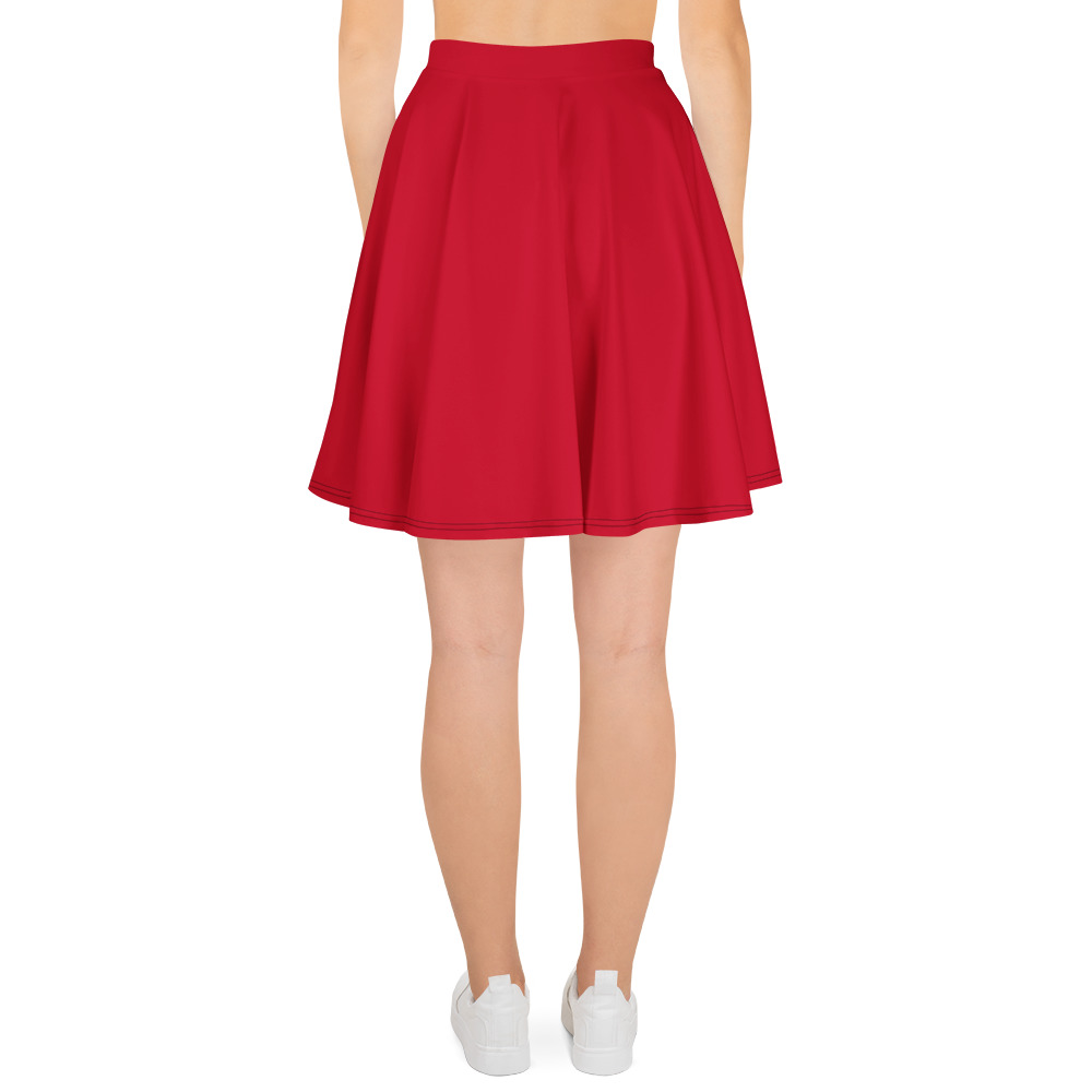 Red all over print Skater Skirt for women. The soft fabric and flared cut of this skater skirt are just a few of the reasons why it’s bound to become a favorite in your wardrobe. The flattering silhouette looks great on any body type, and thanks to the elastic waistband, you’ll feel extra comfy.