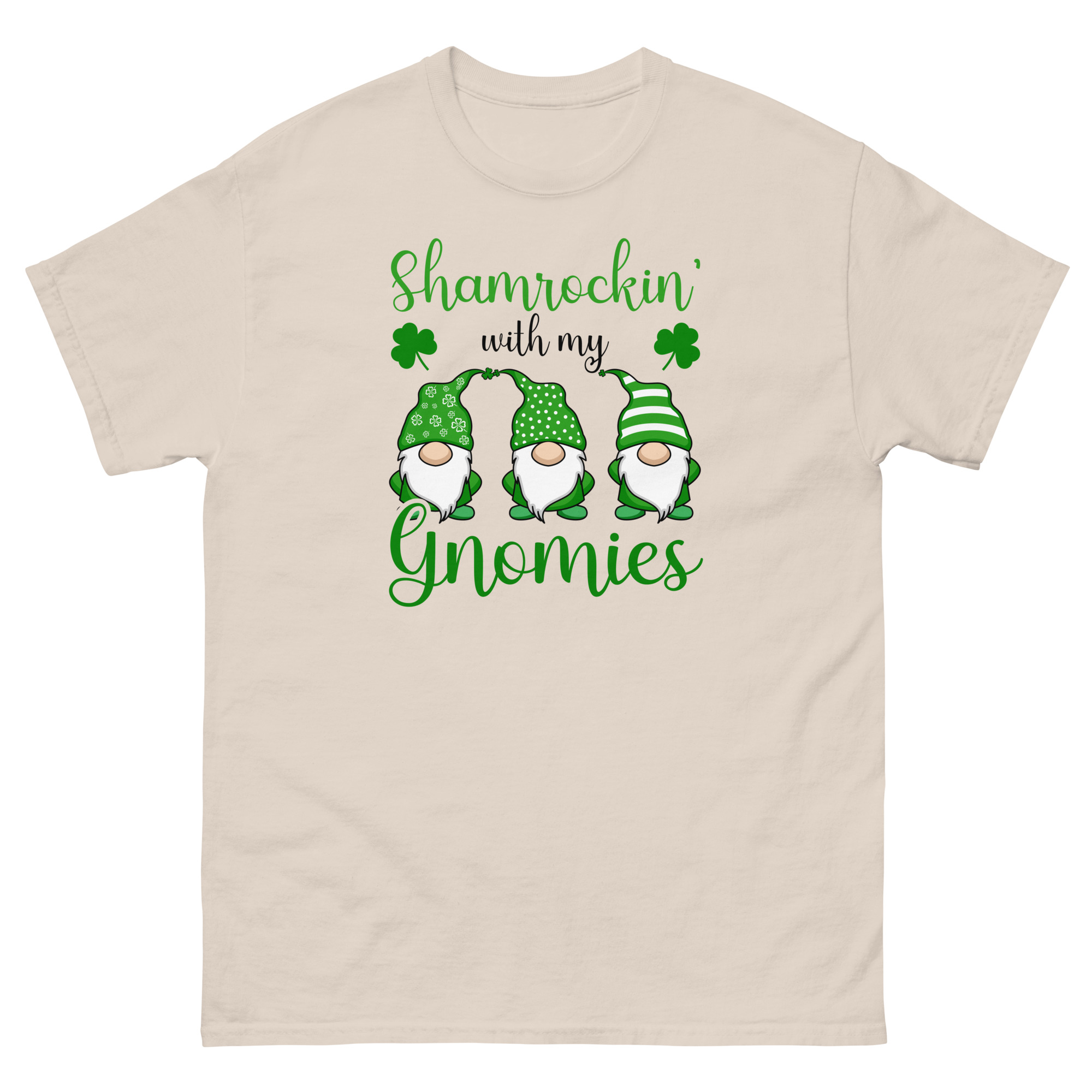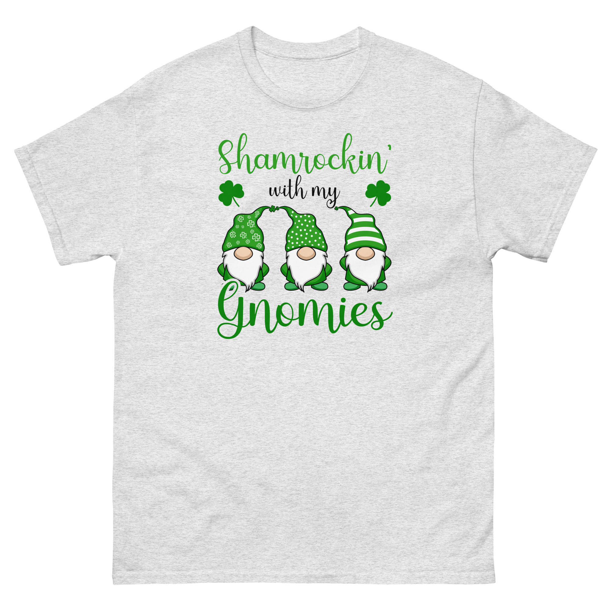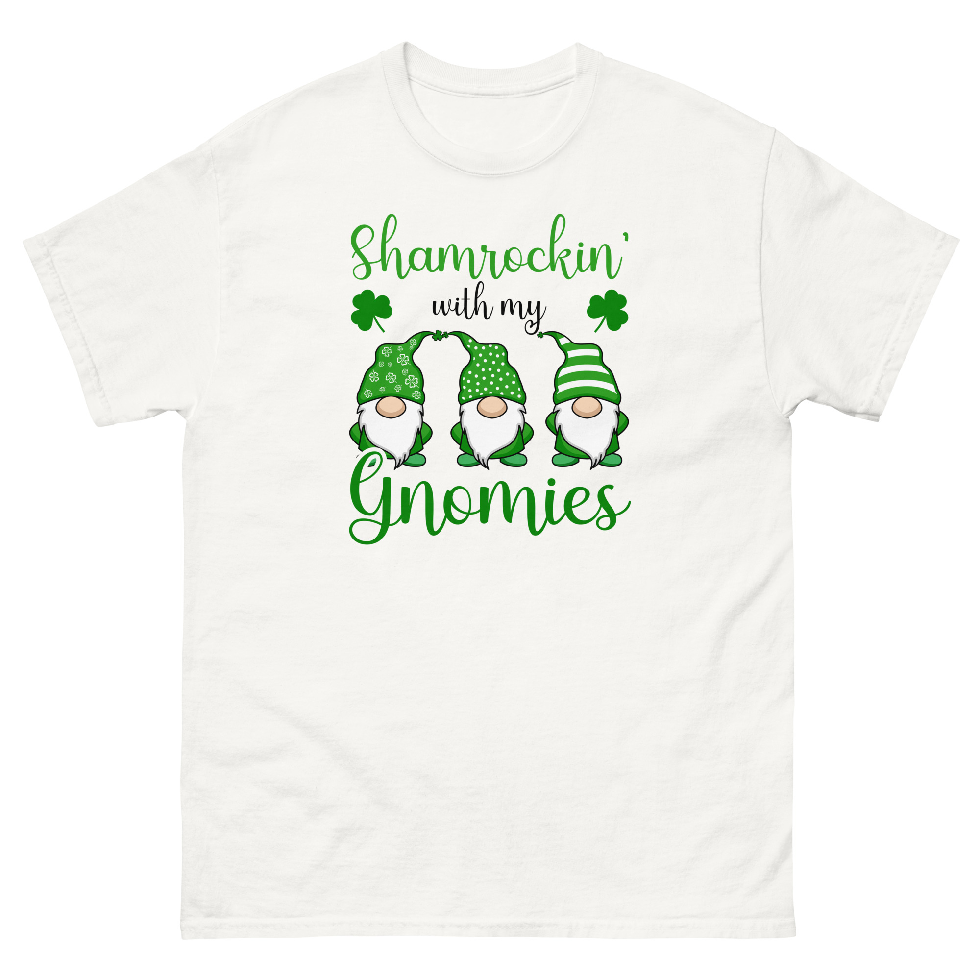 Shamrockin’ with my gnomies, St. Patrick’s Day, Unisex classic tee. The 100% cotton unisex classic tee will help you land a more structured look. It sits nicely, maintains sharp lines around the edges, and goes perfectly with layered streetwear outfits. Plus, it’s extra trendy now!
