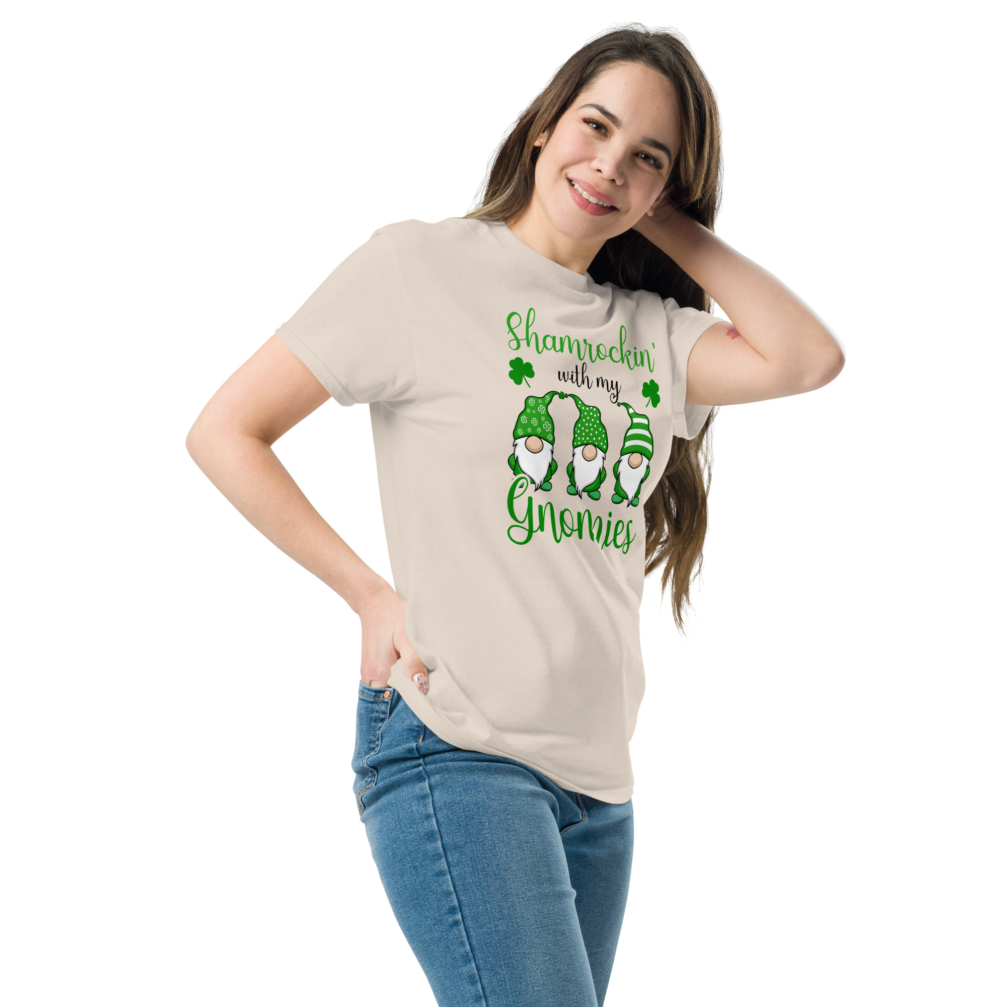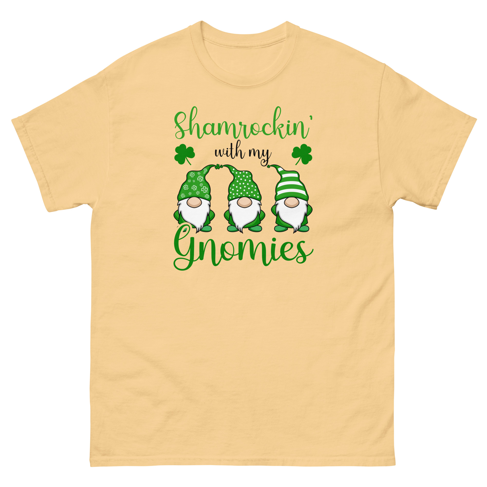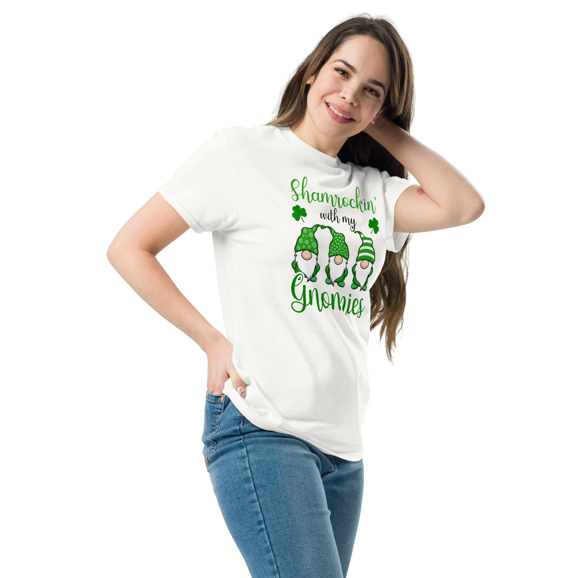 Shamrockin’ with my gnomies, St. Patrick’s Day, Unisex classic tee. The 100% cotton unisex classic tee will help you land a more structured look. It sits nicely, maintains sharp lines around the edges, and goes perfectly with layered streetwear outfits. Plus, it’s extra trendy now!