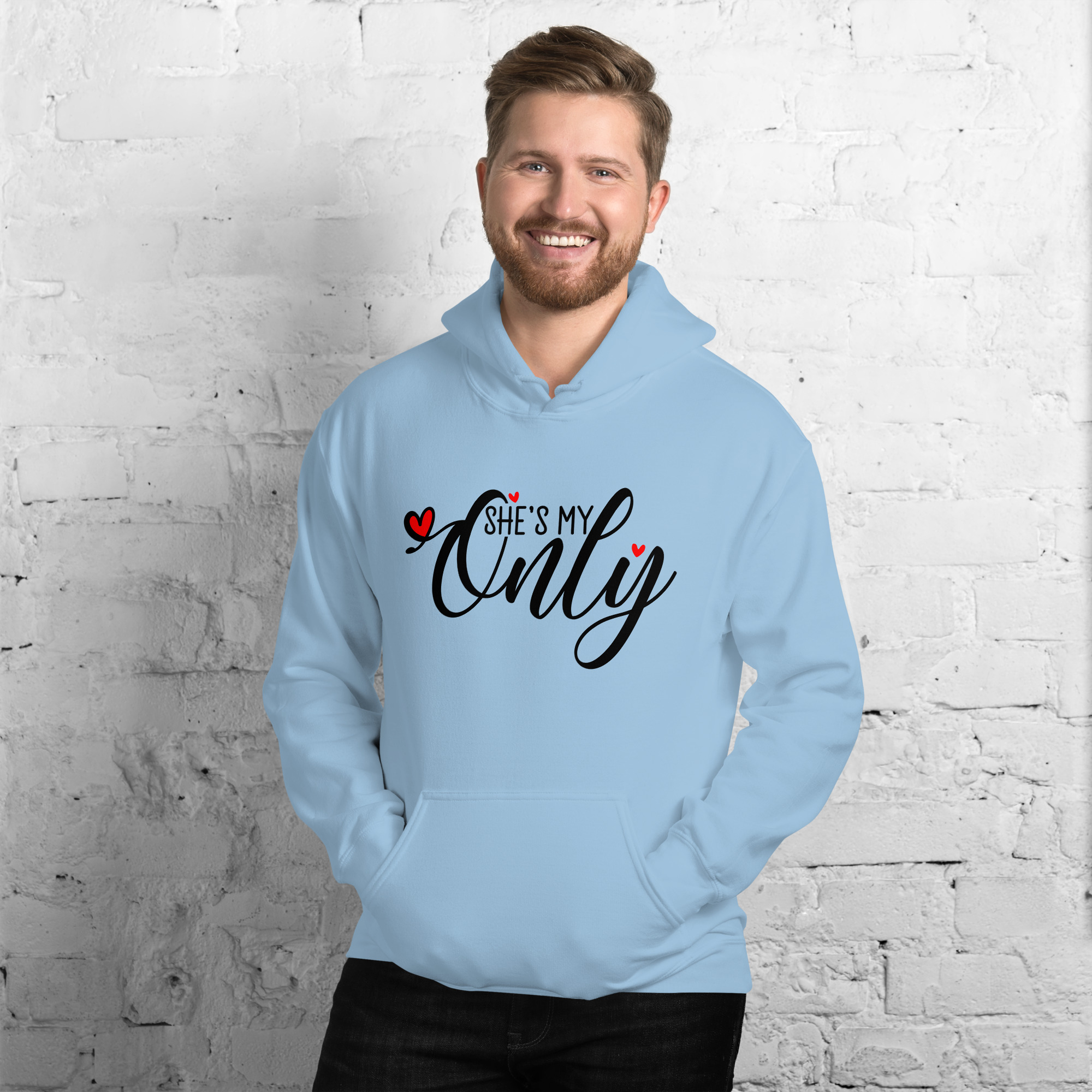 She is my Only, Valentine day Men’s Hoodie. Everyone needs a cozy go-to hoodie to curl up in, so go for one that’s soft, smooth, and stylish. It’s the perfect choice for cooler evenings!