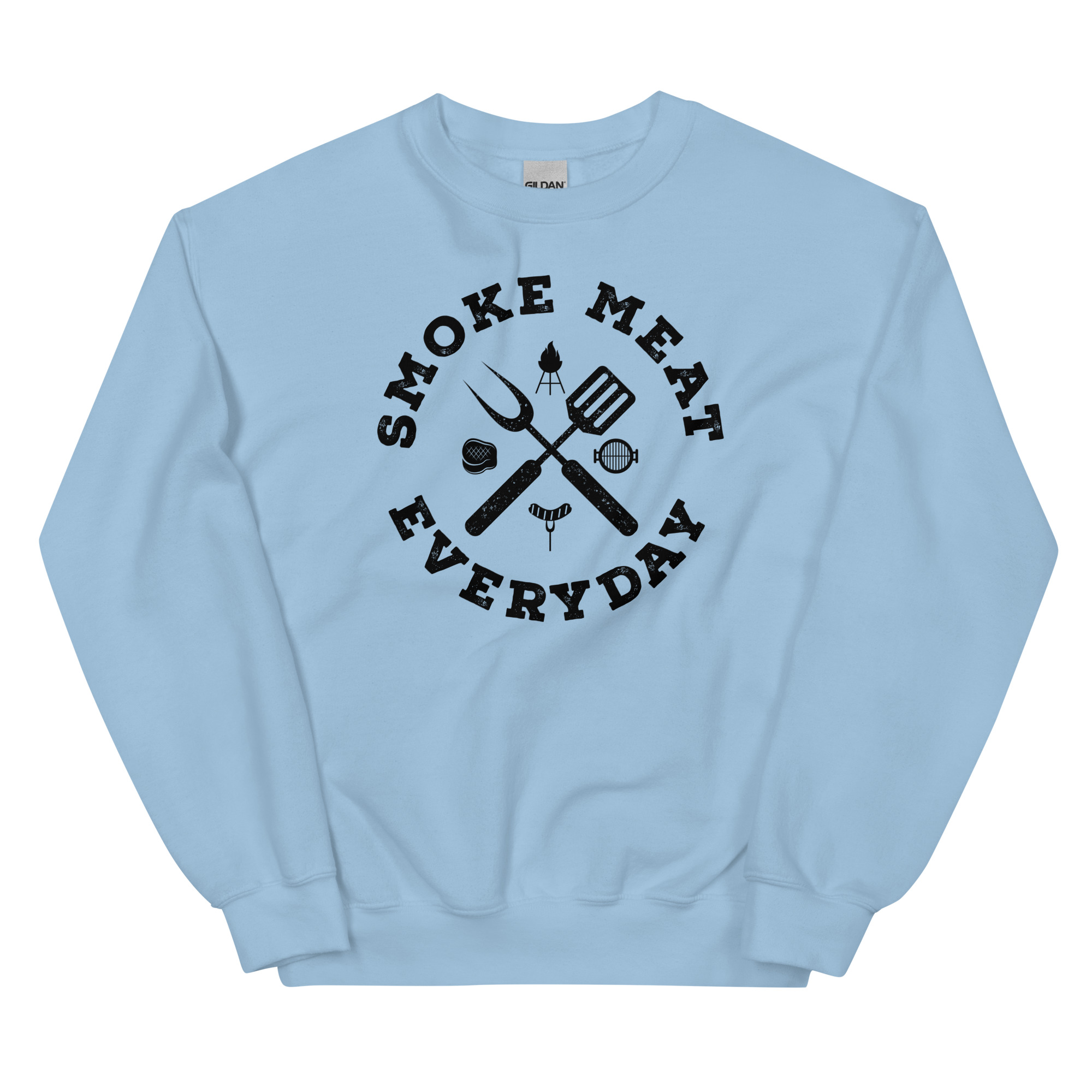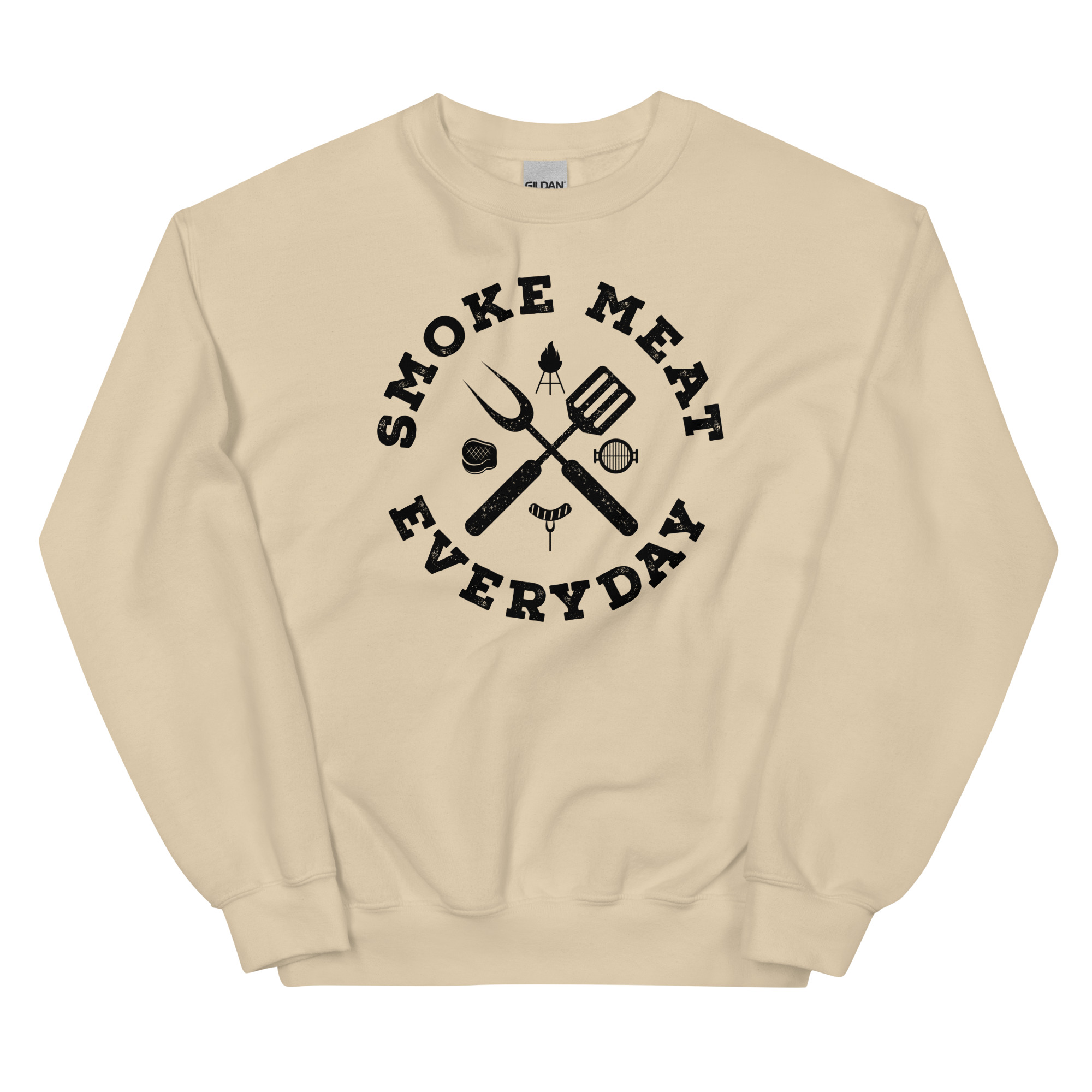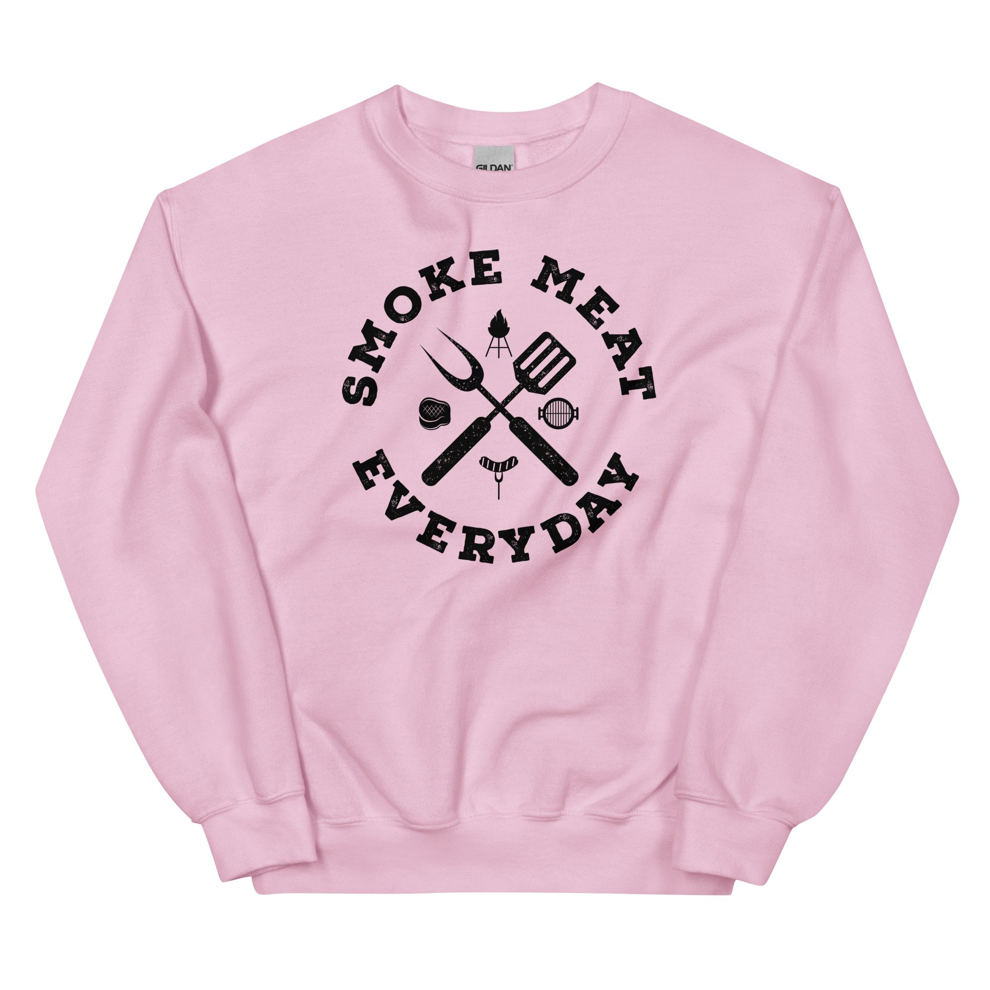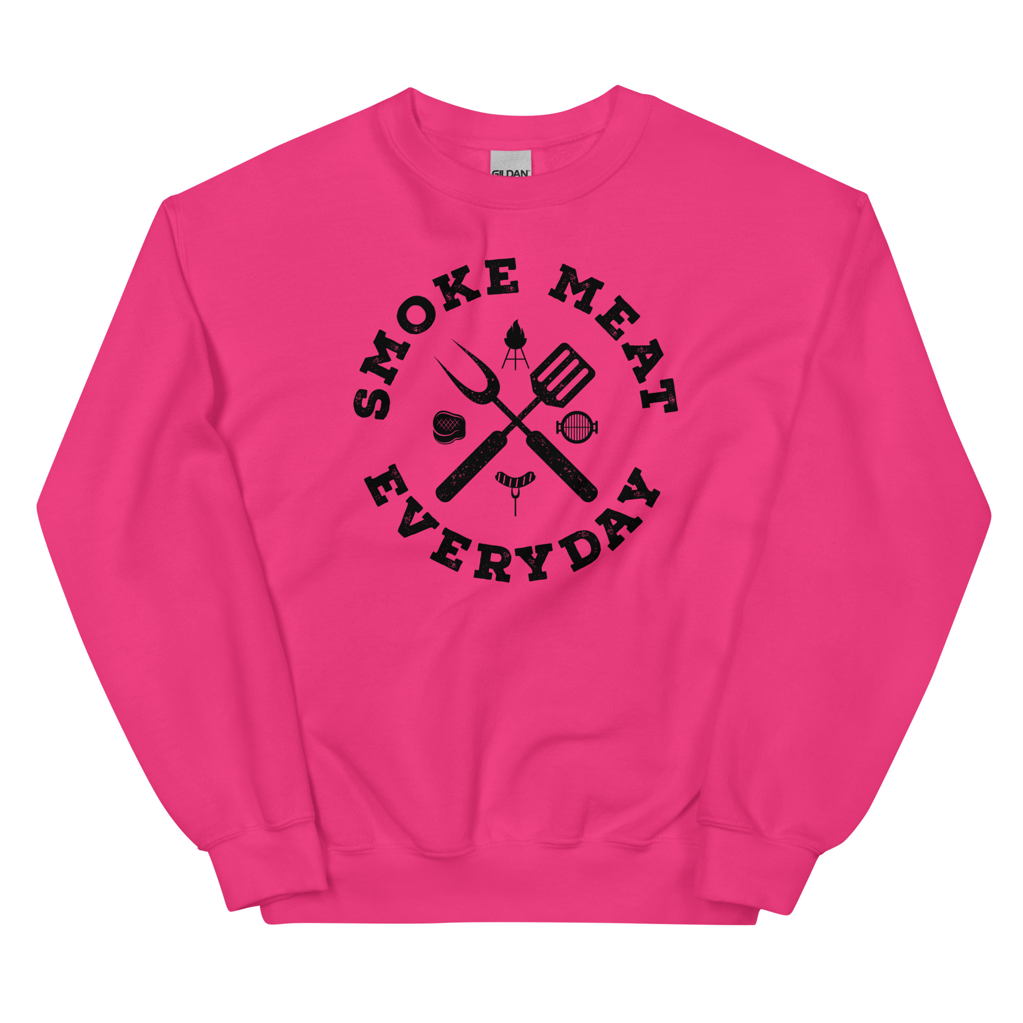 Smoke Meat Everyday, Unisex Sweatshirt, A sturdy and warm sweatshirt bound to keep you warm in the colder months. A pre-shrunk, classic fit sweater that’s made with air-jet spun yarn for a soft feel.
