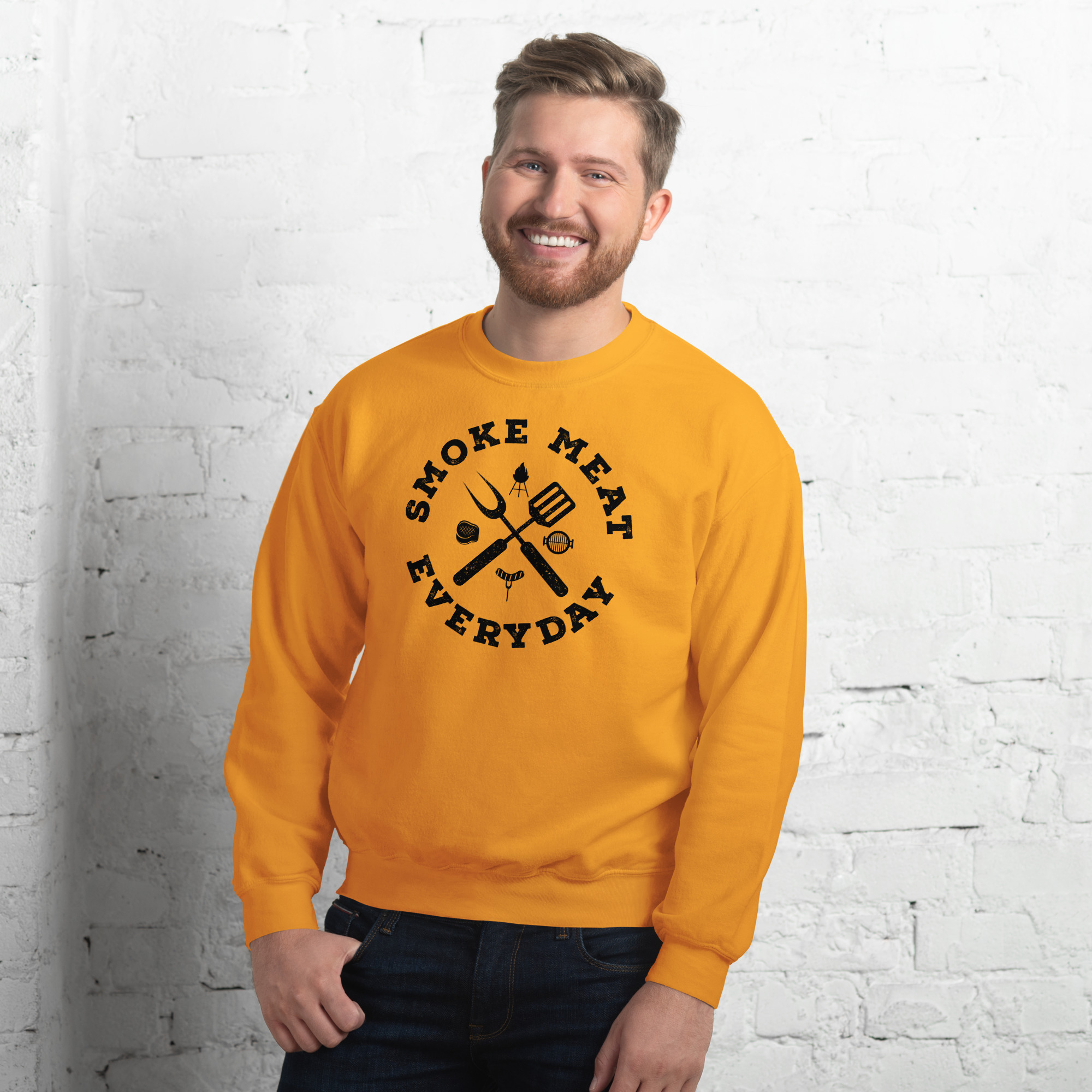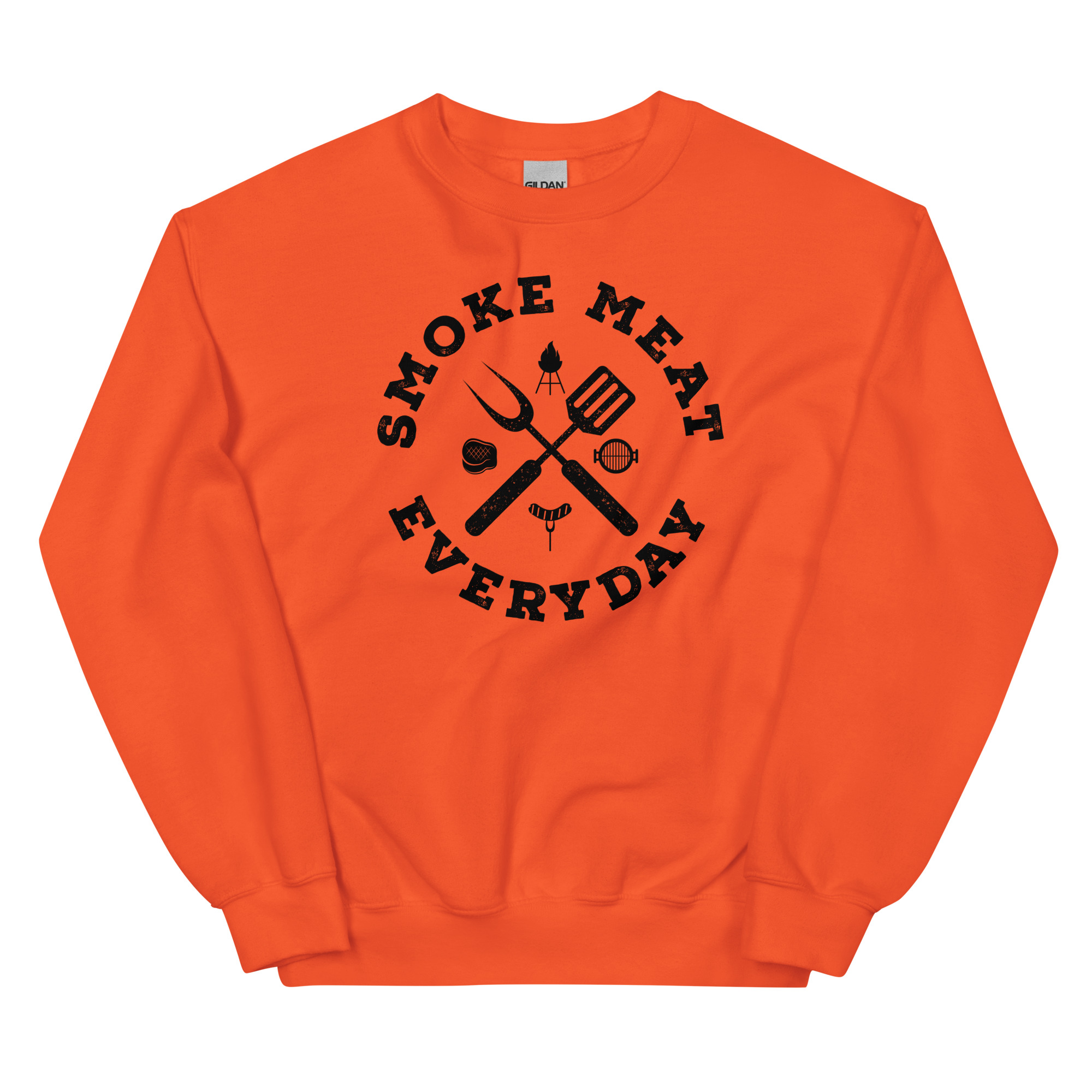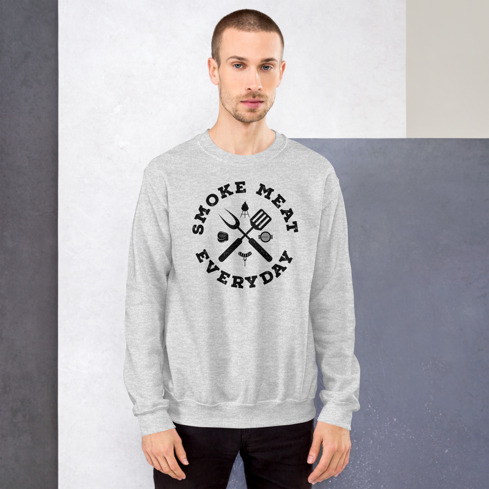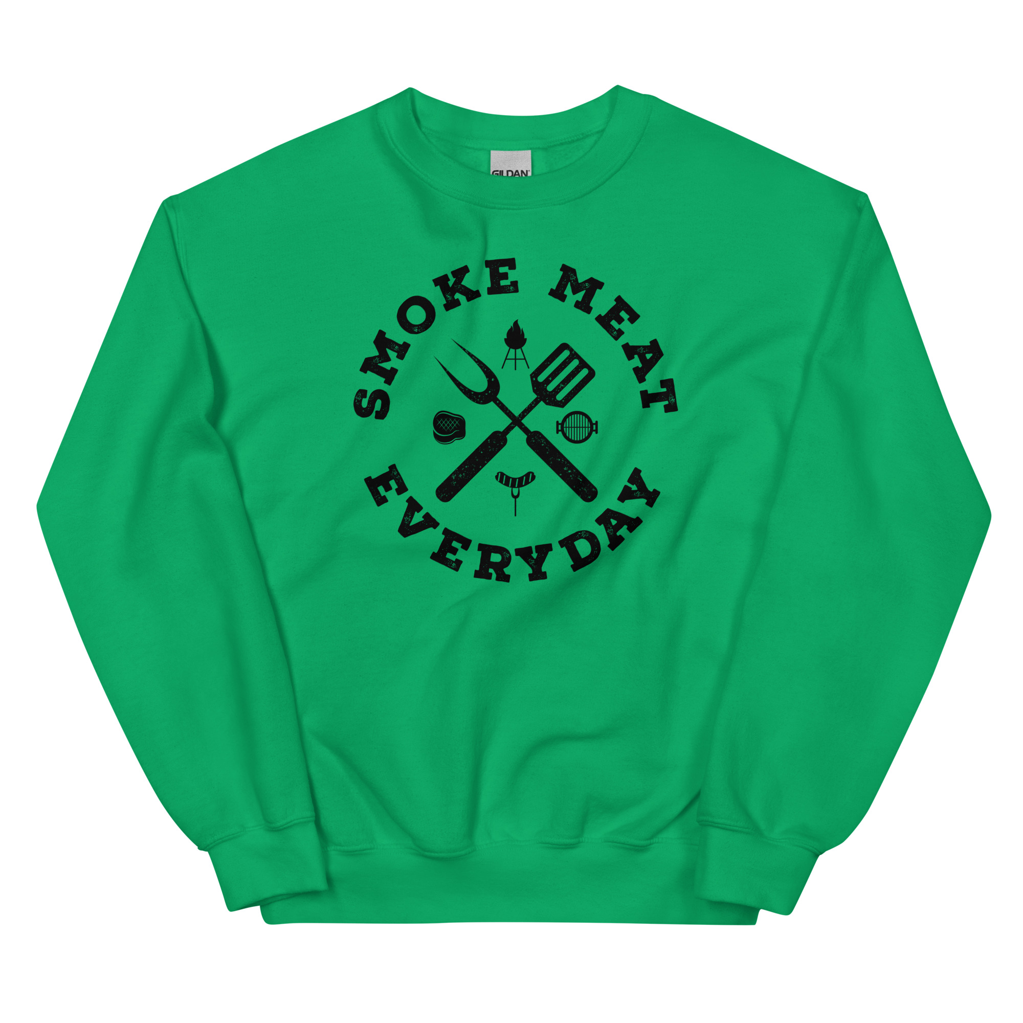Smoke Meat Everyday, Unisex Sweatshirt, A sturdy and warm sweatshirt bound to keep you warm in the colder months. A pre-shrunk, classic fit sweater that’s made with air-jet spun yarn for a soft feel.