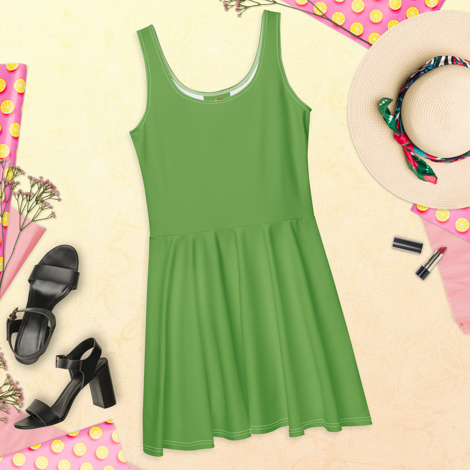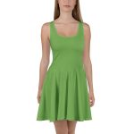 Solid Green Color Skater Dress for Women. Dress to impress with this sleeveless skater dress! The soft fabric and flared skirt give it an elegant twist that brings out the intricate design with a beautiful vibrancy.