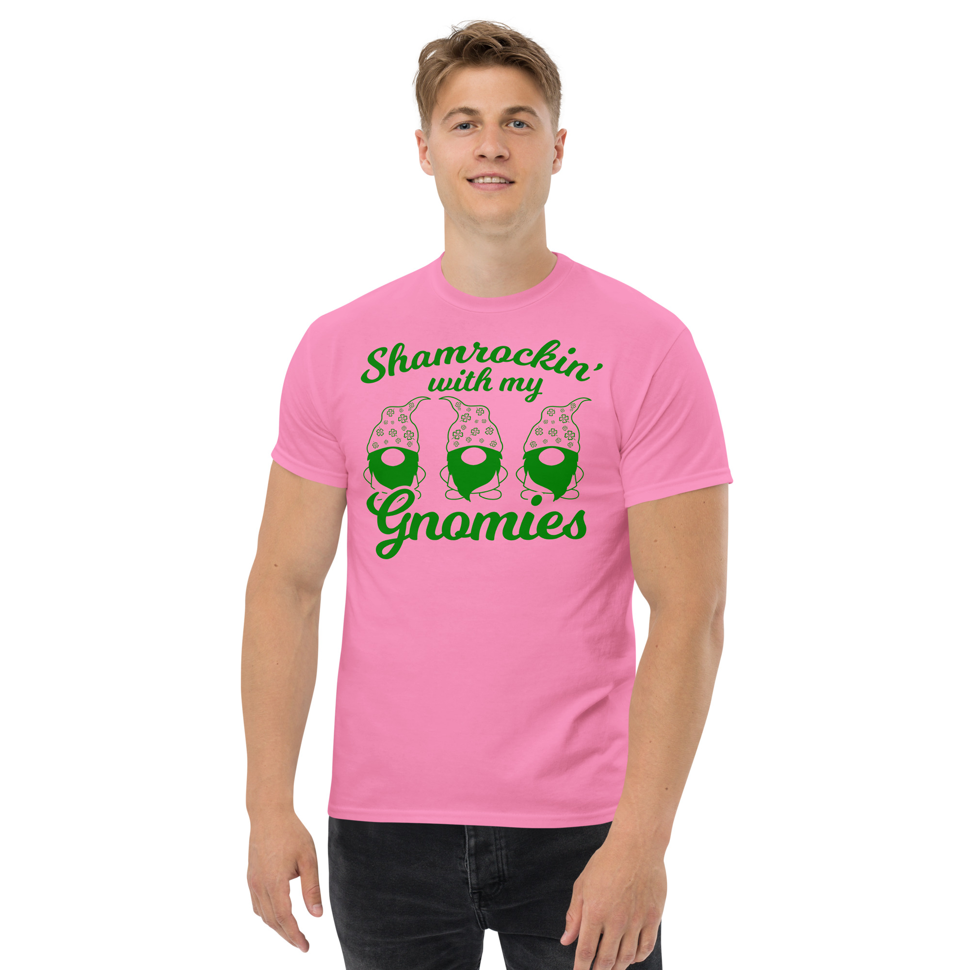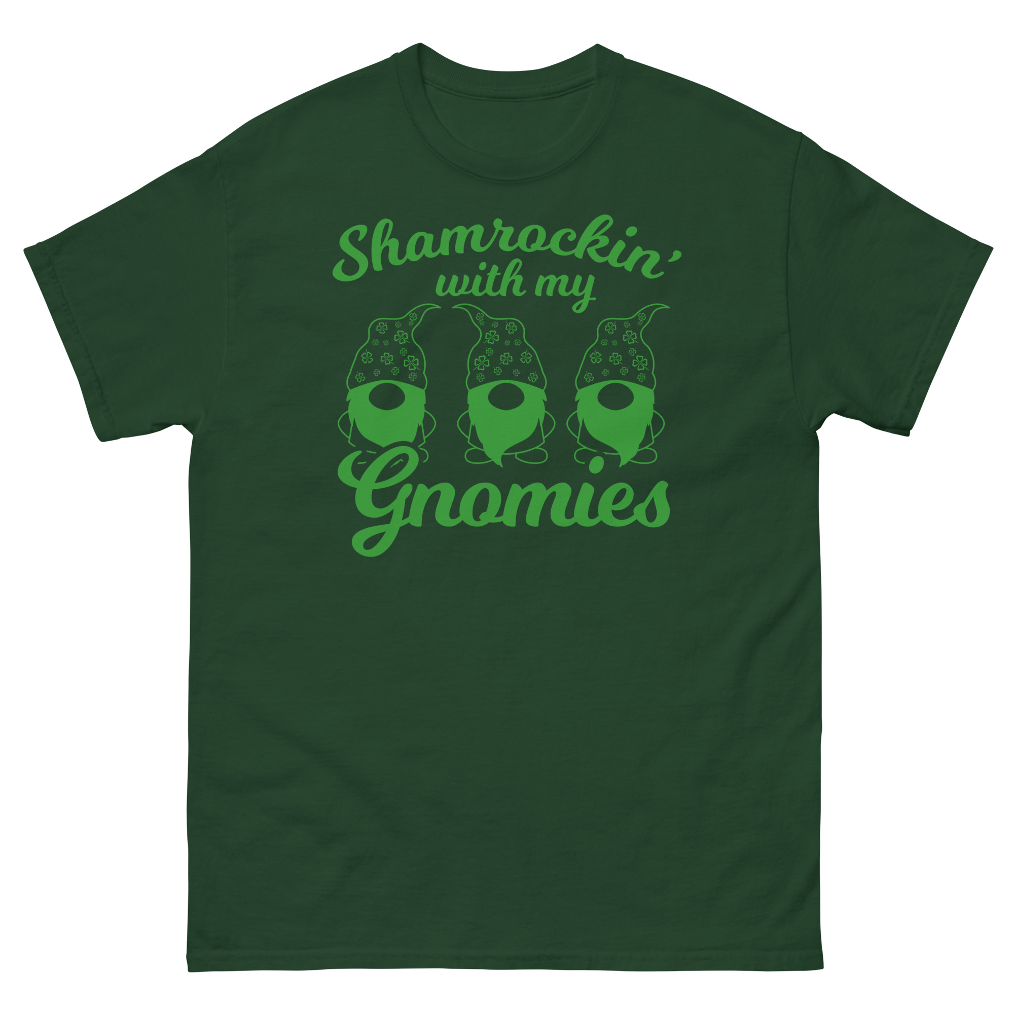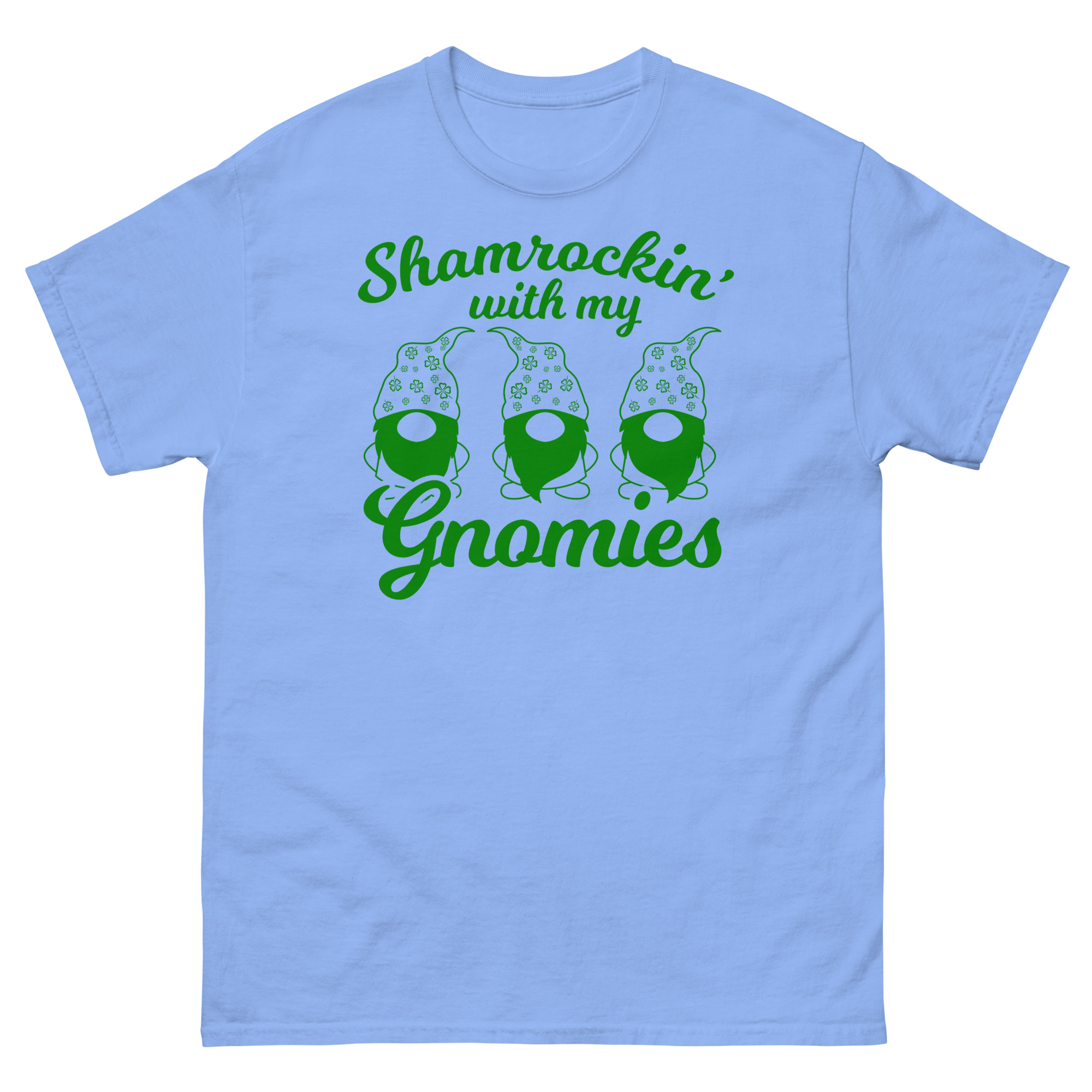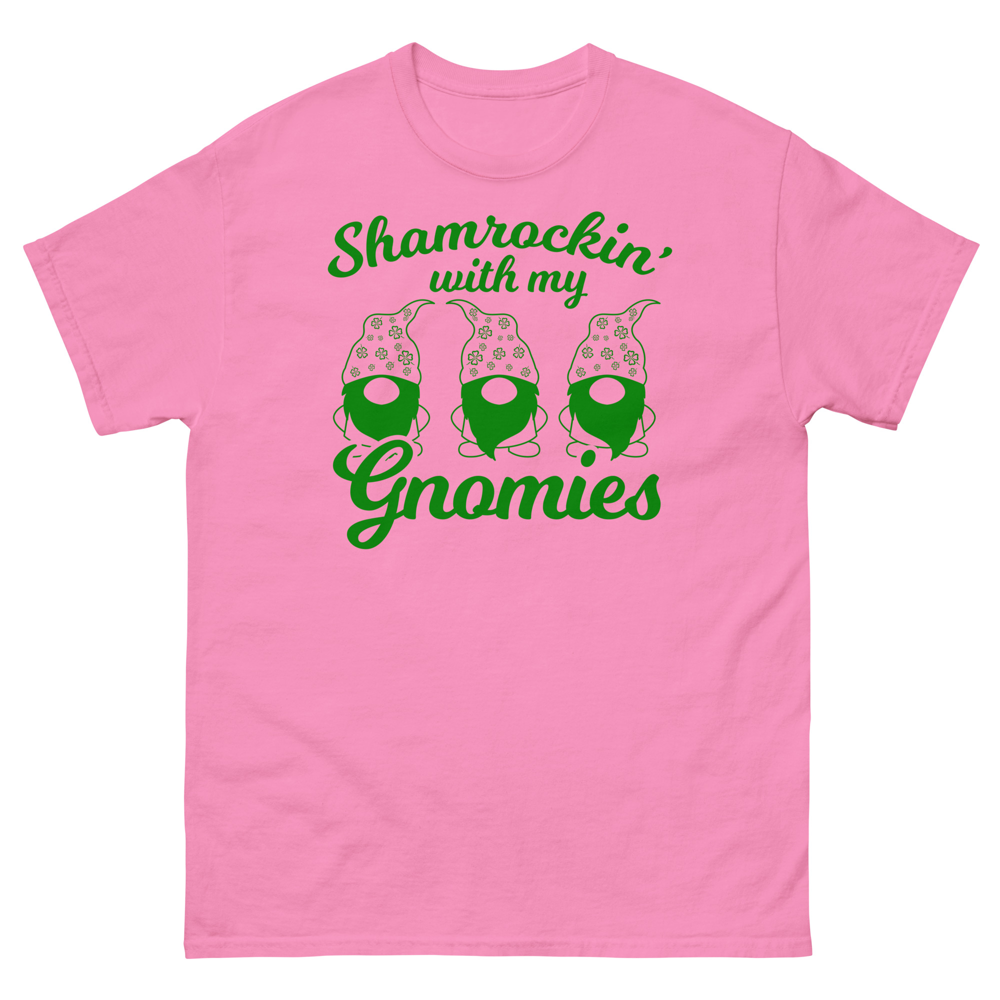 St. Patrick’s Day, Shamrockin’ with my gnomies, Unisex classic tee. The 100% cotton unisex classic tee will help you land a more structured look. It sits nicely, maintains sharp lines around the edges, and goes perfectly with layered streetwear outfits. Plus, it’s extra trendy now!