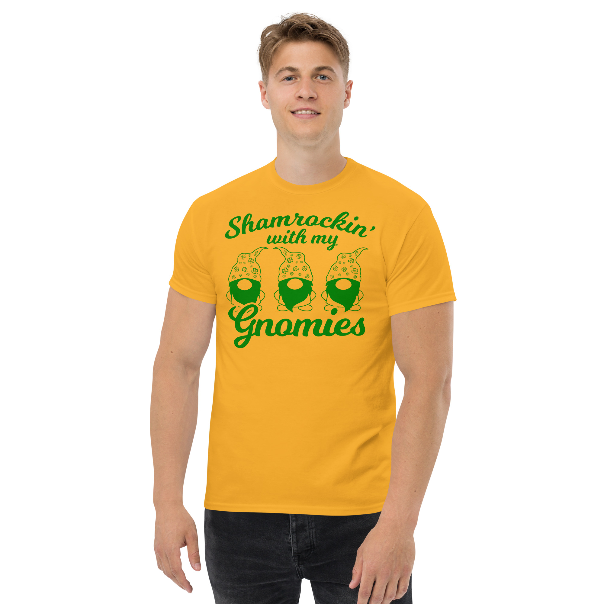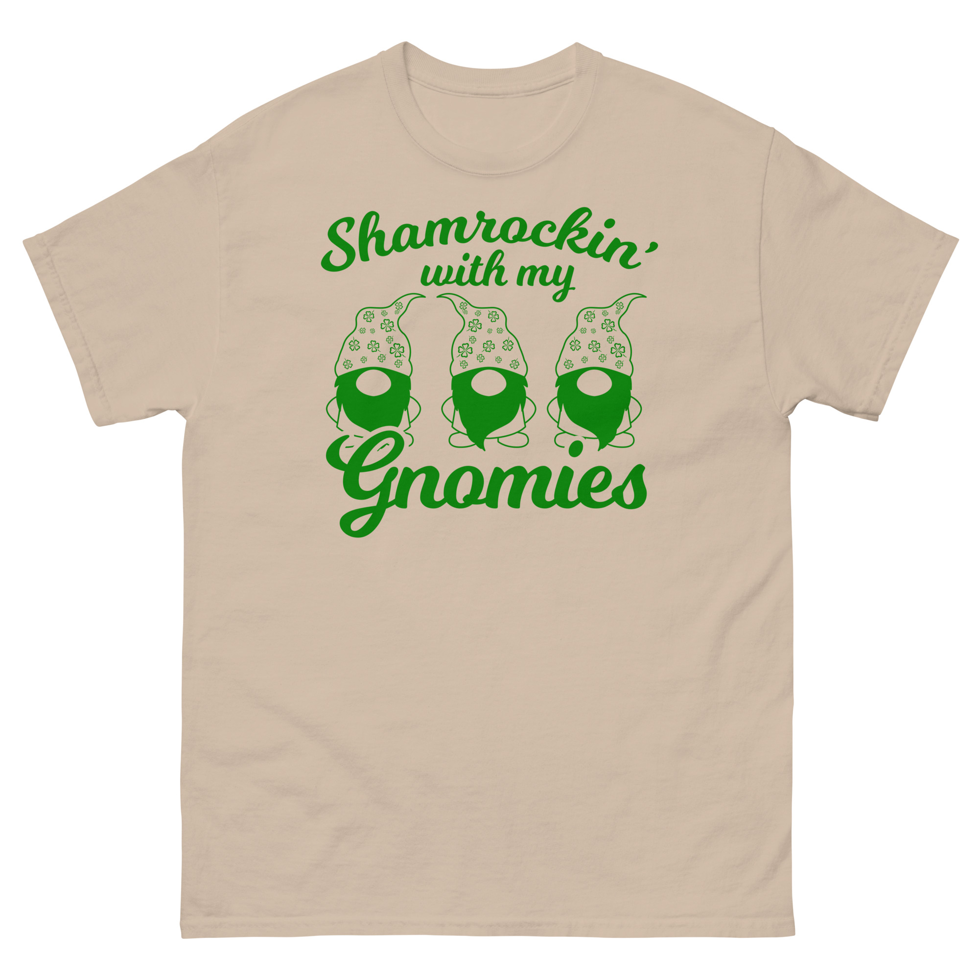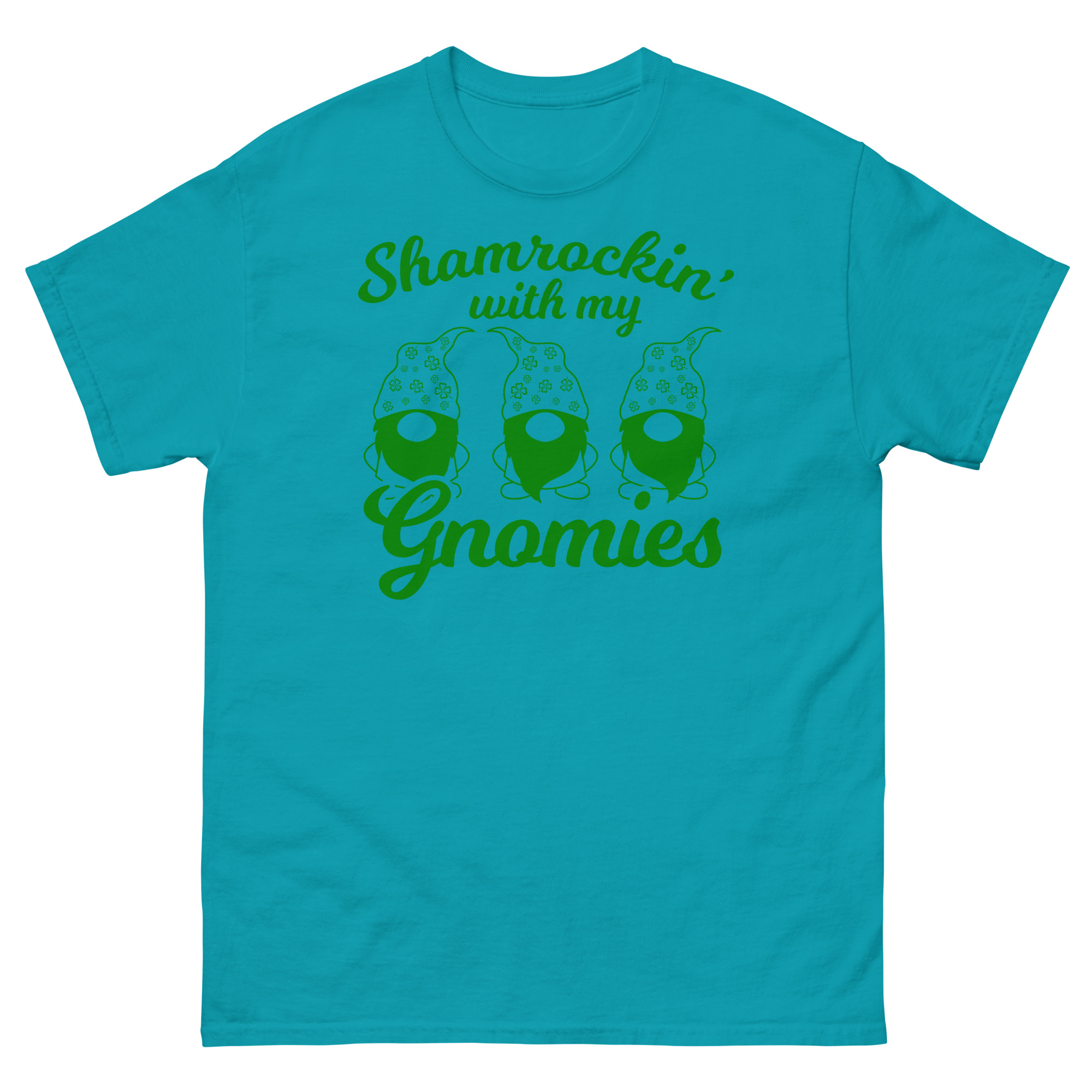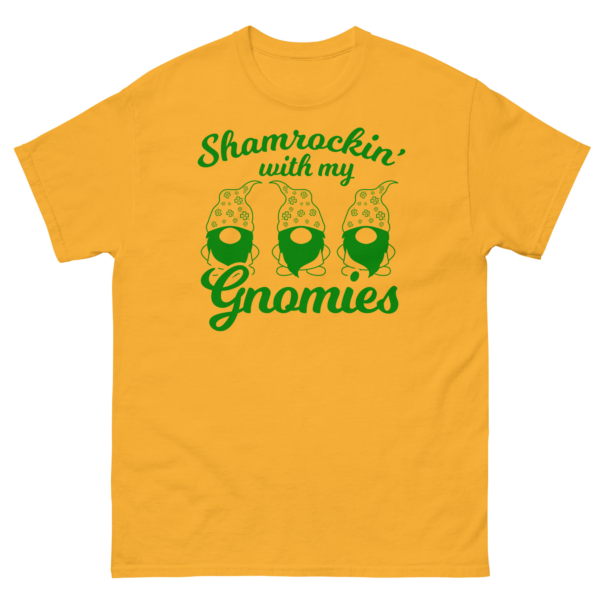 St. Patrick’s Day, Shamrockin’ with my gnomies, Unisex classic tee. The 100% cotton unisex classic tee will help you land a more structured look. It sits nicely, maintains sharp lines around the edges, and goes perfectly with layered streetwear outfits. Plus, it’s extra trendy now!