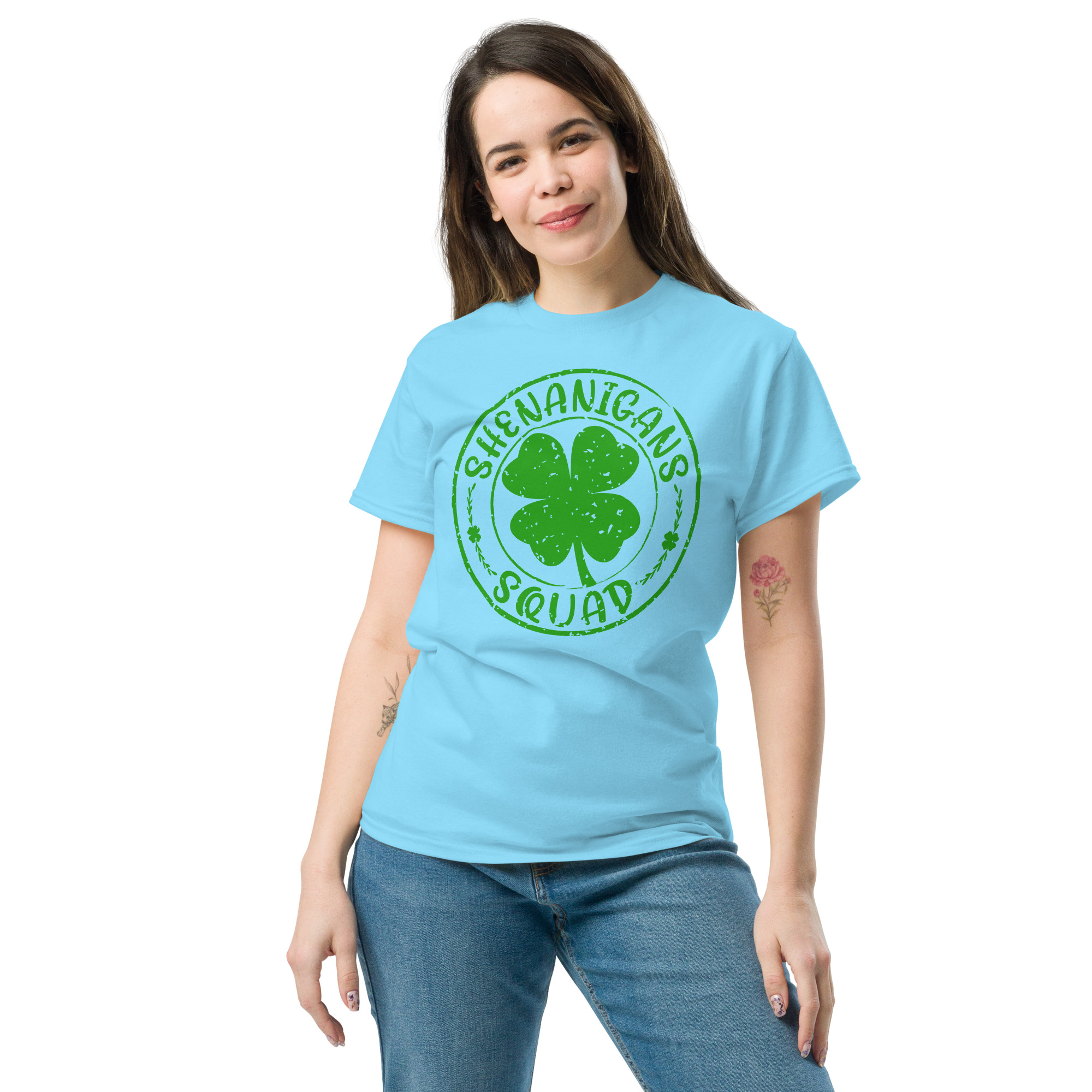 St. Patrick’s Day, Shenanigans Squad. Shenanigans with my gnomies, Unisex classic tee. The 100% cotton unisex classic tee will help you land a more structured look. It sits nicely, maintains sharp lines around the edges, and goes perfectly with layered streetwear outfits. Plus, it’s extra trendy now!