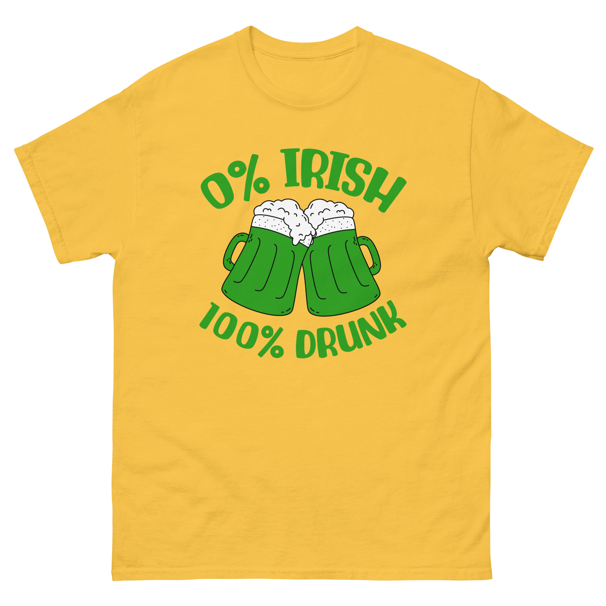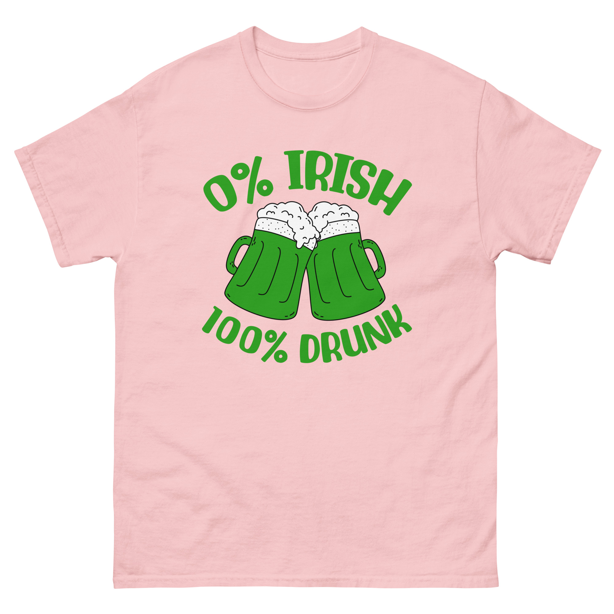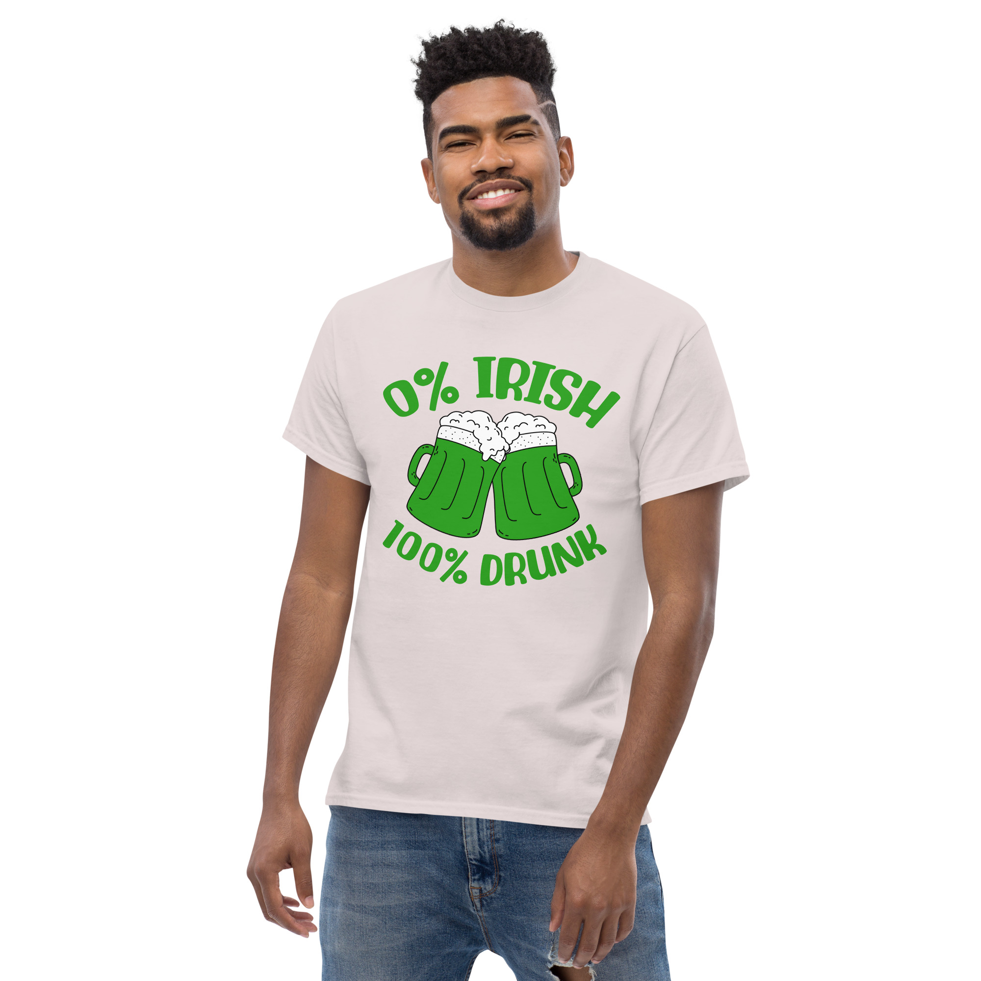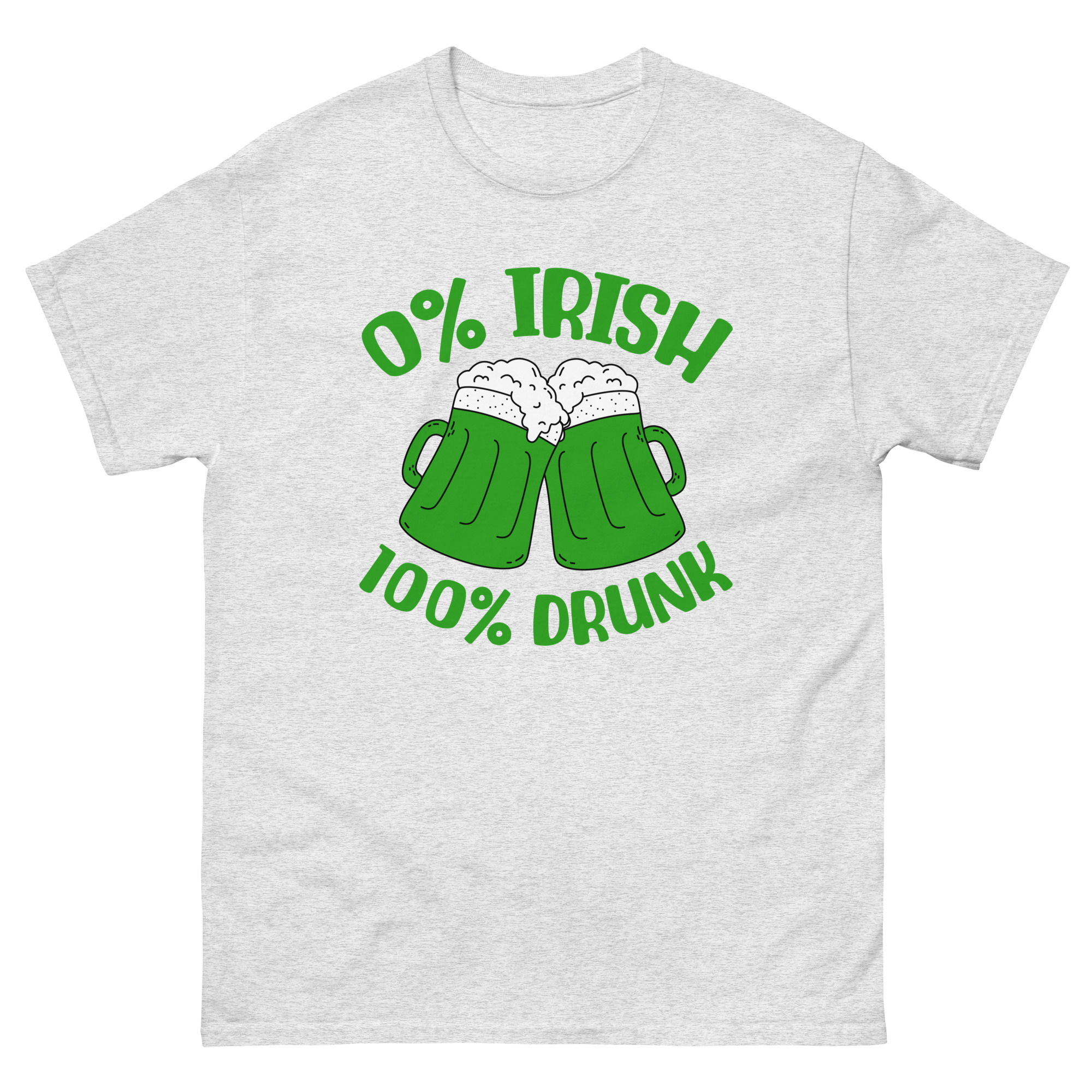 St. Patrick’s Day, 0% Irish 100% drunk, Party shirt, Unisex classic tee. The 100% cotton unisex classic tee will help you land a more structured look. It sits nicely, maintains sharp lines around the edges, and goes perfectly with layered streetwear outfits. Plus, it’s extra trendy now!