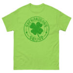 Shenanigans Squad, Party shirt, St. Patrick’s Day Unisex classic tee. The 100% cotton unisex classic tee will help you land a more structured look. It sits nicely, maintains sharp lines around the edges, and goes perfectly with layered streetwear outfits. Plus, it’s extra trendy now!